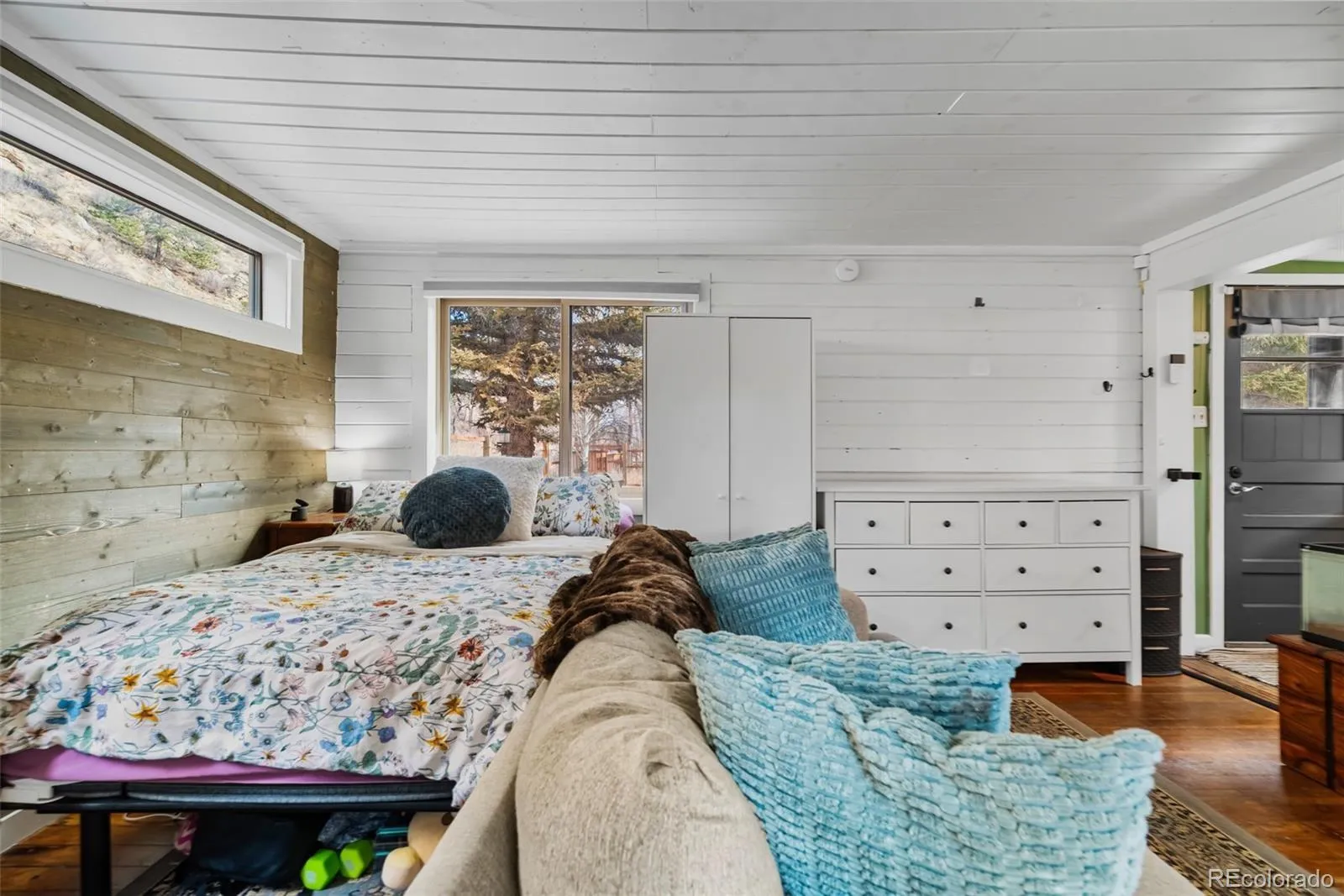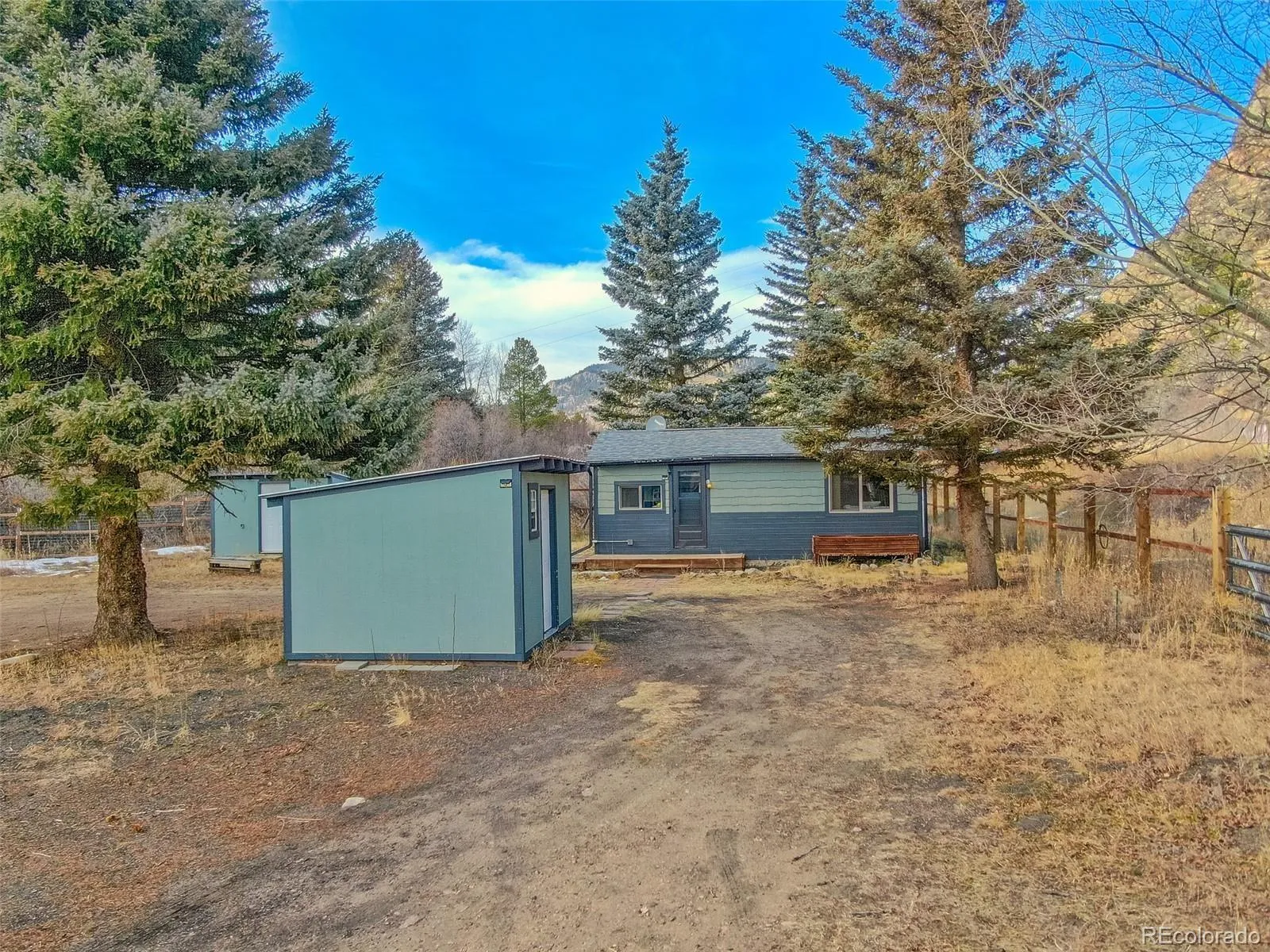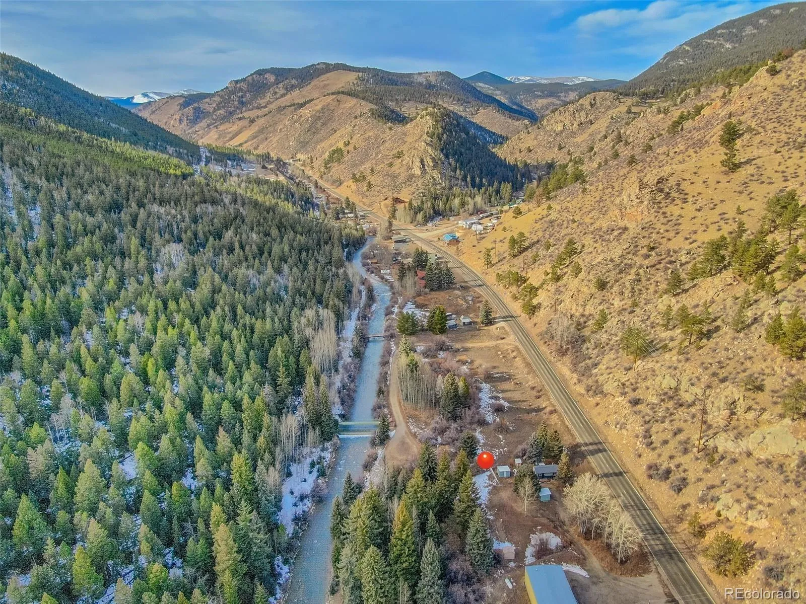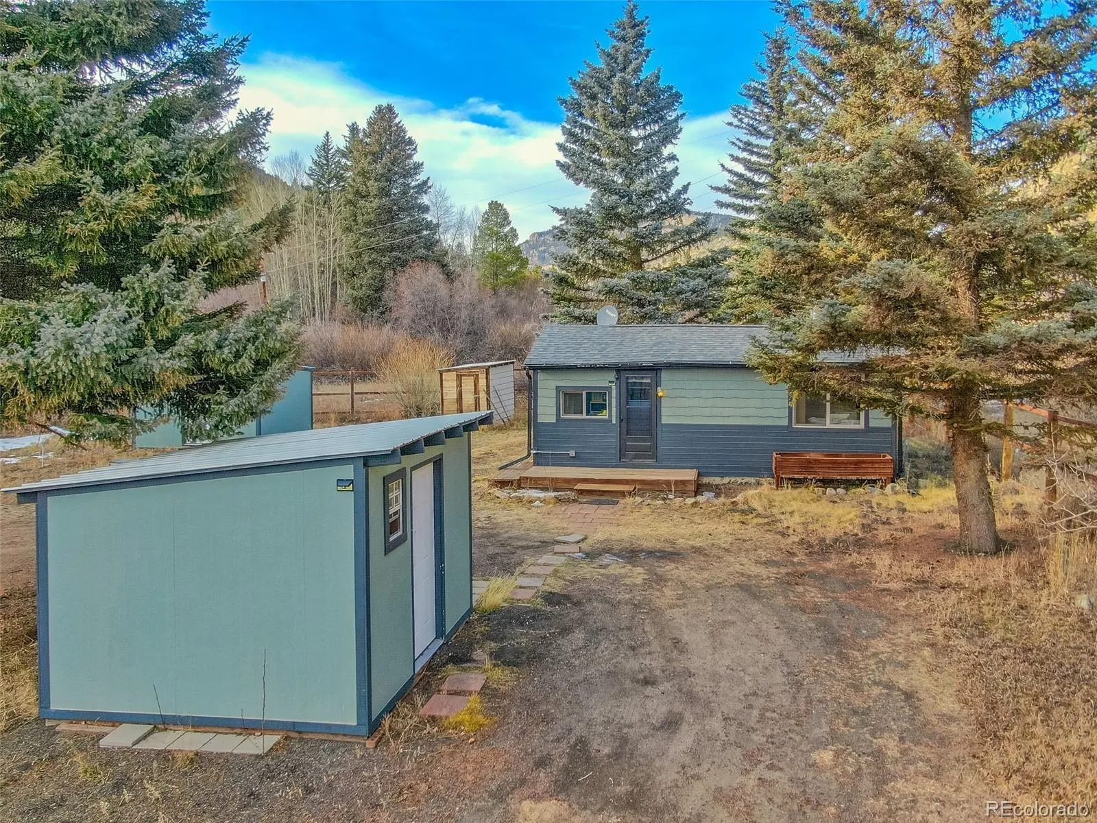 Riverfront mountain retreat with rare access to the North Fork of the South Platte. This updated cabin sits on nearly two acres in an ideal setting—flat, fully fenced, and backing directly to the river with a private gate providing easy access to the water. Tucked just off Highway 285 for year-round access, the property offers both immediate enjoyment and long-term potential, with quick and convenient access to Bailey for local shopping, dining, and everyday essentials. Inside, the living space is warm and inviting, finished with beetle-kill pine accents and original hardwood flooring. The galley kitchen includes all appliances and flows into a comfortable living/sleeping area. Climate control is handled by a newer gas stove with remote, along with a wall furnace in the kitchen. The updated ¾ bath is accessed through a stylish barn door. Recent improvements include new siding (2018), new windows and doors (2019), and a sliding glass door that opens to a newer 16’ x 10’ partially covered wood patio overlooking a peaceful meadow with frequent wildlife activity. The property has seen extensive fire mitigation and is well set up for storage and future expansion, with two sheds (one with electricity) and a heated pump house. The owned propane tank, updated 1000-gallon septic with new line and cleanouts, and ample parking on the flat lot make this an easy property to enjoy year-round. Located in historic Grant, CO, this amazing mountain gem is less than five minutes from Pike National Forest and offers a true Colorado lifestyle. Just a short walk away is The Shaggy Sheep, open year-round for coffee, meals, or a drink at the bar. With river frontage, highway access, proximity to Bailey, and room to build a future dream home, this is a versatile mountain getaway—or rebuild opportunity—that’s becoming increasingly hard to find.