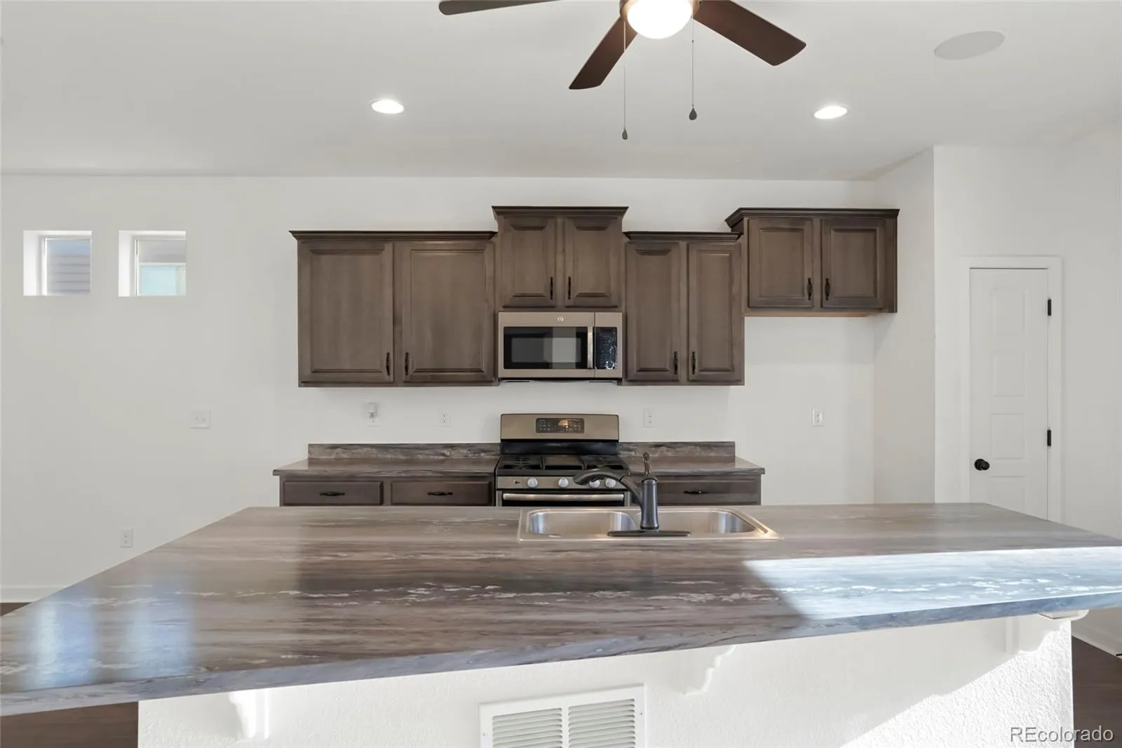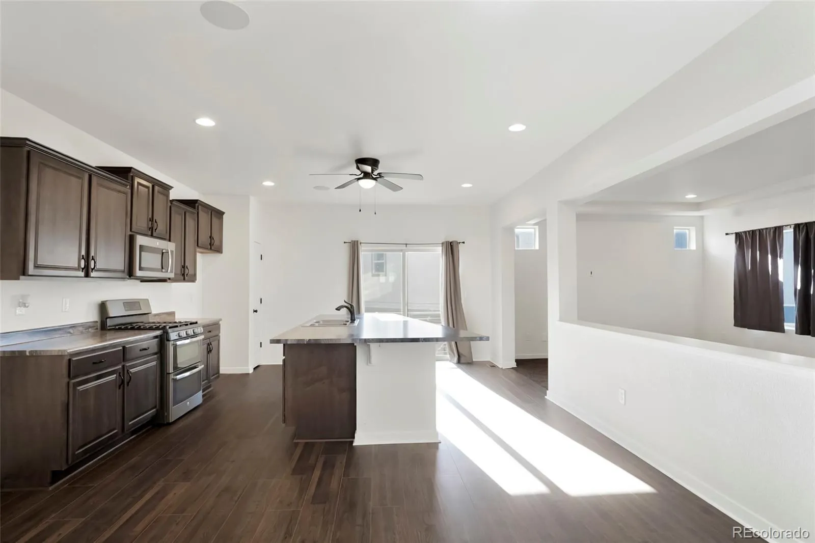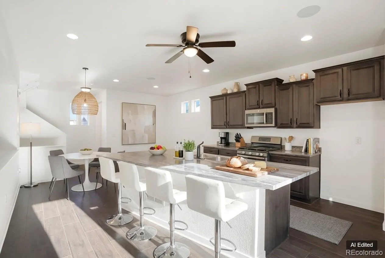 Location is everything, and this beautifully designed home delivers in spades. Nestled in the vibrant and growing Green Valley Ranch community—one of Denver’s most desirable neighborhoods—this property offers an ideal balance of accessibility, recreation, and peaceful suburban living. A rare find at this price point, this spacious home offers exceptional flexibility with three distinct living areas. The main level features a welcoming living room, a dedicated dining area, and a spacious kitchen with modern brown cabinetry, granite countertops, tile backsplash, pantry, large island, and brand-new stainless steel appliances, including a 5-burner gas stove. A convenient half bath and a balcony off the kitchen—perfect for morning coffee or summer evenings—complete the main level. Upstairs, the primary suite provides a private retreat with an en-suite bath and walk-in closet, along with two additional bedrooms, a full bath, and conveniently located laundry. The finished basement adds versatility with a family room, bonus space ideal for an office, gym, or guest area, and an additional half bath. Enjoy a private yard, an attached two-car garage, and a location just one block from green space and a park. Walking trails lead to First Creek Park and Green Valley Ranch Golf Club. Close to Regis Groff Campus, Parkfield Lake Park, and the Rocky Mountain Arsenal Wildlife Refuge. Easy access to DIA, I-70, Peña Blvd, and public transportation makes commuting effortless. With parks, trails, shopping, dining, and a growing sense of community, Green Valley Ranch is an excellent place to call home.