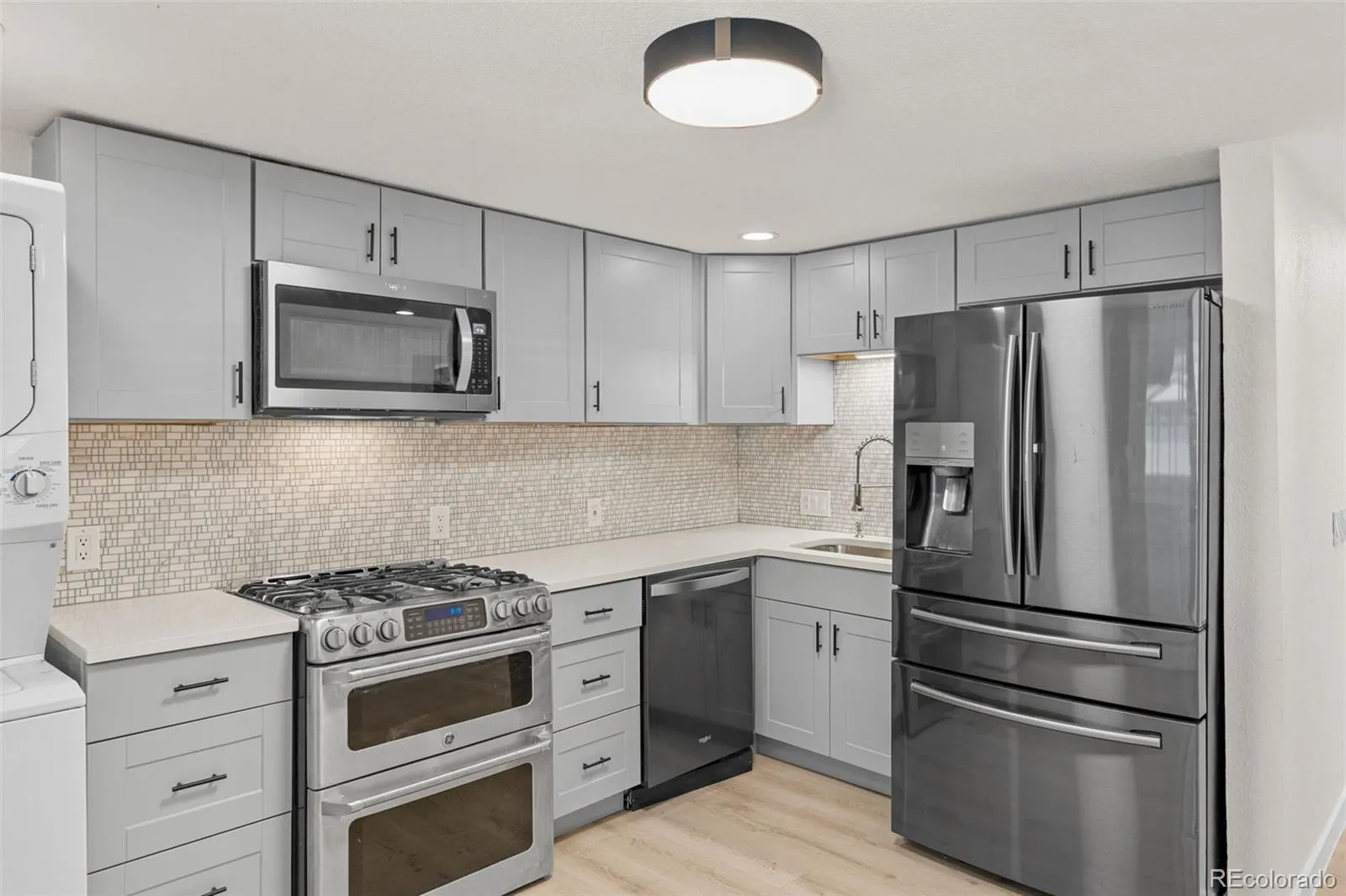 SELLER HOME PACKAGE AVAILABLE: HOA includes heat, water, trash, groundskeeping, snow removal, and 2 parking spaces. This updated West-Colfax unit features one-level living, a tree-filled courtyard with lush greenery, and a secluded front porch area. Large living room with a big window lets in natural light and an amazing Fireplace. The newly updated kitchen features new countertops, appliances, and parking directly outside the enclosed back door entrance for easy loading and unloading. Level parking lot for both the front and rear entrances of the unit means no stairs anywhere! Both bedrooms have generously sized closets and windows. Bathroom updates include the vanity, toilet, and shower. In-unit laundry completes this total urban package. One block from the light rail makes for easy access to downtown Denver and Golden. Also close to breweries, restaurants, and the famous Casa Bonita. If needed, the Seller may also consider an owner carry for 5 years, VA/FHA loan. This is the perfect opportunity to get into the property with the support of a great seller.