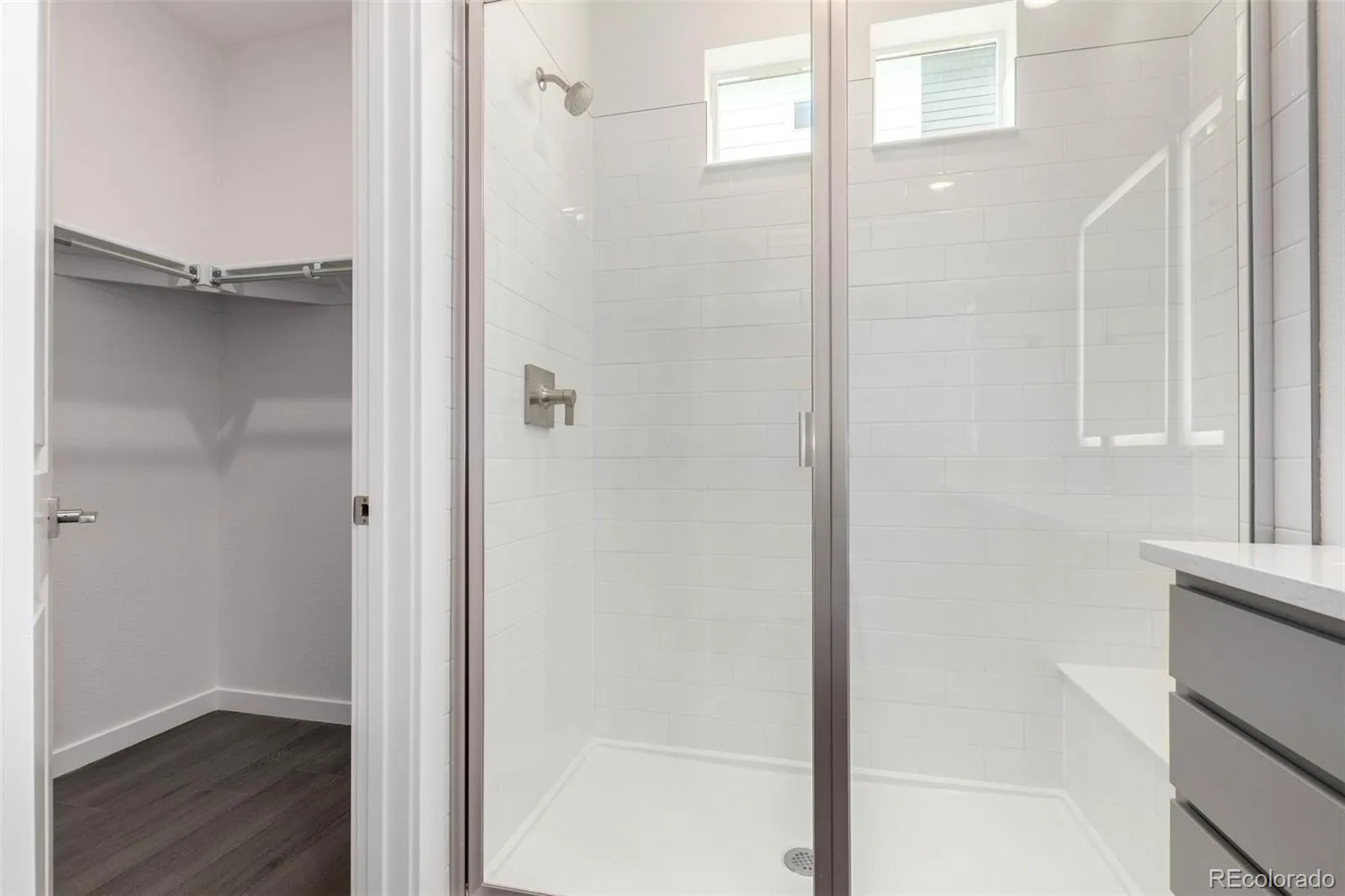 with de-fogger in the primary bath. Luxury vinyl plank flooring in a rich dark brown throughout provides easy maintenance