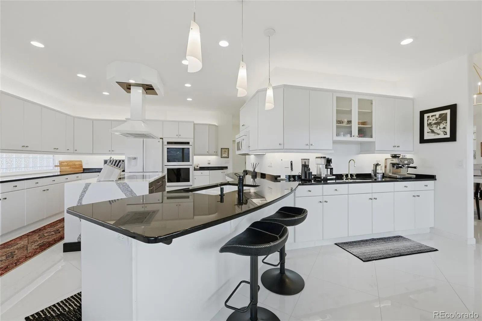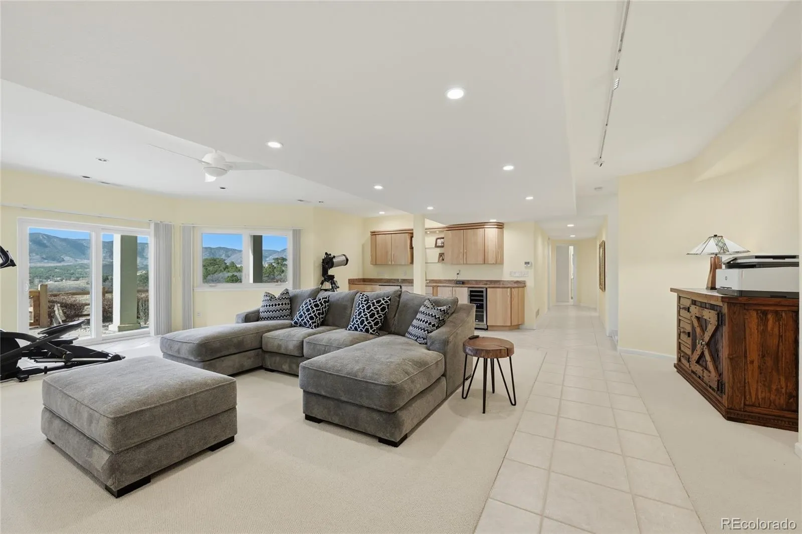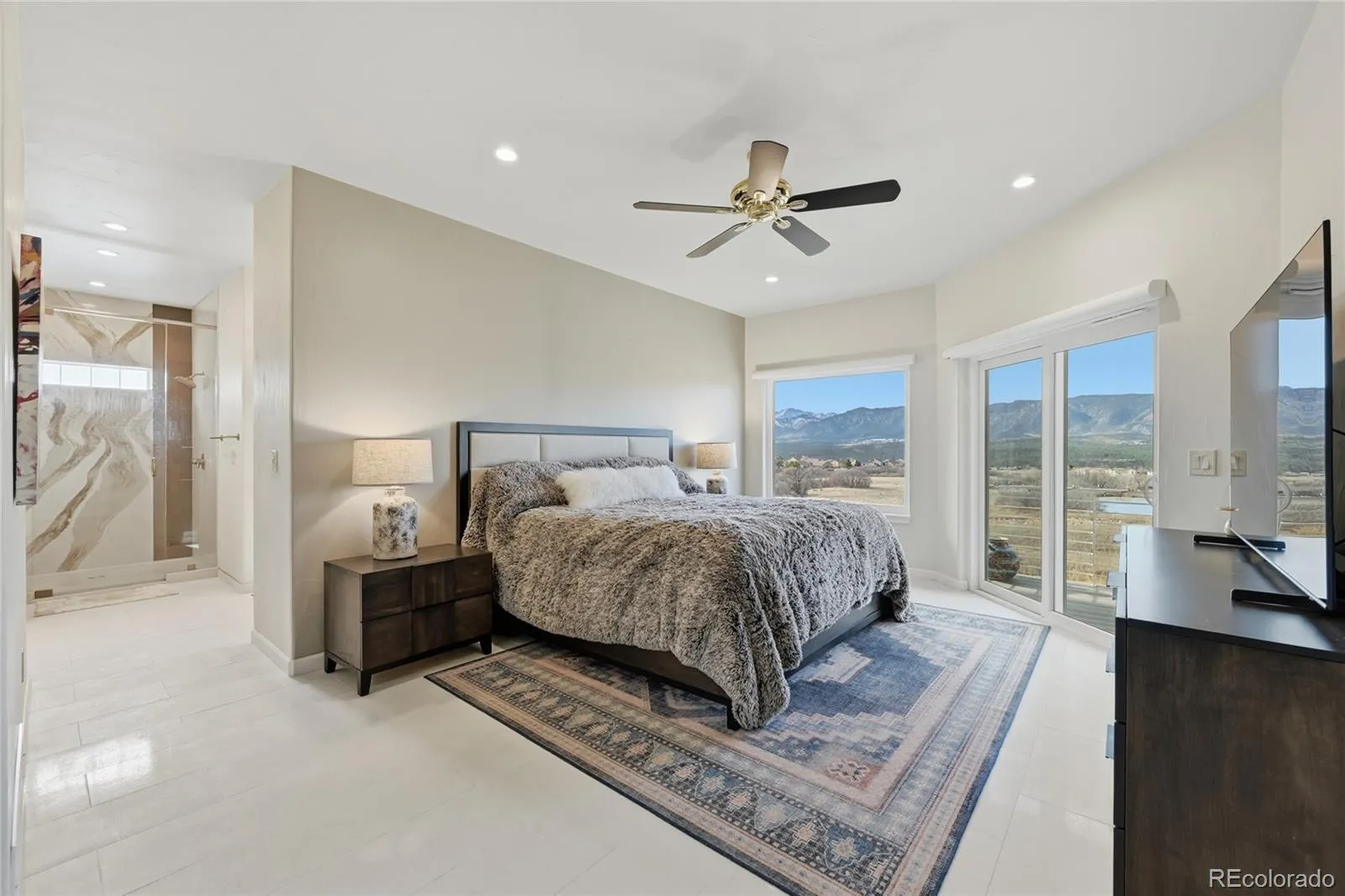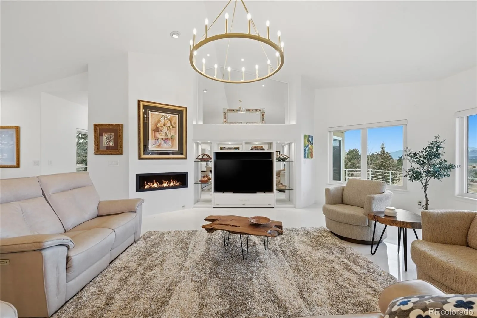 Immaculate Rancher with SPECTACULAR VIEWS & Premier Finishes. Welcome to this impeccably maintained, custom ranch style home, perfectly situated on a premium lot backing to open space, a serene pond & unobstructed Western mountain views. Designed for luxurious comfort & seamless indoor-outdoor living, this home offers breathtaking vistas from nearly every room—both on the main floor and finished walk-out lower level. The dramatic, vaulted great room boasts spacious living & dining areas, each with gorgeous lighting. The room features a custom fireplace with mirrored built-ins. It opens to a large, covered deck – perfect for entertaining with amazing panoramic views. Spacious, sun-filled kitchen w/granite counters, extensive cabinetry & a Cambria quartz island w/ induction cooktop. The luxurious private primary suite offers deck access and a nearby flex space ideal for a home office. The newly remodeled spa-style bath is truly a retreat, showcasing dual vanities (one with a built-in TV mirror), Cambria quartz accent walls, a freestanding soaking tub, oversized shower, dual water closets & two generous walk-in closets. A curved staircase leads to the expansive lower-level rec room, complete with a custom wet bar, beverage frig & beautiful granite buffet – perfect for hosting guests. Sliding glass doors open to a covered patio with more stunning mountain views. Two secondary bedrooms & a large full bath are located on this level, along with a dedicated storage room housing high-efficiency HVAC systems & extensive built-in shelving. The oversized 3-car garage is immaculate, featuring epoxy flooring, built-in cabinetry & bright LED lighting. Professional landscaping surrounds the property offering a lush, manicured lawn & eye-catching curb appeal and split-rail fencing in back yard. A refreshing take on mountain living, this contemporary Colorado home is thoughtfully upgraded with luxurious finishes and modern design.