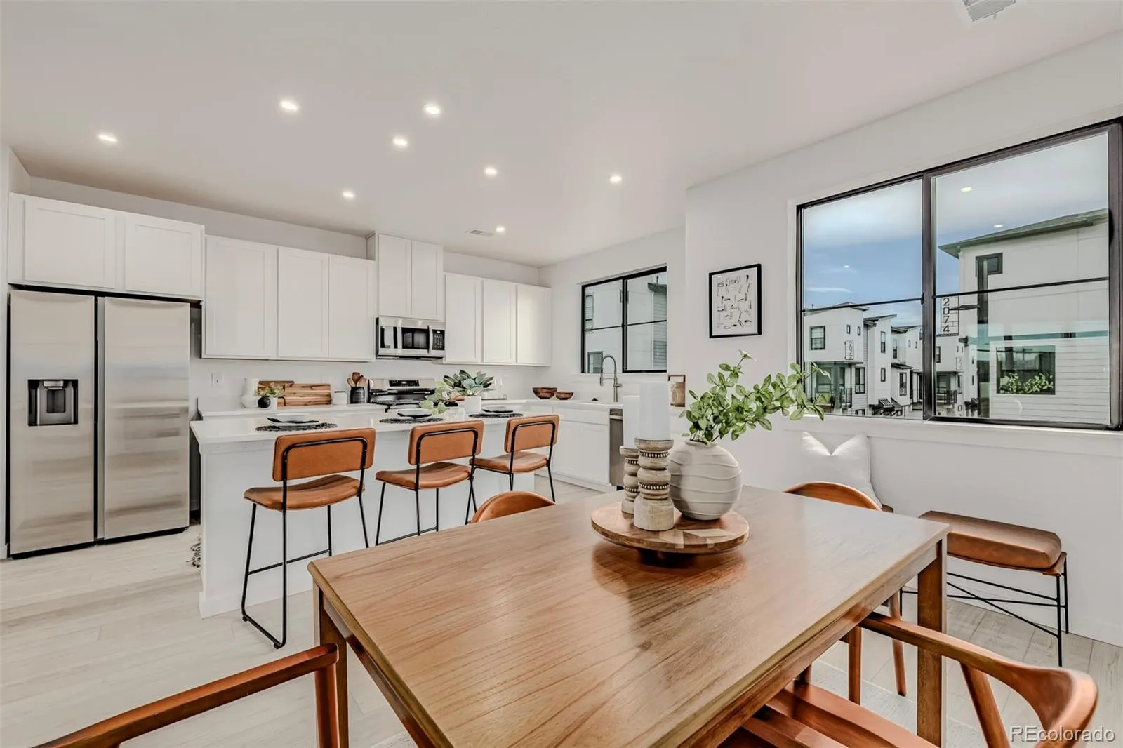 room flows into a stunning kitchen featuring elevated finishes, a spacious walk-in pantry, and a cozy dining area with