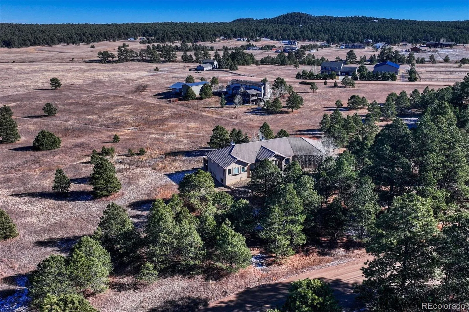 Experience refined Colorado living in this home sitting on 5 acres and ready for your horses, chickens, gardens, barn, workshop or whatever your wildest dreams can imagine. Surrounded by mature pines and mountain views, this beautifully appointed home offers an ideal blend of luxury, comfort, and privacy.
