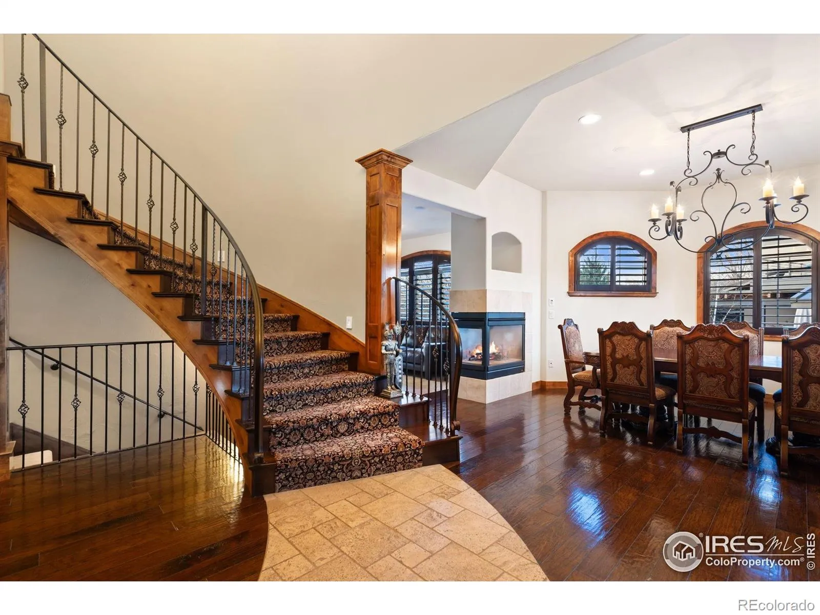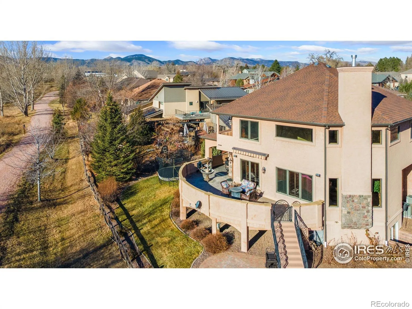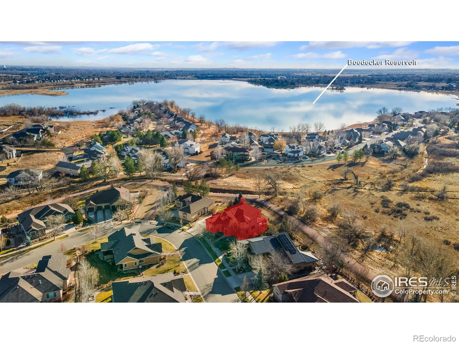 A rare offering in the secluded enclave of The Springs at Mariana, this exceptional property delivers true country living in the city. Situated on over a 1/4-acre lot, the home backs to wildlife-preserved trails and open space, with the rear deck overlooking a protected sanctuary that has hosted elk, wild turkeys, bald eagles, osprey, and deer. Just steps from Boedecker Reservoir, Mariana Butte Golf Course, and the Devil’s Backbone trail system, this West Loveland location is unmatched. The HOA enhances the lifestyle with irrigated open space, a pond, gazebo, and firepit. This sprawling two-story home welcomes you through a grand gated entry and showcases Tuscany-inspired, high-end finishes throughout. The gourmet kitchen is a showpiece, featuring slabs of exotic level granite, knotty cherry cabinetry, an alder wood island, and premium appliances including double ovens, a gas cooktop, and a double-drawer dishwasher. The hearth room and dining area share a cozy fireplace, while the great room stuns with 20-foot ceilings and a second fireplace, flooding the home with natural light. Designed for both luxury and function, the home offers a private office with a separate exterior entrance, brand-new carpet, gleaming wood and tile floors, two laundry areas (one in the owner’s suite closet and one in the mudroom), an expansive driveway and a 3-car side-load garage that is wired 240v and even includes a rock-climbing wall. Three bedrooms are located upstairs, each with its own en-suite bathroom. The finished basement adds a fourth bedroom, also with a private bathroom, and impresses with abundant natural light, a beautifully crafted wine cellar, wet bar, and recreation space. Additional highlights include a new 70-gallon water heater, stucco and stone exterior, and expansive brick patios that blend seamlessly into the breathtaking natural setting. This is a home defined by unique craftsmanship, architectural detail, outstanding finishes, and a truly mind-blowing location.