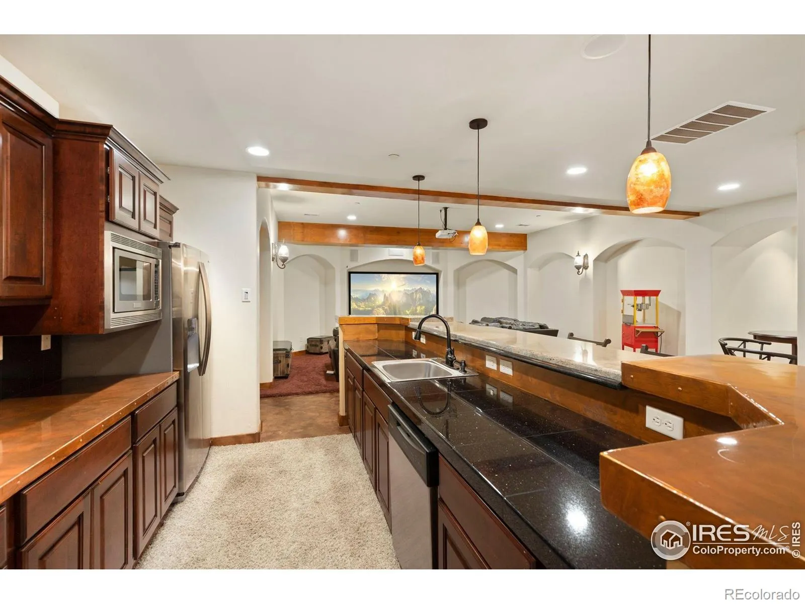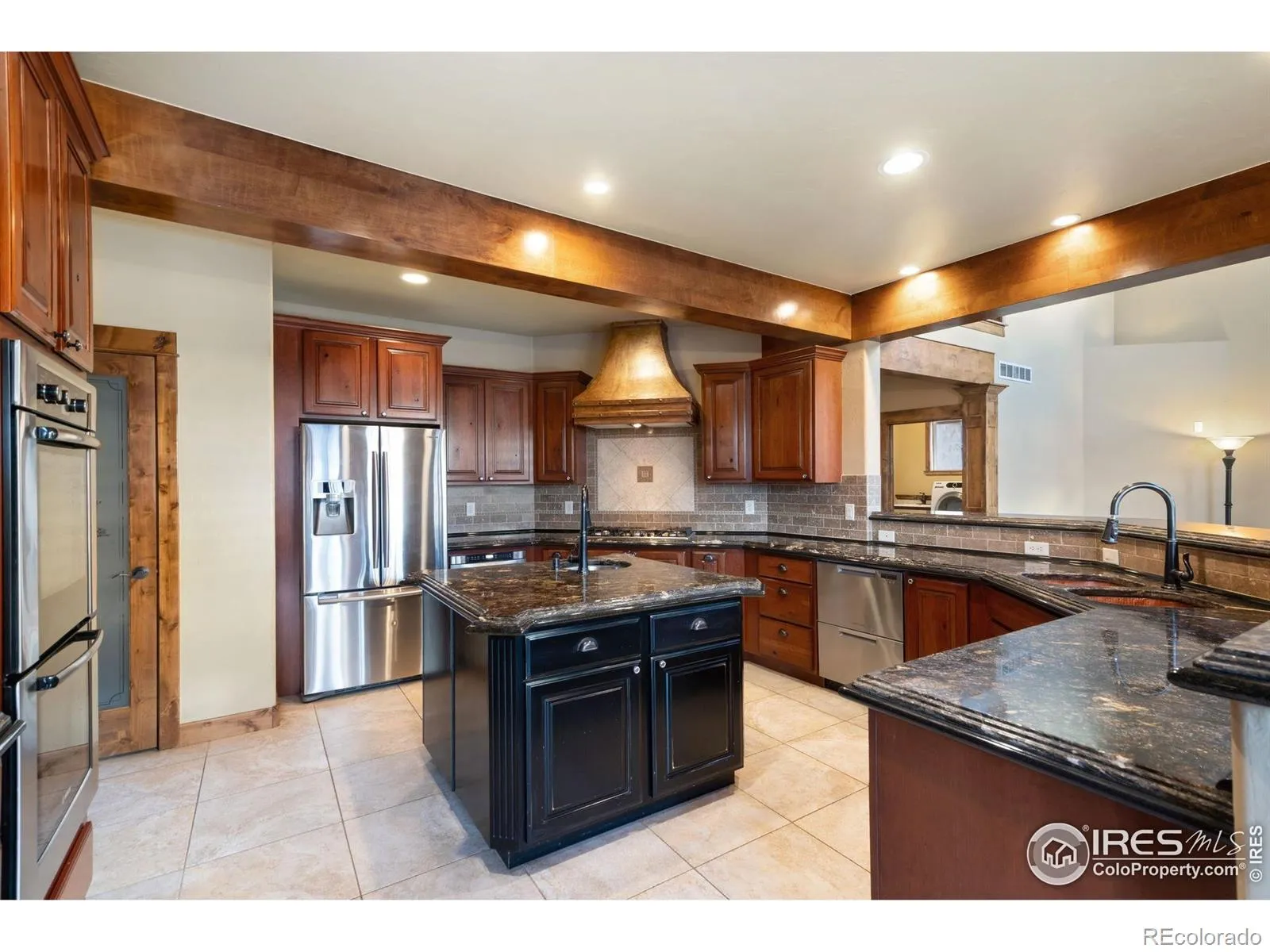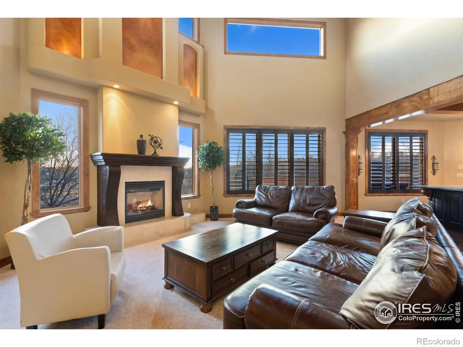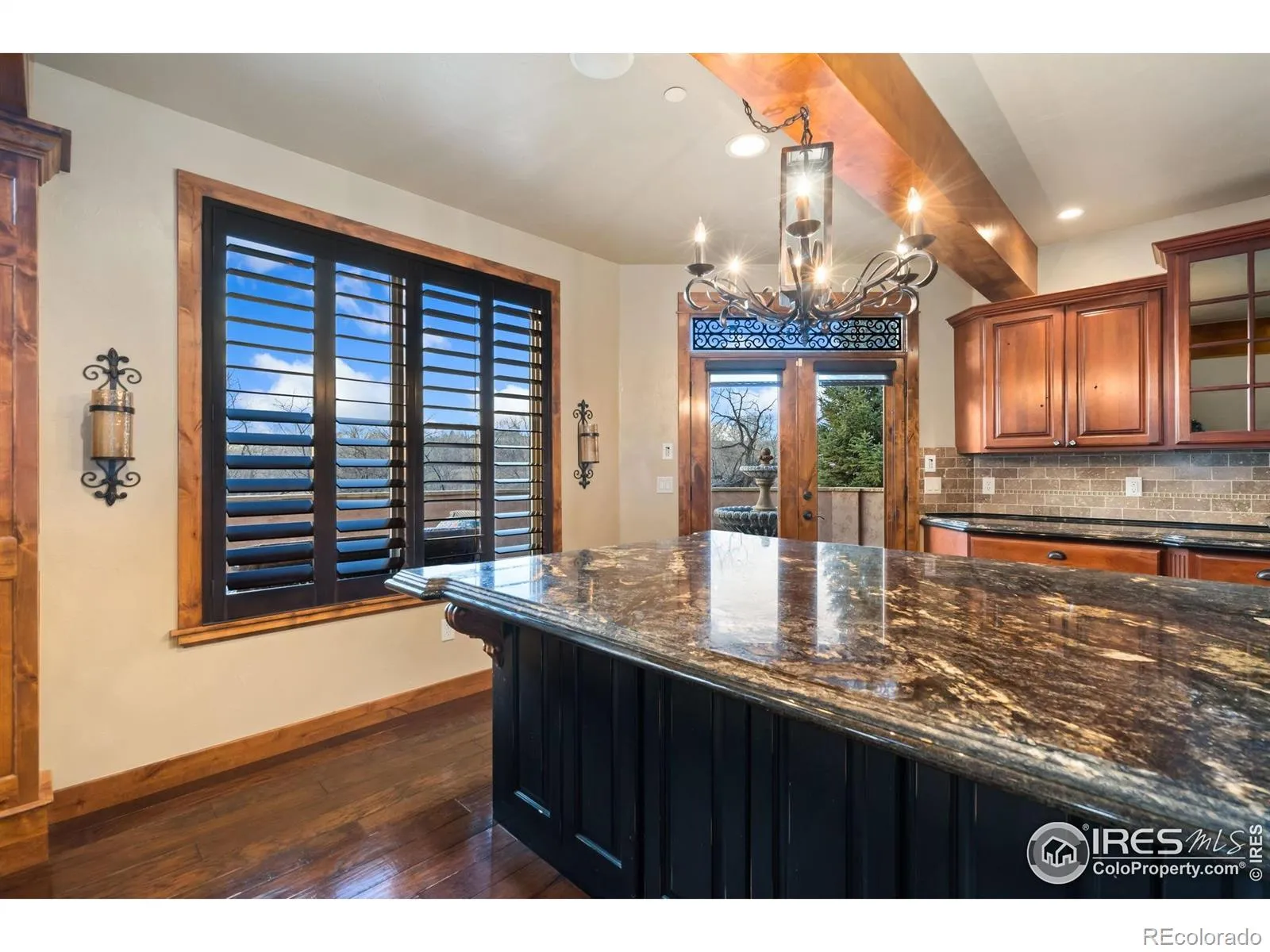 A rare offering in the secluded enclave of The Springs at Mariana, this exceptional property delivers true country living in the city. Situated on over a 1/4-acre lot, the home backs to wildlife-preserved trails and open space, with the rear deck overlooking a protected sanctuary that has hosted elk, wild turkeys, bald eagles, osprey, and deer. Just steps from Boedecker Reservoir, Mariana Butte Golf Course, and the Devil’s Backbone trail system, this West Loveland location is unmatched. The HOA enhances the lifestyle with irrigated open space, a pond, gazebo, and firepit. This sprawling two-story home welcomes you through a grand gated entry and showcases Tuscany-inspired, high-end finishes throughout. The gourmet kitchen is a showpiece, featuring slabs of exotic level granite, knotty cherry cabinetry, an alder wood island, and premium appliances including double ovens, a gas cooktop, and a double-drawer dishwasher. The hearth room and dining area share a cozy fireplace, while the great room stuns with 20-foot ceilings and a second fireplace, flooding the home with natural light. Designed for both luxury and function, the home offers a private office with a separate exterior entrance, brand-new carpet, gleaming wood and tile floors, two laundry areas (one in the owner’s suite closet and one in the mudroom), an expansive driveway and a 3-car side-load garage that is wired 240v and even includes a rock-climbing wall. Three bedrooms are located upstairs, each with its own en-suite bathroom. The finished basement adds a fourth bedroom, also with a private bathroom, and impresses with abundant natural light, a beautifully crafted wine cellar, wet bar, and recreation space. Additional highlights include a new 70-gallon water heater, stucco and stone exterior, and expansive brick patios that blend seamlessly into the breathtaking natural setting. This is a home defined by unique craftsmanship, architectural detail, outstanding finishes, and a truly mind-blowing location.