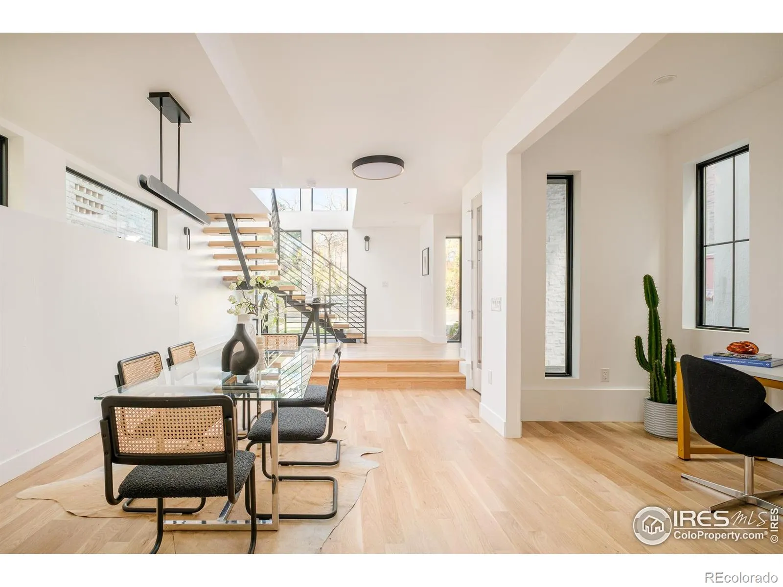 Modern architecture and refined craftsmanship define this newly constructed residence in Denver’s LoHi neighborhood. Abold exterior of clean lines and mixed materials introduces luminous interiors designed for natural light, functionality, andelevated living. Spanning approximately 3,600 square feet, the home offers seamless indoor-outdoor connection and anintelligent floor plan ideal for modern lifestyles. The main level centers around an open-concept living and dining spaceframed by floor-to-ceiling windows and anchored by a sculptural staircase. The chef’s kitchen features a waterfall-edgequartz island, fully integrated appliances, extended prep counter with secondary sink, custom cabinetry, and designerlighting. Sliding doors open to a private courtyard that extends entertaining and everyday living outdoors. A dedicatedstudy, entry foyer with built-in storage, and mudroom with access to the detached EV-ready two-car garage complete thislevel. Upstairs, the primary suite creates a tranquil retreat with a large custom walk-in closet and a spa-inspired five-piecebath finished in quartz, stone, and designer tile. A secondary suite and a convenient laundry room complete the upperlevel. The lower level expands the living space with a generous recreation room, guest suite, wet bar, and ample storage.At the top, a 740-square-foot rooftop deck provides panoramic 360-degree city and mountain views for relaxation orentertaining. High-performance windows, energy-efficient systems, and durable finishes ensure year-round comfort andsustainability. Located 0.2 miles from Denver favorites including Root Down, Little Man Ice Cream, Wildflower, and Acova,and under 0.5 miles from neighborhood parks, boutique fitness studios, and coffee shops, this residence offers proximityto the best of LoHi’s dining, shopping, and entertainment. Every space reflects a purposeful approach to modern design,architecture, energy consciousness, and a distinctly Denver aesthetic.