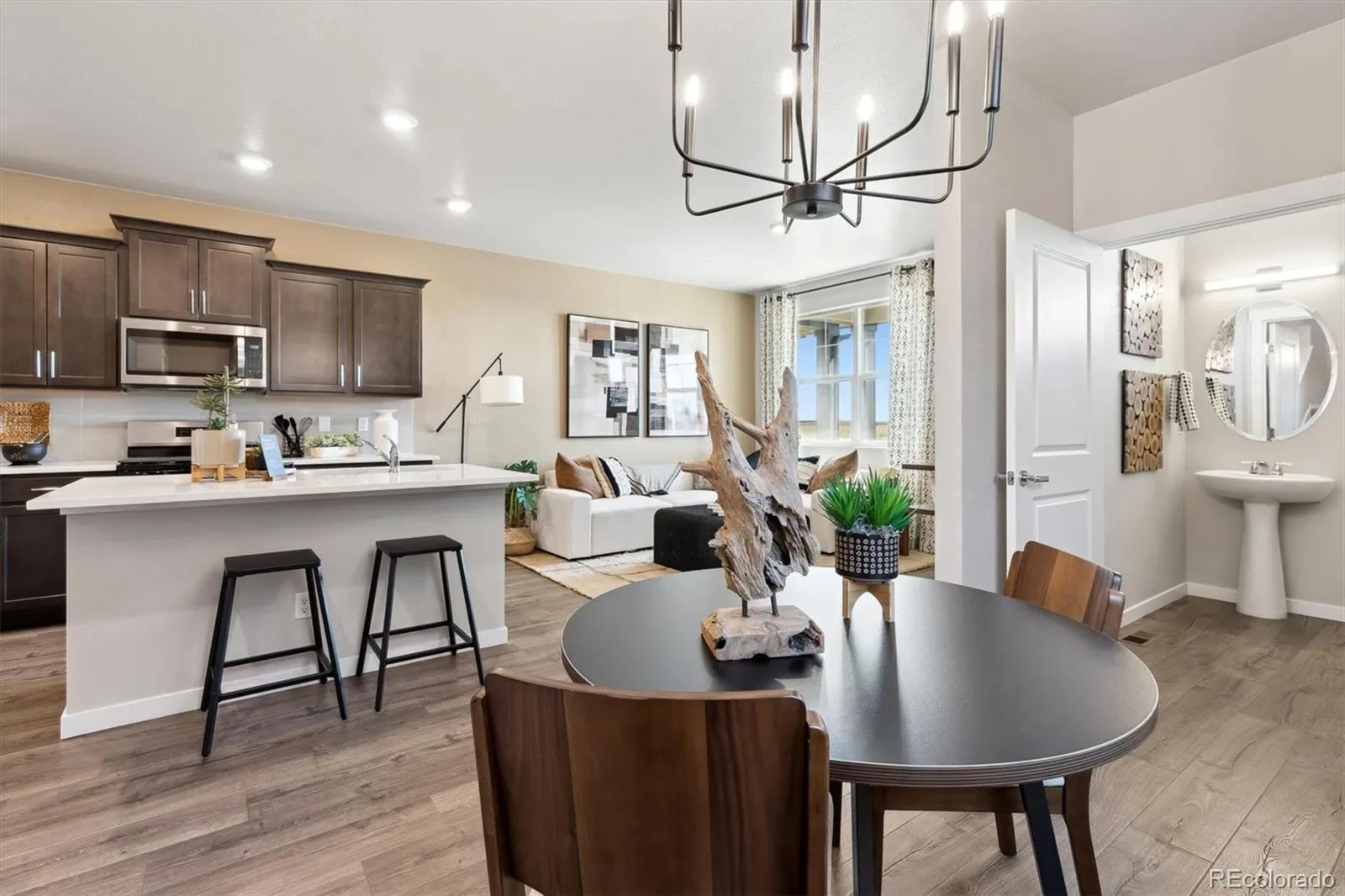 Step into the Melbourne, a thoughtfully designed home offering 3 bedrooms, 2.5 baths, and a spacious 2-car garage. The open-concept main level, enhanced by 9-foot ceilings, creates a bright, inviting space perfect for gatherings. The kitchen is both stylish and functional, featuring a breakfast bar, walk-in pantry, and gas stainless steel range – ideal for everything from quick meals to gourmet creations. Throughout the home, luxurious finishes set the tone: vinyl plank flooring on the main level and in all wet areas, upgraded carpet upstairs, white quartz countertops in the kitchen and baths, upgraded plumbing hardware and fixtures, and taupe cabinetry for a classic touch.
