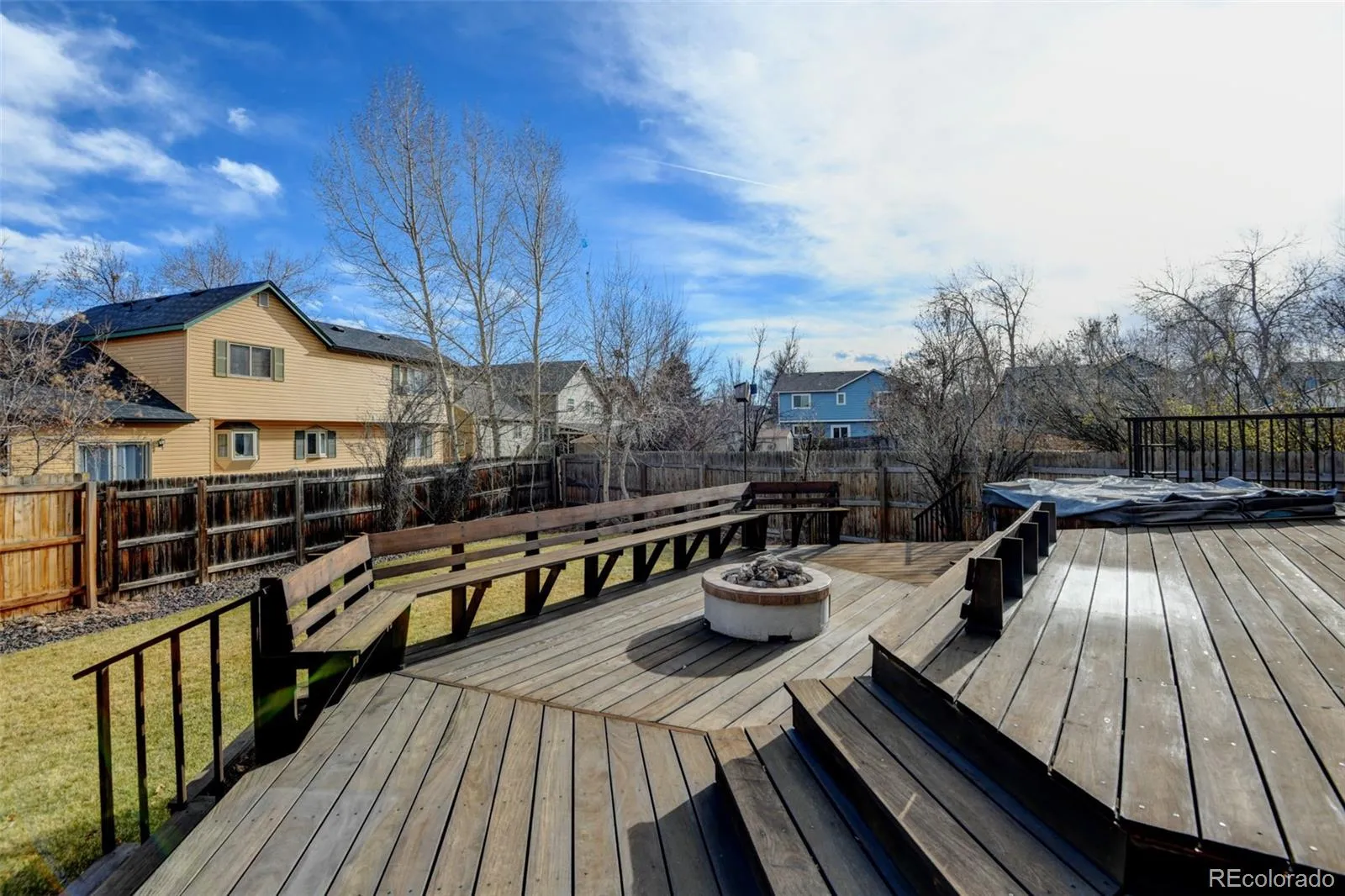 Outdoor living is exceptional with an expansive deck with a recessed hot tub and firepit, a covered patio, lush yard space with garden area, and a dedicated dog run.