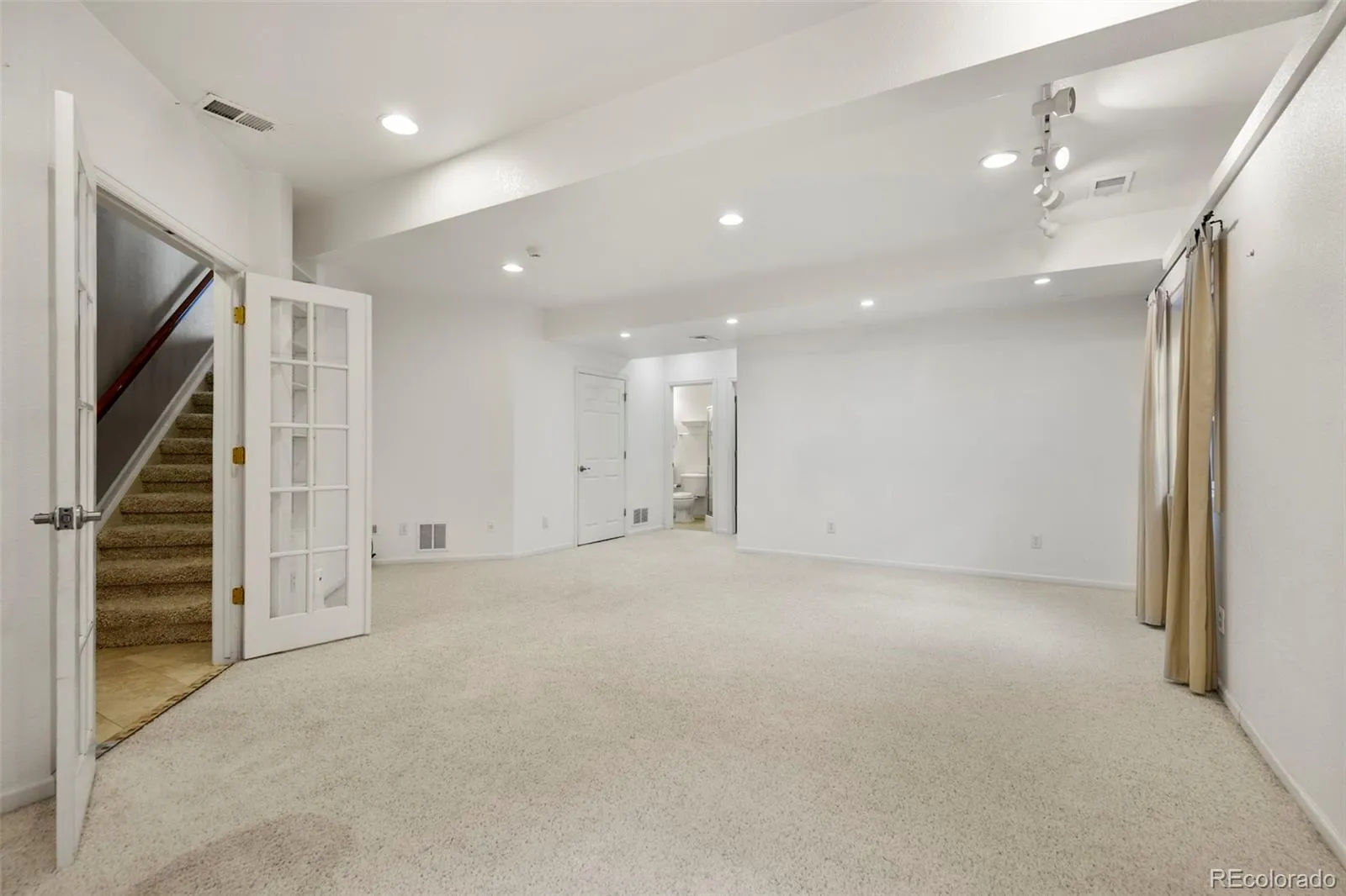 The upper level also hosts two additional bedrooms, a full bath with heated floors, and a convenient laundry room. Downstairs, the fully finished basement can serve as a fourth bedroom suite, game room, or den — complete with French doors, walk-in closet, and a 3/4 bath.