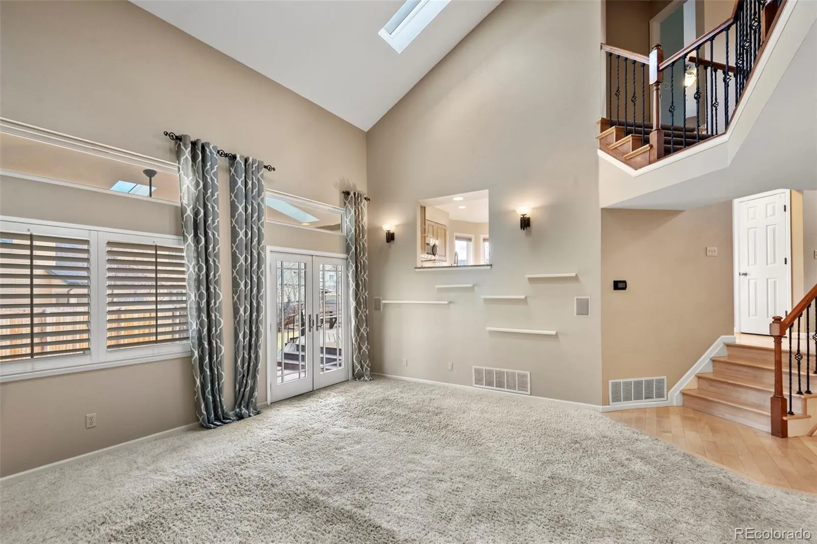Relax or entertain in the expansive family room with vaulted ceilings, another gas fireplace with slate surround, built-ins, and French doors that flow to the covered deck — your gateway to outdoor enjoyment.