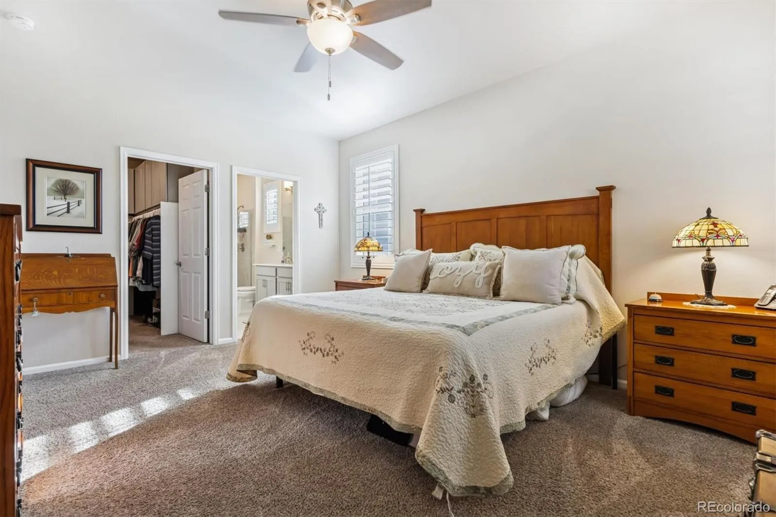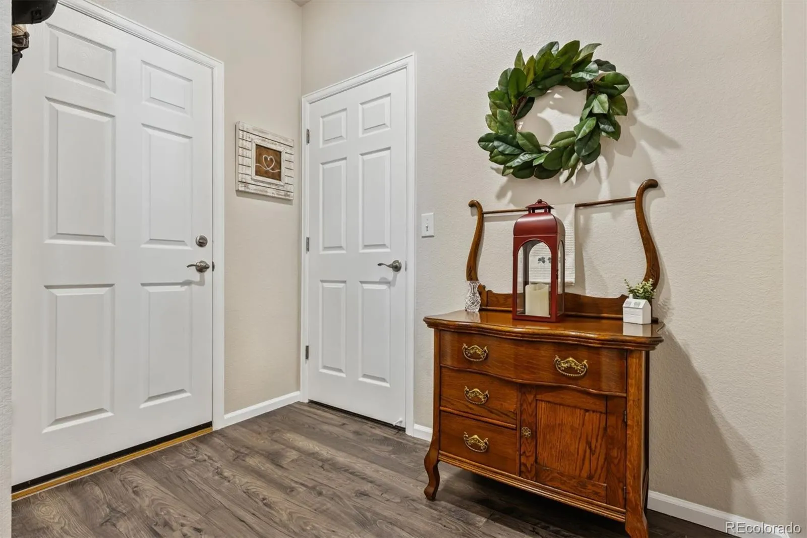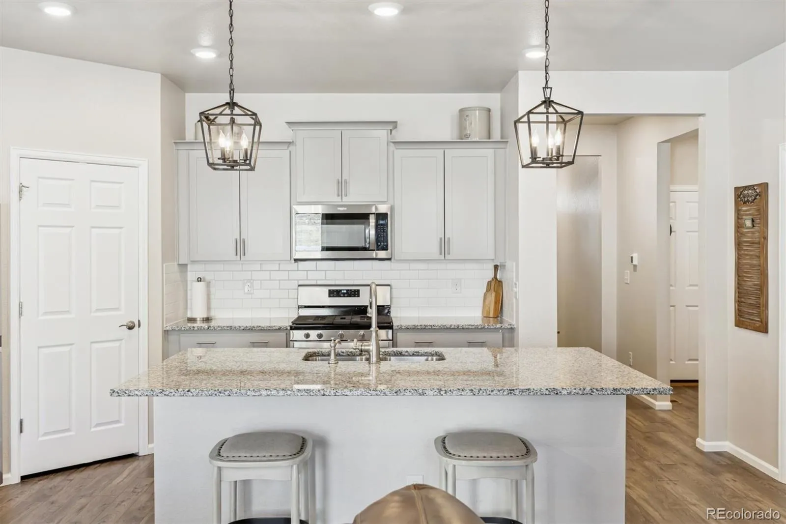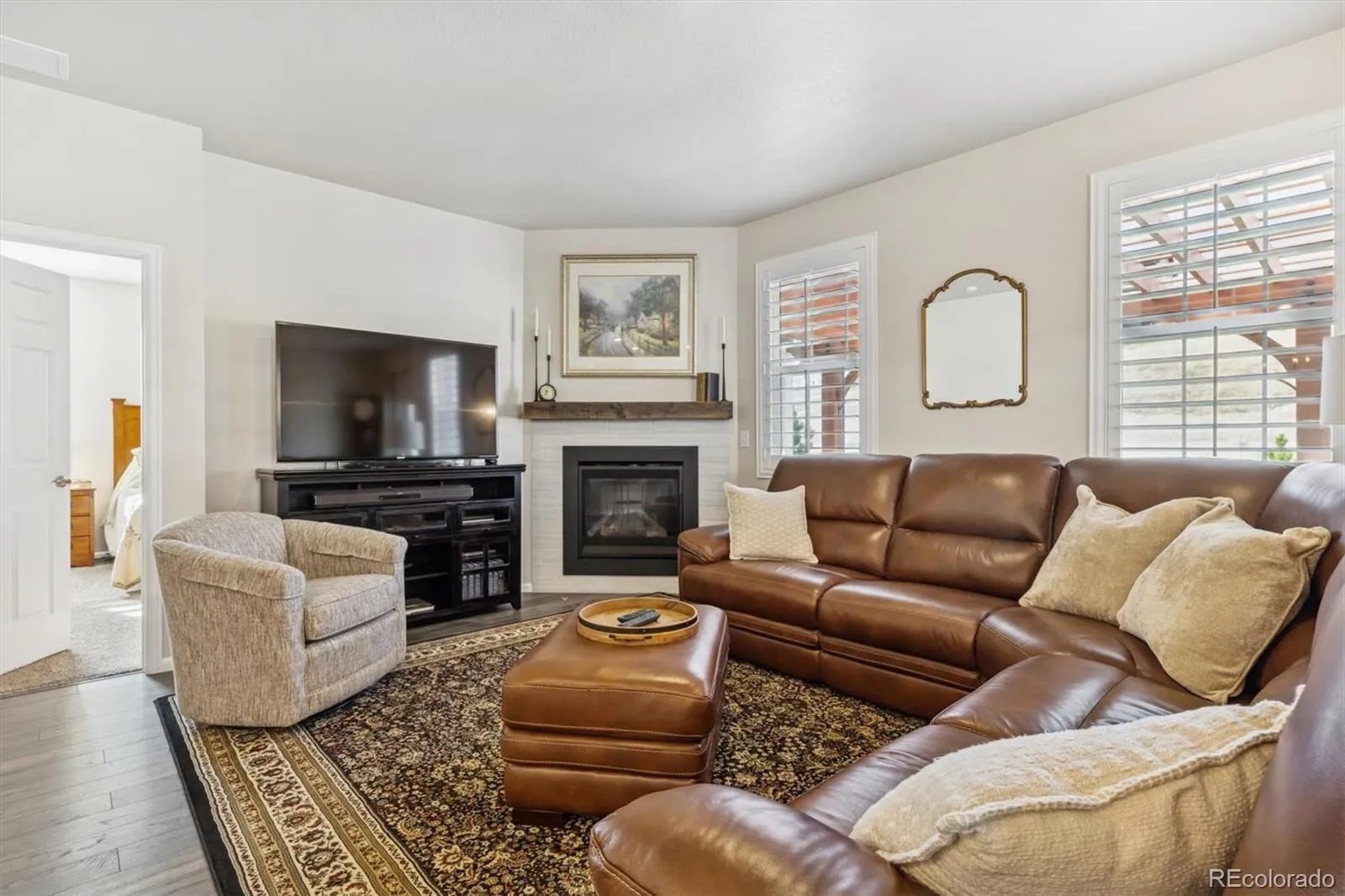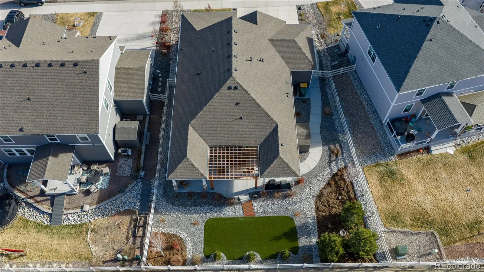 Welcome home to contemporary living in this heavily upgraded ranch-style home backing to open space, this is 6015 Plains End Court. Grand 9’ ceilings, stunning engineered hardwood floors, abundant natural light, and curated finishes greet you upon entry and unfold to a spacious open floorplan, ideal for everyday living and entertaining. The gas fireplace with a tile surround and a reclaimed-wood mantel serves as the focal point in the inviting great room. Enjoy preparing a meal in the gourmet kitchen, complete with an oversized center island, granite counters, grey shaker cabinetry, a stainless steel appliance package, and a walk-in pantry. Step outside to your entertainer’s backyard- this exceptional backyard truly sets the home apart. Thoughtfully designed with extensive owner upgrades, it features a major structural addition creating a second covered patio with drop-down sun shades, a beautifully constructed pergola, professionally designed landscaping, and upgraded trees added for enhanced privacy — making this outdoor space a true highlight of the home. Retreat to your main-level primary suite. This idyllic sanctuary features a large walk-in closet with built-in cabinetry and an ensuite upgraded 4-piece bath with a walk-in shower. Two generously sized secondary bedrooms, a full bath, and laundry round out the main level. Additional features of this turn-key residence include plantation shutters throughout, an upgraded lighting package, a large completed crawlspace with high quality vapor barrier for all storage needs and a massive 3-car finished garage with even more storage. Crystal Valley Ranch is a family-friendly community in the heart of Castle Rock, only moments from Douglas County schools, parks, shopping, dining, and abundant outdoor activity. This home is ready for its next chapter; all it needs is you!