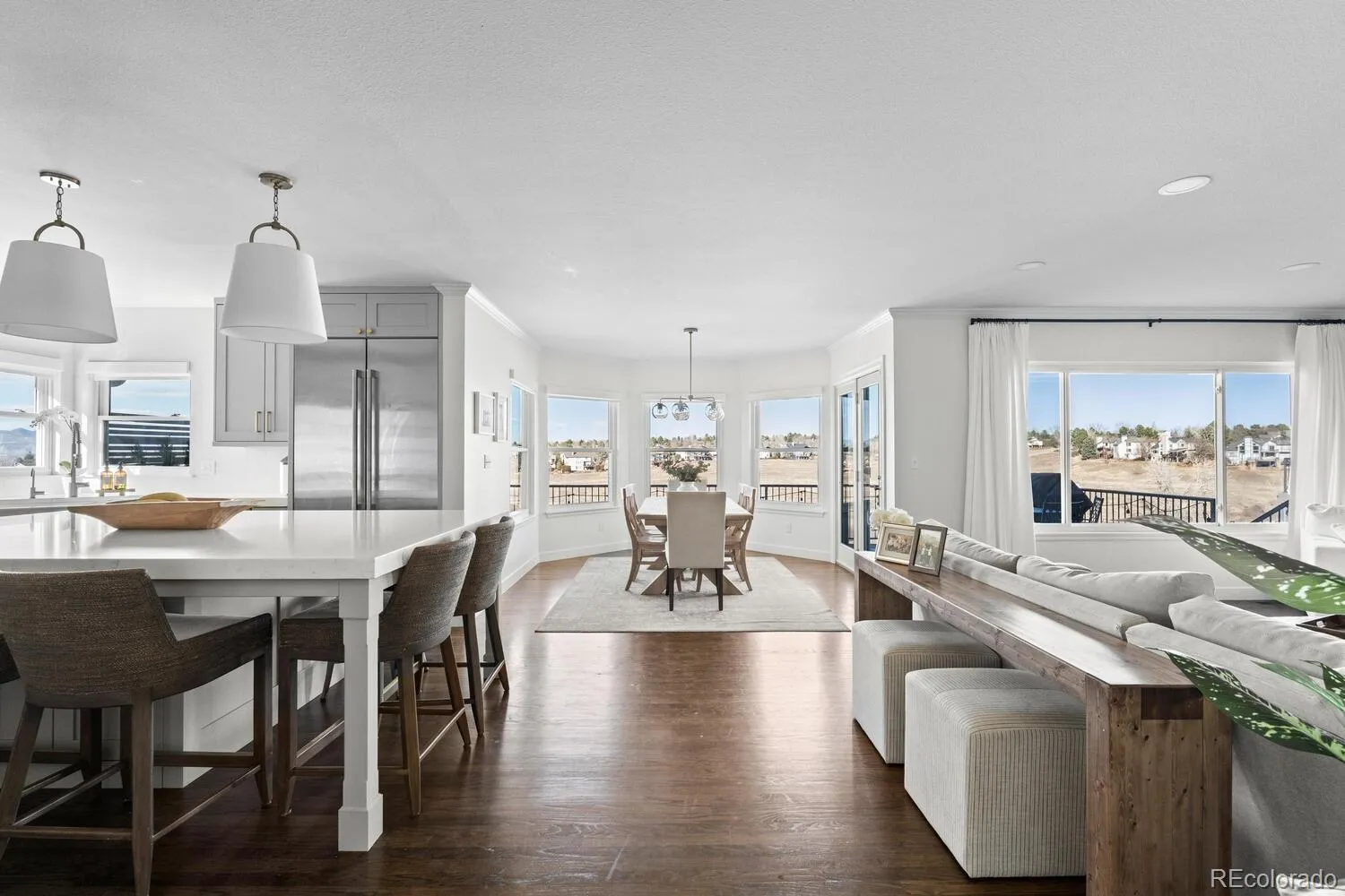 Nestled at the end of a cul-de-sac in the prestigious Timberline Ridge neighborhood, this exceptional Highlands Ranch home offers privacy, community, and breathtaking Front Range views. Backing to open space with trail access just steps away, this Sanford home truly has it all.