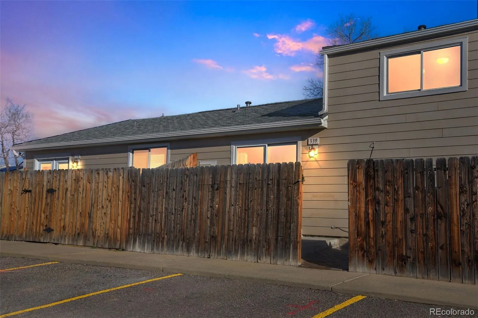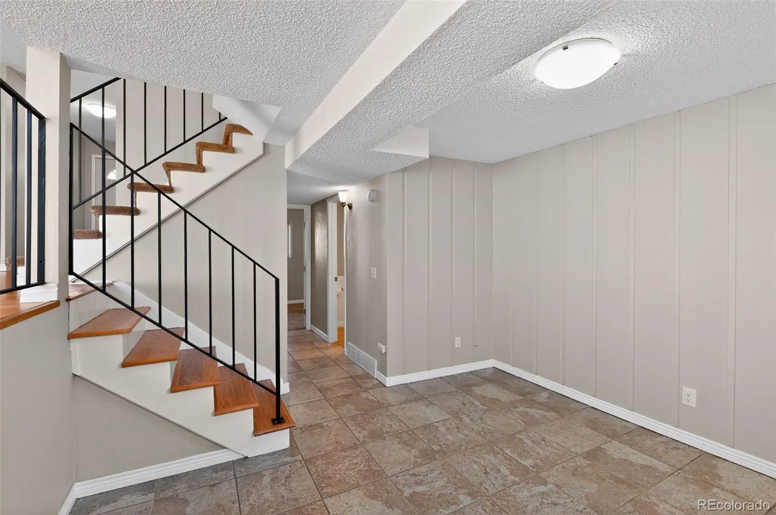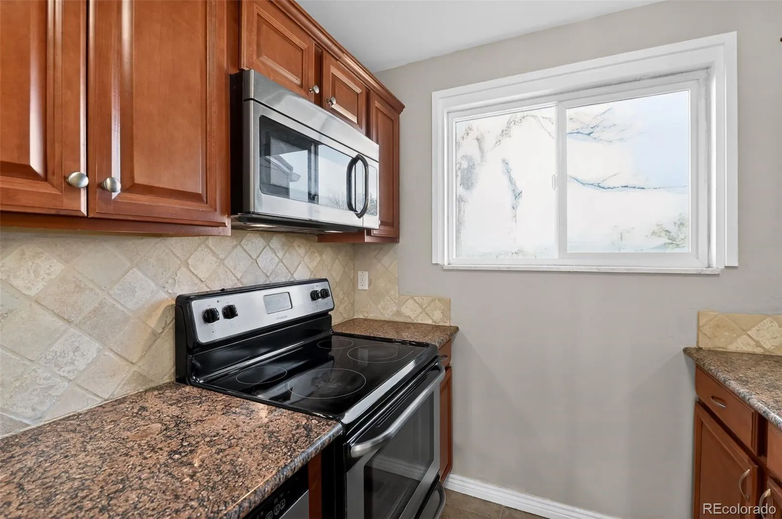 The main level includes the front entry, kitchen, spacious living area, and access to the rear patio through a sliding door. The kitchen is thoughtfully designed with solid maple cabinets featuring crown molding and soft-close hardware, a built-in trash container, granite countertops, a custom travertine backsplash, a composite granite sink, stainless steel appliances, and a custom porcelain tile floor. The living area is finished with engineered maple hardwood flooring, creating a warm and inviting space. Upstairs, you’ll find two bedrooms, a full bathroom, and two additional hall closets providing ample storage. The full bath is finished with custom travertine flooring, a porcelain tile tub/shower surround, granite countertop, and maple cabinetry. The lower level offers a versatile open recreation room ideal for a TV room, playroom, or home office, along with a third bedroom featuring built-in shelving. This level also includes a laundry area with full-size washer and dryer, a ¾ bathroom, and durable large-format tile flooring throughout. Additional highlights include motion-sensor exterior lighting at both the front and rear of the home, enhancing convenience. Private patio for a BBQ and outdoor dining and watching the sun set into the Flatirons.
