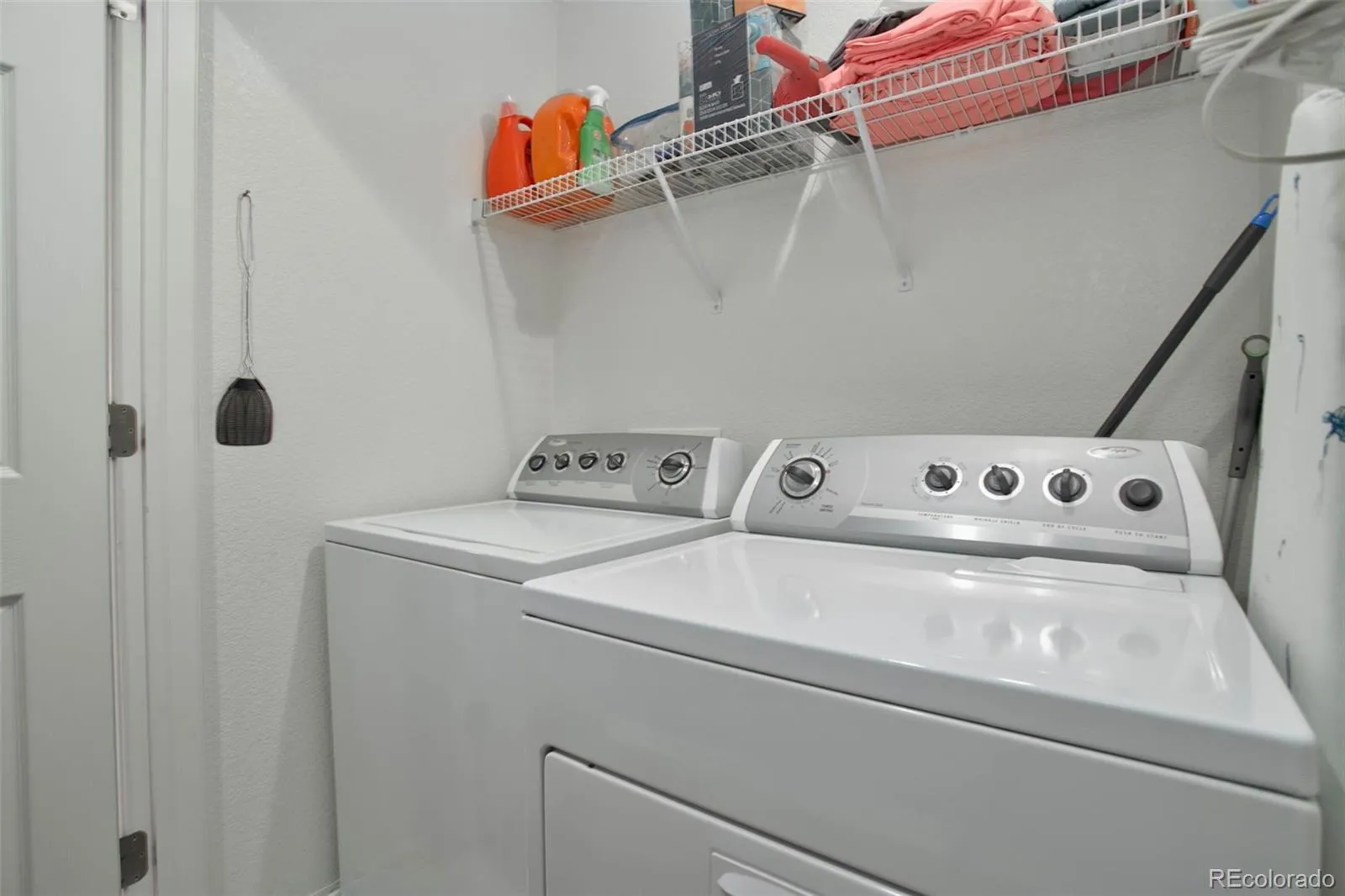 Welcome to this inviting two-bedroom, two full bathroom corner condo with an attached garage and all the living space on one convenient level. The spacious kitchen is a culinary haven, featuring a breakfast bar with pendant lighting, stainless steel appliances, cabinets with pull-out shelving and an open layout that seamlessly connects to the dining room and living room. Go out onto the balcony from the dining area to enjoy beautiful Colorado and get some fresh air. The primary bedroom is a retreat with ensuite bath and a spacious walk-in closet. An additional bedroom and full bath provide flexibility and convenience. Washer and dryer are included. Located in a fantastic spot with easy access to Denver, DIA, shopping, dining, parks and more, this home offers a lifestyle of convenience and comfort. Plus, enjoy peace of mind with a one-year home warranty included.