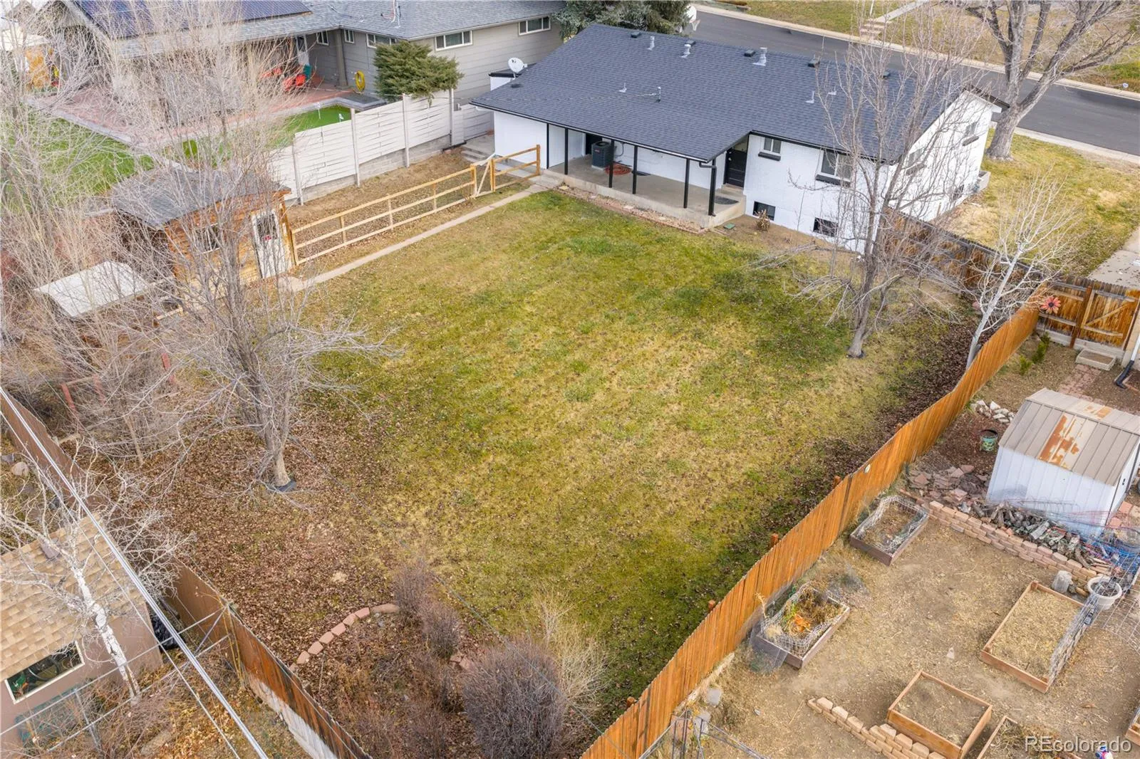 Outside, enjoy a huge backyard designed for entertaining and everyday enjoyment, featuring a covered patio, expansive lawn, privacy fencing, a fenced dog run, and a storage shed. The cul-de-sac setting adds to the home’s quiet charm, while the central location offers convenient access to Denver, Littleton, and Englewood.