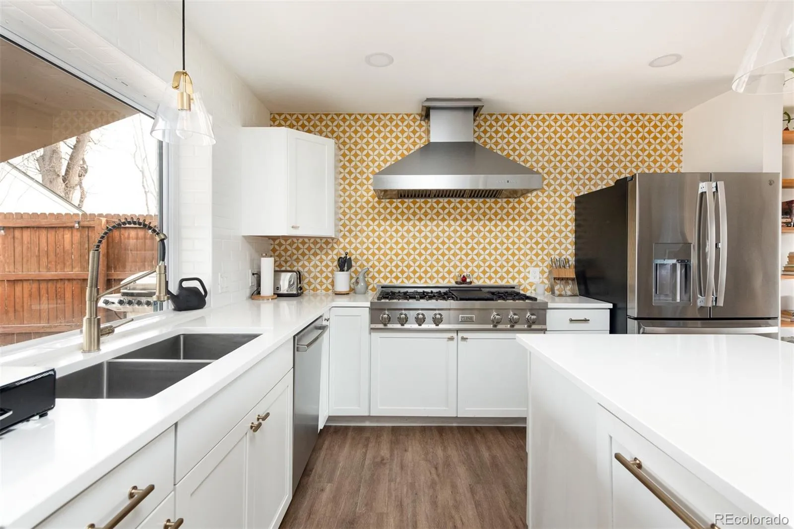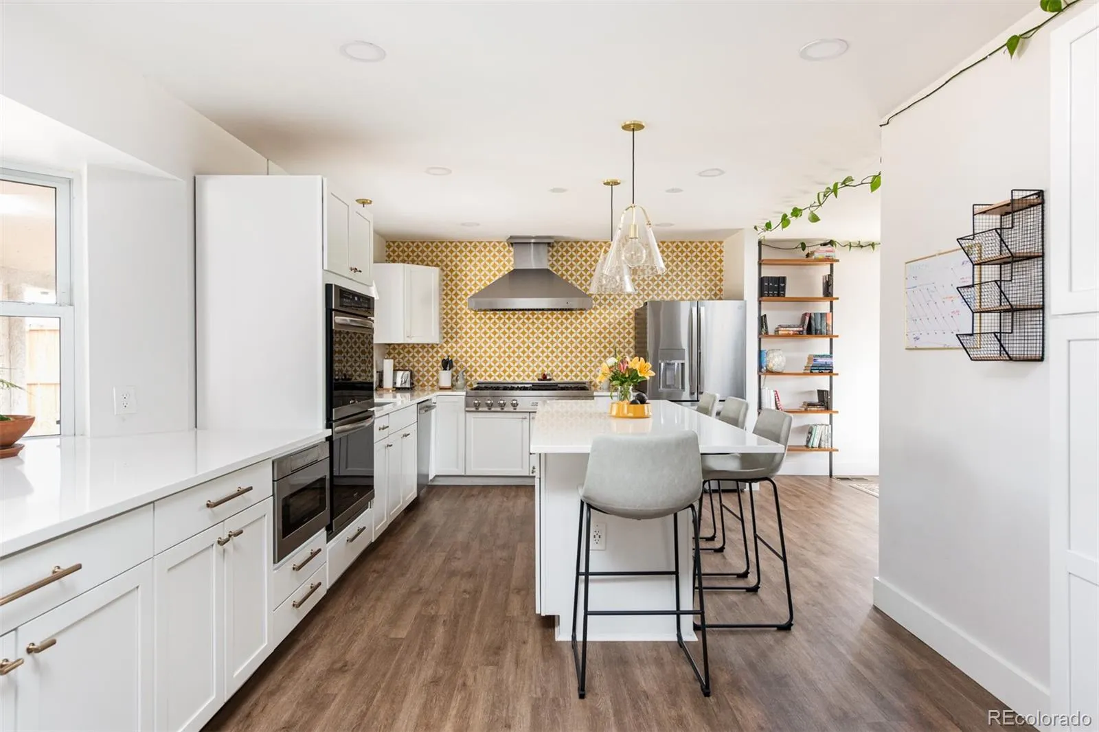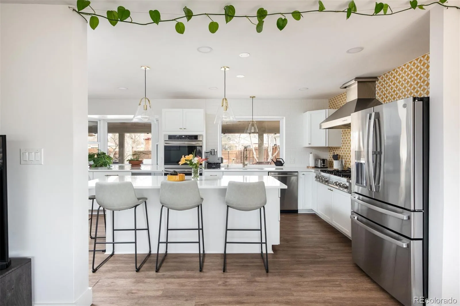 Perfectly reimagined for today’s lifestyle, this Park Hill residence offers an ideal layout for multi-generational living and those who work from home. The main floor features two spacious en-suite bedrooms, providing flexibility for dual primary suites, guest accommodations, or extended family living. The primary suite boasts a massive walk-in closet, while the second suite offers privacy and convenience for in-laws or visitors. For remote workers or students, two built-in desk stations create ready-made work-from-home hubs. At the heart of the home, the open-concept kitchen and living space make entertaining effortless. A chef’s kitchen with a ZLINE 6-burner gas cooktop, double ovens, and bar area with wine and mini fridge flow seamlessly into the dining and living areas, anchored by a two-sided stone fireplace and abundant natural light. Upstairs, versatility continues with two additional bedrooms, a full bath, a loft retreat with coffee bar, and a flexible bonus room that adapts to your needs—whether it’s a home office, media room, or play space. Set on nearly a quarter-acre lot, the backyard is a private oasis with mature trees, a water feature, full-property garden lighting, and a covered patio ideal for outdoor gatherings. A 2-car attached garage with convenient street-facing driveway adds everyday ease. Thoughtful updates—including new Class 4 hail-resistant roof shingles (2024), furnace (2024), washer/dryer (2022), and updated screens (2023)—ensure modern comfort and peace of mind.