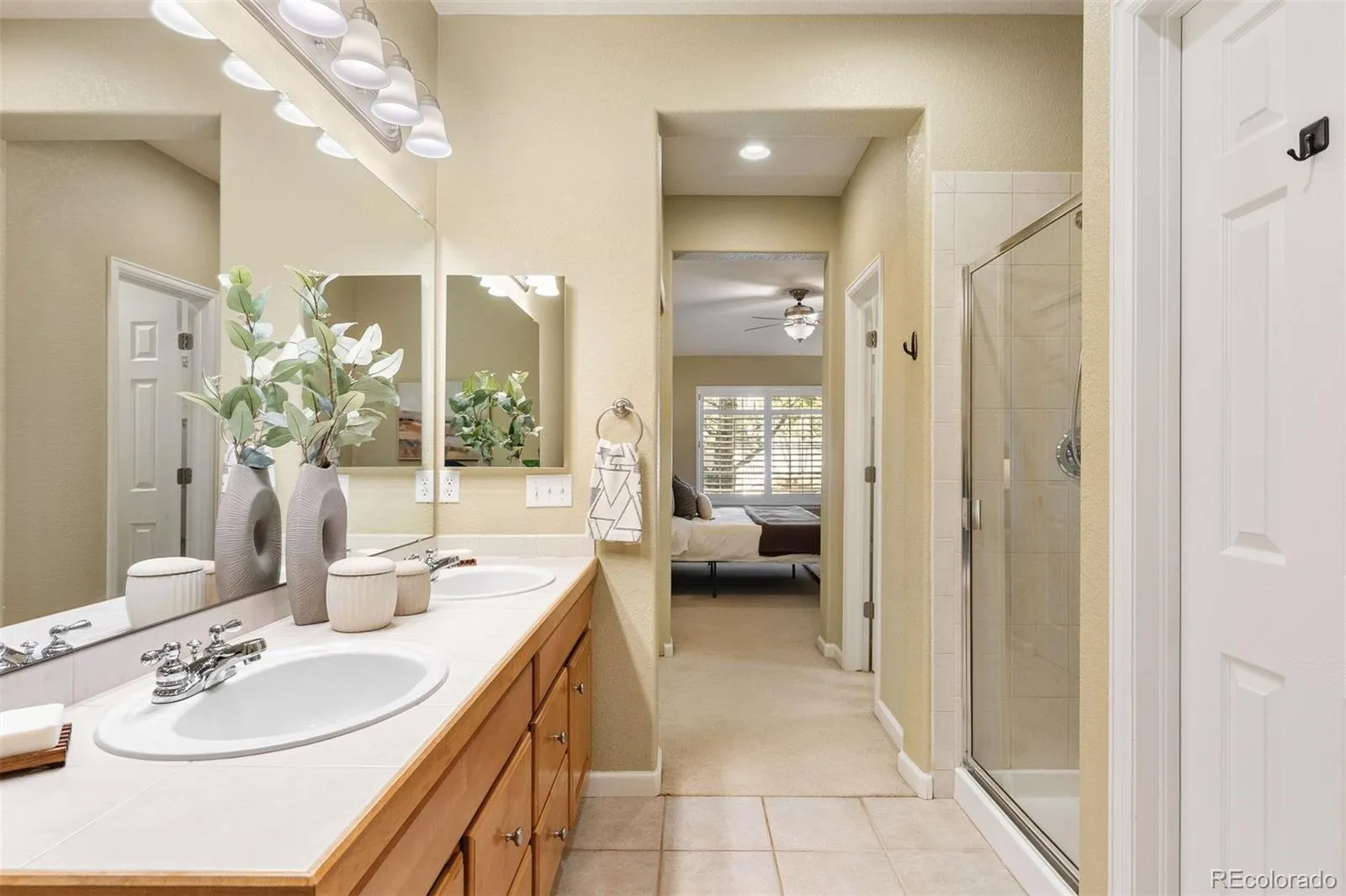 This spacious, low-maintenance townhome in Crofton Park offers true main-floor living with thoughtful touches throughout. The main level features an open floorplan with striking vaulted ceilings, beautiful plantation shutters, and a cozy gas fireplace. Designed for easy entertaining, the wide-open layout includes a generous dining area, a welcoming living space, and an eat-in kitchen with real hardwood floors, slab granite countertops, stainless appliances (including a brand-new refrigerator), and a generous pantry cabinet. The main-floor primary suite is a highlight, offering two closets (one walk-in), a five-piece bath, and a separate water closet for privacy. You’ll also find a dedicated laundry room with great cabinetry, a powder bath, and direct access to the attached 2-car garage—no stairs required. Upstairs, a second bedroom, full bath, and versatile loft offer the perfect guest and flex space. Built-in cabinetry and a charming window seat make the loft ideal for a home office, creative space, or library. The partially finished basement adds even more flexibility with a large open living area, adjacent ¾ bath, and egress window—easily converted to a true third bedroom with the addition of a closet. A radon mitigation system was installed in June 2024, and a new water heater in 2023. Out back, enjoy a private, fully fenced deck—perfect for morning coffee, evening wine, or weekend grilling. Crofton Park is a hidden gem: close to greenbelts, walking paths, open space, shops, restaurants, and I-25, yet tucked into a peaceful, well-kept neighborhood. Whether you’re downsizing, rightsizing, or just craving ease and convenience, this one checks all the boxes.