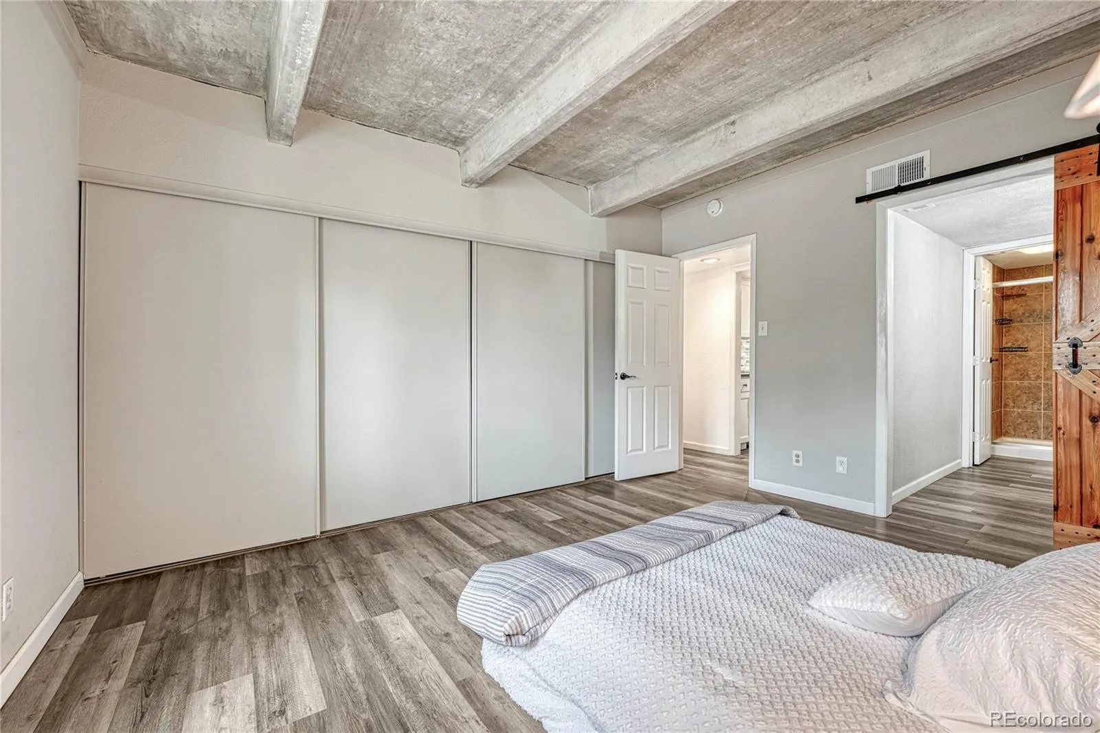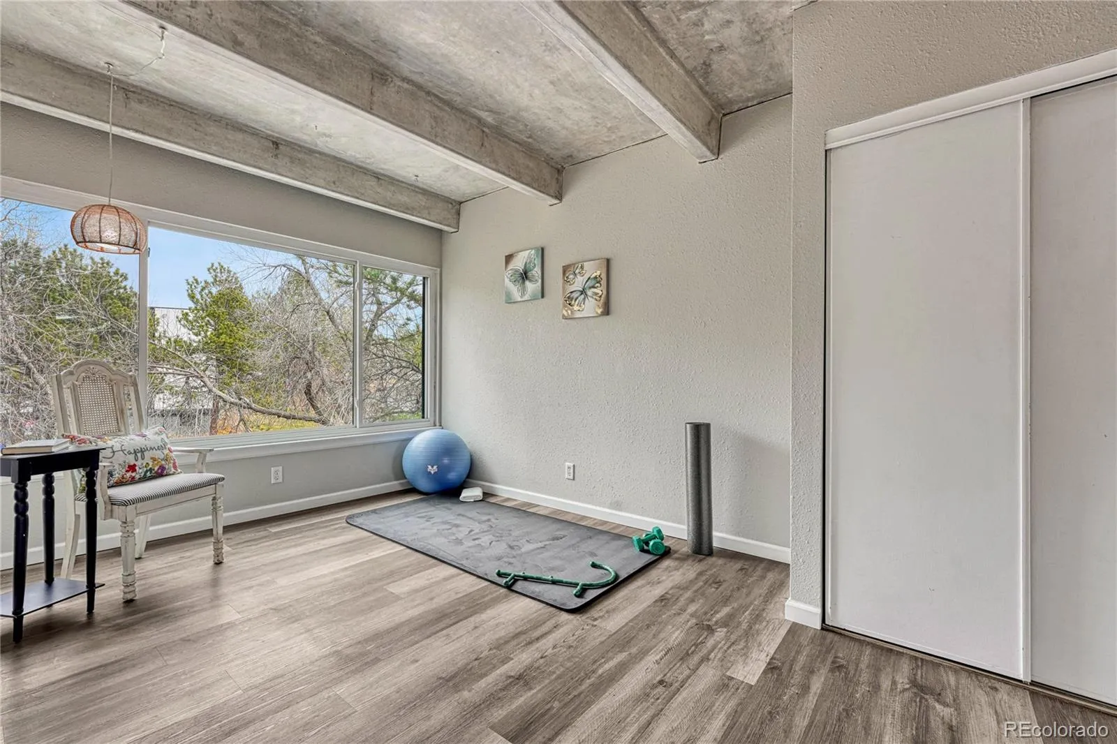 Stylish Penthouse Condo Surrounded by Pines – Modern Industrial Charm & Luxurious Comfort. Nestled among towering pine trees, this stunning top-floor penthouse condo offers a serene retreat with a perfect blend of industrial-modern aesthetics and contemporary comfort. Featuring three bedrooms and two bathrooms, this thoughtfully updated home boasts an open-concept design with luxury vinyl plank flooring throughout and granite countertops in both the kitchen and bathrooms. Indulge in the refined sophistication of rectangular vessel-mount ceramic sinks in both bathrooms, where sleek geometry meets timeless elegance. Designed to be a striking centerpiece, these elevated basins exude a modern yet enduring charm, seamlessly blending contemporary minimalism with artisanal craftsmanship. The transformation of the ceiling from outdated popcorn texture to exposed concrete is more than just an aesthetic upgrade—it’s a statement of modern luxury and architectural refinement. This bold design choice instantly elevates the ambiance, creating a chic, loft-style atmosphere reminiscent of high-end urban residences. Cozy up by the fireplace, the perfect spot for chilly winter nights, or step into the enclosed patio, now seamlessly integrated into the family room for added living space. Entertain or unwind on the spacious rooftop deck, ideal for enjoying the fresh mountain air. Community amenities include a clubhouse, pool and tennis courts, adding to the appeal of this exclusive residence. Additional storage (8′ x 4′) is conveniently located in the basement. Prime location with easy access to Kennedy Golf Course, Cherry Creek Country Club, and the High Line Canal Trail—perfect for outdoor enthusiasts. Walking distance to the bus stop, ensuring effortless commuting. Both shopping and health care are within 10-15 minutes. Don’t miss this unique opportunity to own a penthouse sanctuary with an unbeatable mix of style, comfort, and convenience! WWW.2525SDAYTONWAY2209.COM