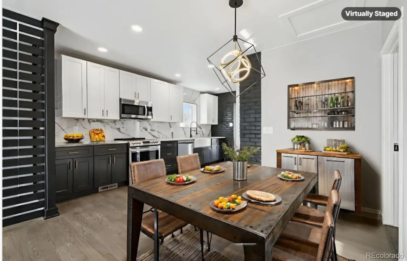 Near Sloan’s Lake Park, Edgewater Public Market, Highlands destinations, and Downtown Denver, this updated 1928 brick home combines location, character, and flexibility. Offering 3 bedrooms, 3 baths, and 1,768 sq ft, the layout includes a main-level primary suite, finished basement, and an additional 144.3 sq ft office/flex space by the garage. The kitchen features slab-style counters and backsplash, two-tone cabinetry, bar seating, a farmhouse sink, and stainless appliances. The living area centers around a fireplace, while recessed lighting, updated finishes, double-pane windows, central air, and a blend of original details and modern design create a clean, functional interior. A mud room and walk-in closet add practical storage and everyday utility. Outdoor features include a covered front porch, rear deck, fenced yard, landscaped lawn, private yard space, and city views. Parking flexibility includes front driveway space for 3+ vehicles or an RV with additional toys/vehicles, 220V service, rear 2-car concrete parking, and a detached 1-car garage. The 6,098 sq ft lot, garage, office/flex space, and additional parking create added flexibility for storage, workspace, hobbies, or future planning. Wheat Ridge allows accessory dwelling units in certain areas subject to applicable standards. Buyer to verify zoning, “ADU” eligibility, dimensional standards, permitting requirements, and all land-use options with the City of Wheat Ridge. 3D tour, additional virtual-tour media, floor plan, and seller-offered 2-10 Home Warranty plan available.
