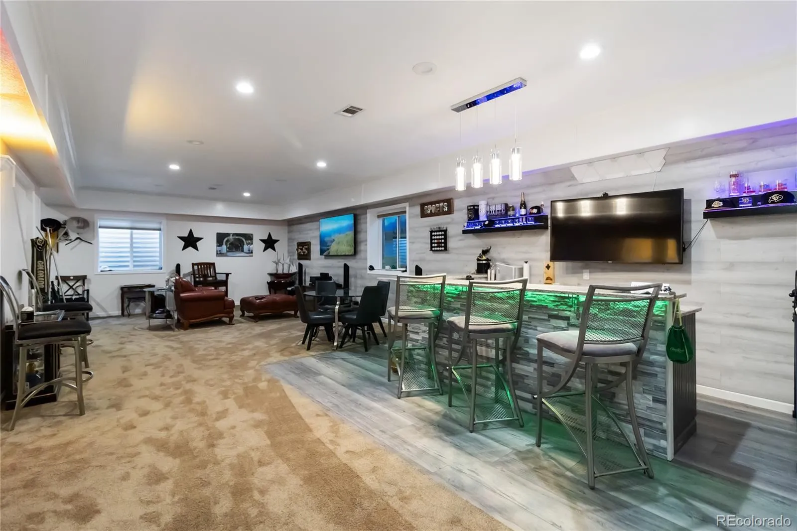 Upon entering, you are greeted by a grand two-story entryway featuring a curved staircase and a welcoming formal living room. The formal living room and adjacent dining room provide extensive space for entertaining. A serene sunroom on the main floor offers a perfect spot for morning coffee, a hobby space, or can easily function as an office or playroom. The amazing entry leads into a spacious great room, bathed in natural light, with a stunning two-story stone fireplace as its focal point. The open-concept design flows seamlessly into the dining area and a chef-style kitchen. The kitchen boasts stainless steel appliances, granite countertops, and expansive storage and counter space. French doors lead out to a spacious back patio with large Trex Deck. Upstairs, the luxurious master retreat awaits, featuring beautiful views, an oversized walk-in closet, and a five-piece ensuite with separate vanities. The second floor is completed by two additional large bedrooms, a full bathroom, and a flexible loft area. The finished basement is an entertainer’s dream, featuring a beautifully renovated bar, a home theater (which could serve as another bedroom), an additional large bedroom, and a full bathroom with a shower. Outside, the property features professionally manicured front and back yards with a concrete border for effortless mowing. You can enjoy the convenience of being within walking distance of the golf course and community pool. This “must-see” property offers a serene environment to relax after a long day. Come and experience luxury living at its finest! As a bonus, the seller will include a newer Snow Blower. https://www.youtube.com/watch?v=gzWsw_ChTc4