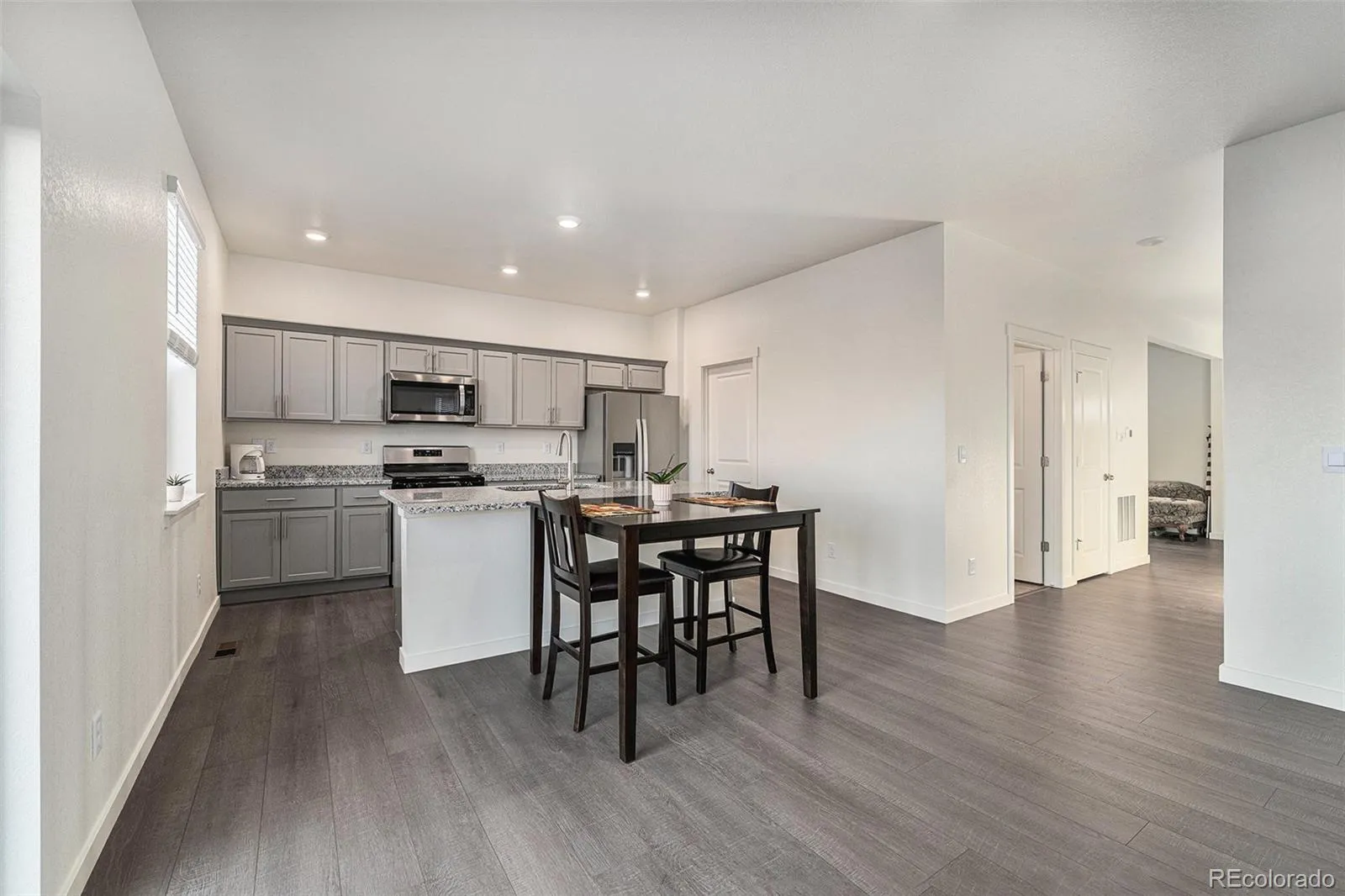 Welcome to this nearly new, move-in-ready two-story home in Johnstown, Colorado, located at 439 Bluebird Road. This spacious 4-bedroom, 3-bathroom home offers 2,481 square feet and sits on one of the best lots in the neighborhood, backing directly to one of the community’s five parks with a walking path that leads to the main park just steps away. Conveniently located near I-25, this home offers an easy commute while maintaining a peaceful, park-like setting. The open-concept main level features wide-plank luxury vinyl flooring and a beautifully appointed kitchen with Breckenridge Gray cabinetry, granite countertops, stainless steel appliances, a gas range, and a walk-in pantry. The stainless steel refrigerator is included, making this home truly move-in ready. Additional features include a tankless water heater, Smart Home technology, and a 4-foot crawlspace for extra storage. Upstairs, the primary suite includes an expansive walk-in closet and a private ensuite with double vanity sinks and quartz countertops. Three additional bedrooms, a full bathroom with double vanities and quartz counters, a loft, a large linen closet, and a walk-in laundry room complete the upper level. Washer and dryer are included, along with new custom blinds throughout. Enjoy the professionally xeriscaped backyard, designed for low maintenance with a natural Colorado feel. Relax or entertain while overlooking the open park space just beyond your backyard. This exceptional Johnstown CO home for sale combines modern finishes, a prime park-backing lot, and a desirable location.