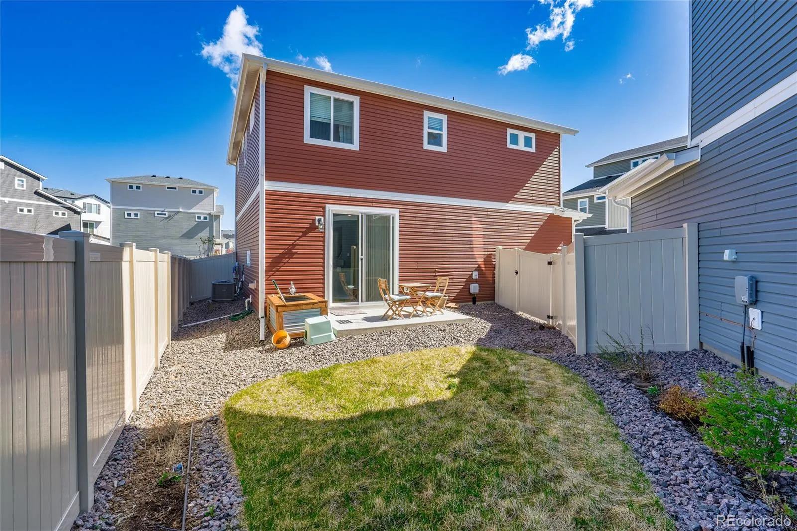 Stunning Former Model Home with Designer Finishes and Exceptional Community Amenities that is Move In Ready! Welcome to this beautifully appointed 3-bedroom, 3-bathroom home that blends style, comfort, and functionality. Once featured as a Parade of Homes showcase and a former model home, this residence offers high-end upgrades throughout and meticulous attention to detail. Step inside to find luxury vinyl flooring that flows seamlessly through the open-concept main level living spaces, creating a warm and modern aesthetic. The kitchen features sleek granite countertops, and is fully equipped with stainless steel appliances, perfect for any home chef. While the upper-level bathrooms also boast granite counters and tiled flooring for a polished finish. The primary suite includes a private en suite bath, and the two additional bedrooms share a convenient Jack-and-Jill bathroom. Enjoy year-round comfort with central air conditioning and take in the outdoors in the private, fenced backyard—professionally landscaped and ideal for relaxing or entertaining. A sprinkler system keeps both the front and back yards lush with ease. This home is nestled in a vibrant community rich with amenities including a Club House, Community Center, Dog Park, Fitness Center, Hiking & Biking Trails, Parks & Open Space, Playground, and a Community Pool. Plus, trash removal, snow removal, and front yard lawn maintenance are all included—making for effortless living. Don’t miss this rare opportunity to own a thoughtfully designed, move-in-ready home in one of the area’s most sought-after neighborhoods.