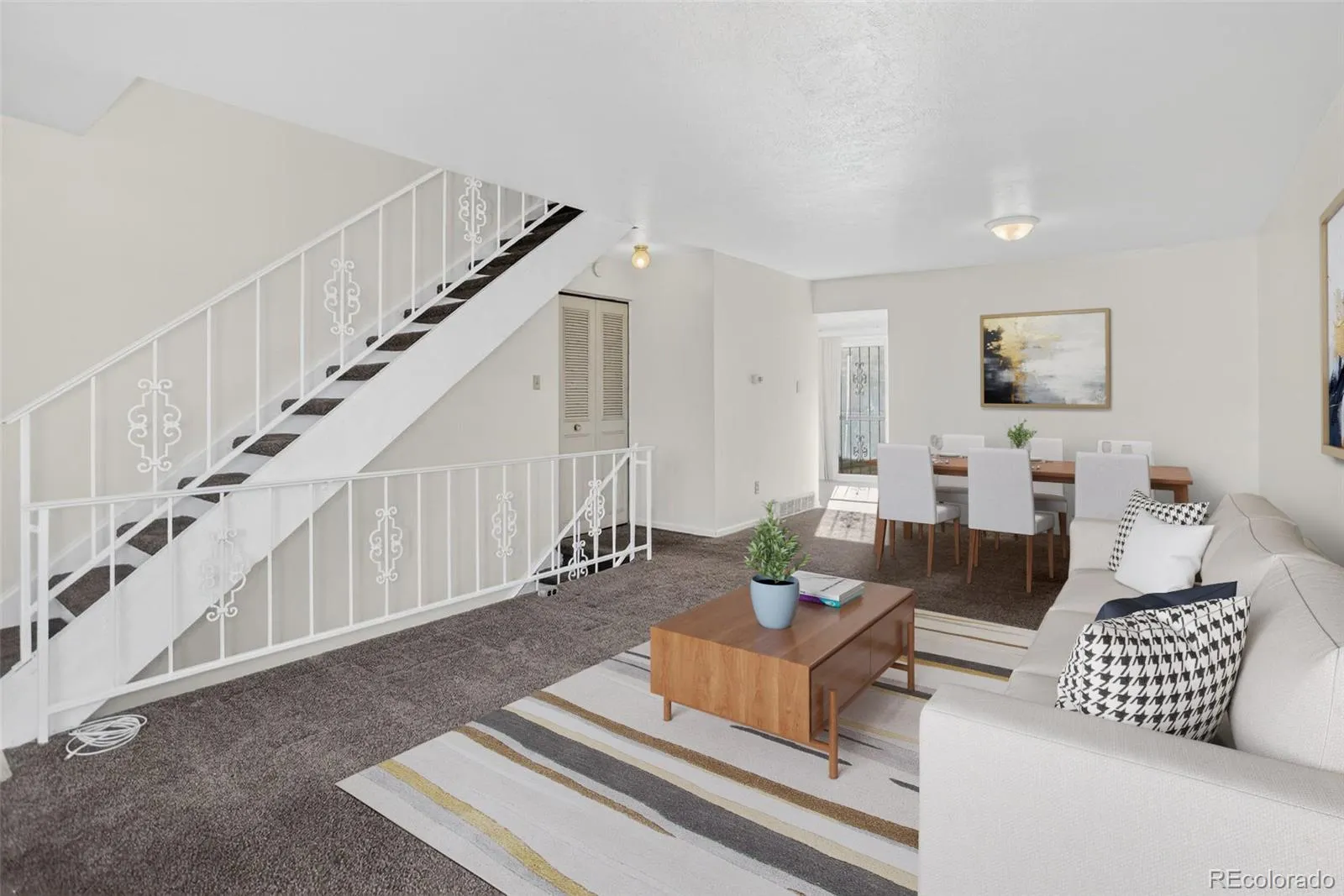 Welcome to this spacious, move-in-ready two-story townhouse-style home offering comfort, versatility, and an ideal location. This home features two generously sized bedrooms, two bathrooms, and two covered parking spaces conveniently located just behind the private patio. The main level offers a large living room, a kitchen with abundant storage and a dining area, a powder room, and direct access to a private patio—perfect for relaxing or entertaining outdoors. Upstairs, the generous primary bedroom includes dual closets. A second large bedroom, full bath, and bonus vanity complete the upper level. The finished basement provides an additional large living area with a fireplace, wet bar, and laundry room with washer and dryer included. The finished basement offers a variety of uses, including a home office, gym, additional living space, or potential third bedroom. In-unit laundry and abundant storage add everyday convenience. Numerous large windows throughout create an open, bright, and inviting atmosphere. Recent updates include interior paint (2025), water heater (2025), all first- and second-floor windows (2019), and a sliding patio door (2023). Nestled in the desirable French Quarter community, the HOA fee includes water, sewer, trash, snow removal, landscaping, and more. The clubhouse is currently under renovation and has an indoor pool and hot tub. Garland Park is just one block away and features mature trees, trails, tennis courts, a playground, basketball courts, athletic fields, Lollipop Lake, and picnic areas. Enjoy easy access to parks, trails, shopping, restaurants, Cook Park Recreation Center, Cherry Creek, I-25, the scenic Cherry Creek Bike Trail, and so much more. A one-year buyer’s home warranty is included.