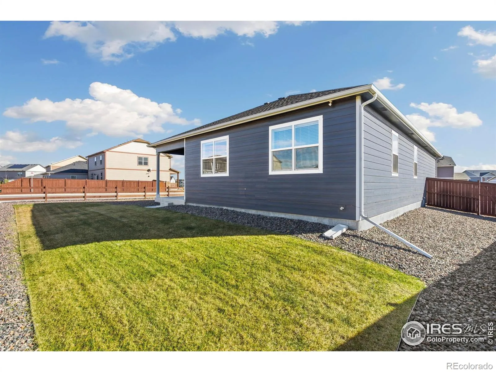 A corner-lot setting that puts the park and mountain views right in your backyard! This newer and thoughtfully designed ranch-style home offers a move-in ready, single-level living, with a split-bedroom floorplan that balances openness with privacy, making everyday living feel both comfortable and efficient. Natural light fills the main living area, creating a bright and inviting atmosphere that feels fresh and easy to personalize. The kitchen includes stainless steel appliances, granite countertops, a large center island, and a pantry offering plenty of prep space and storage for all your cooking needs. The primary suite features a walk-in closet and an ensuite bathroom, while three more bedrooms provide plenty of options for guests, work-from-home needs, hobbies, or additional living space. Enjoy a covered front porch for morning coffee, plus a fenced backyard with a covered patio that opens directly to the neighborhood park, with views of Long’s Peak and the foothills that’s perfect for relaxing or entertaining outdoors. A two-car garage offers plenty of room for vehicles, gear, and extra storage. Convenient location, with quick access to I-25 and just a short five-minute drive to downtown amenities.