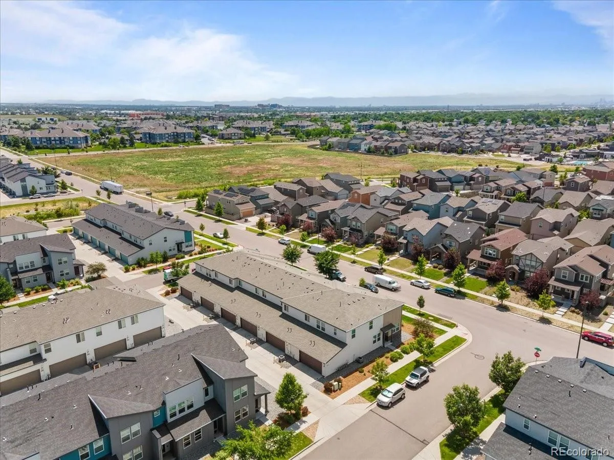 Great price to make this your own. Modern and move-in ready townhome featuring a spacious, light-filled floor plan and stylish finishes throughout. The gourmet kitchen is equipped with a gas range, granite slab countertops, stainless steel appliances, solid white wood cabinetry, a large island, and integrated dining-perfect for cooking and entertaining family and friends. High ceilings and abundant natural light enhance the open feel, while a versatile flex space offers the ideal spot for a home office. The primary suite includes a luxurious ensuite bathroom and a generous walk-in closet. Freshly painted, hard wood flooring and a 2 car spacious attached garage. Enjoy your morning coffee on the charming covered front porch and an oversized private patio with beautifully maintained landscaping cared for by the HOA. Residents of this vibrant community enjoy access to 40 acres of parks and amenities, including a dog park a “community hub” for social gatherings, and a planned 10-acre city park coming soon. Located near The Anschutz Medical Campus, with convenient access to biking trails, parks, community pools, and Dick’s Sporting Goods Park-Denver’s premier sports and entertainment complex. Great location near the Denver International Airport.