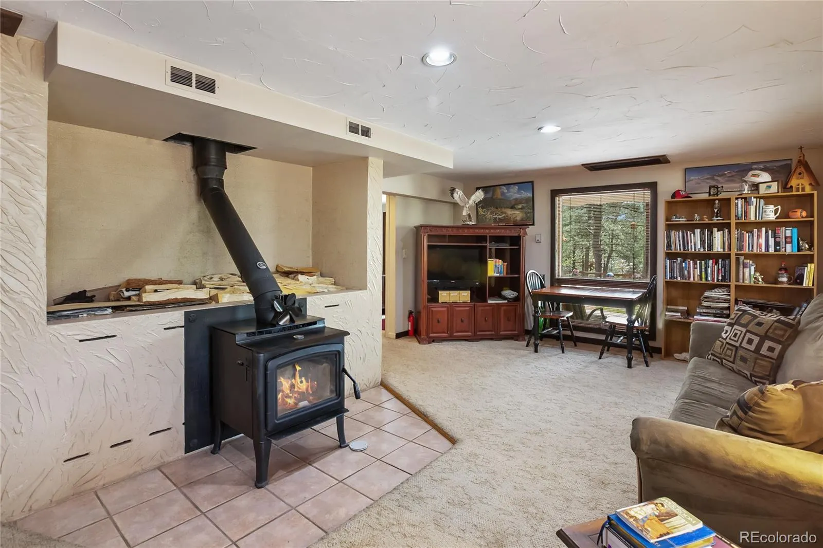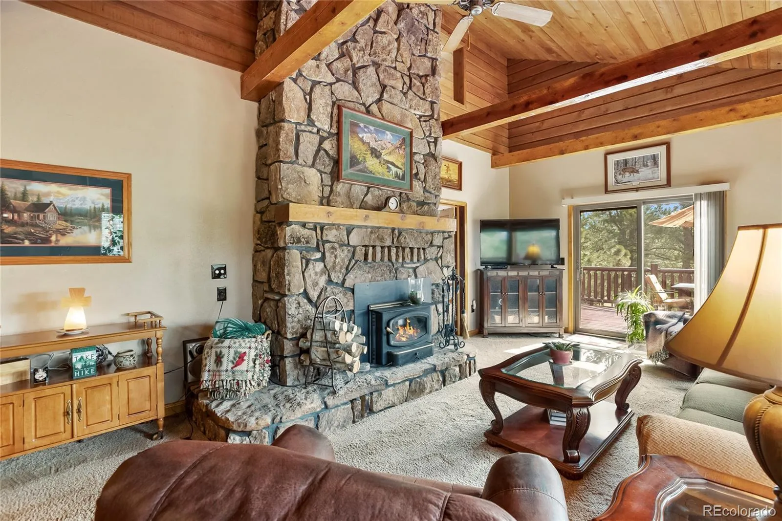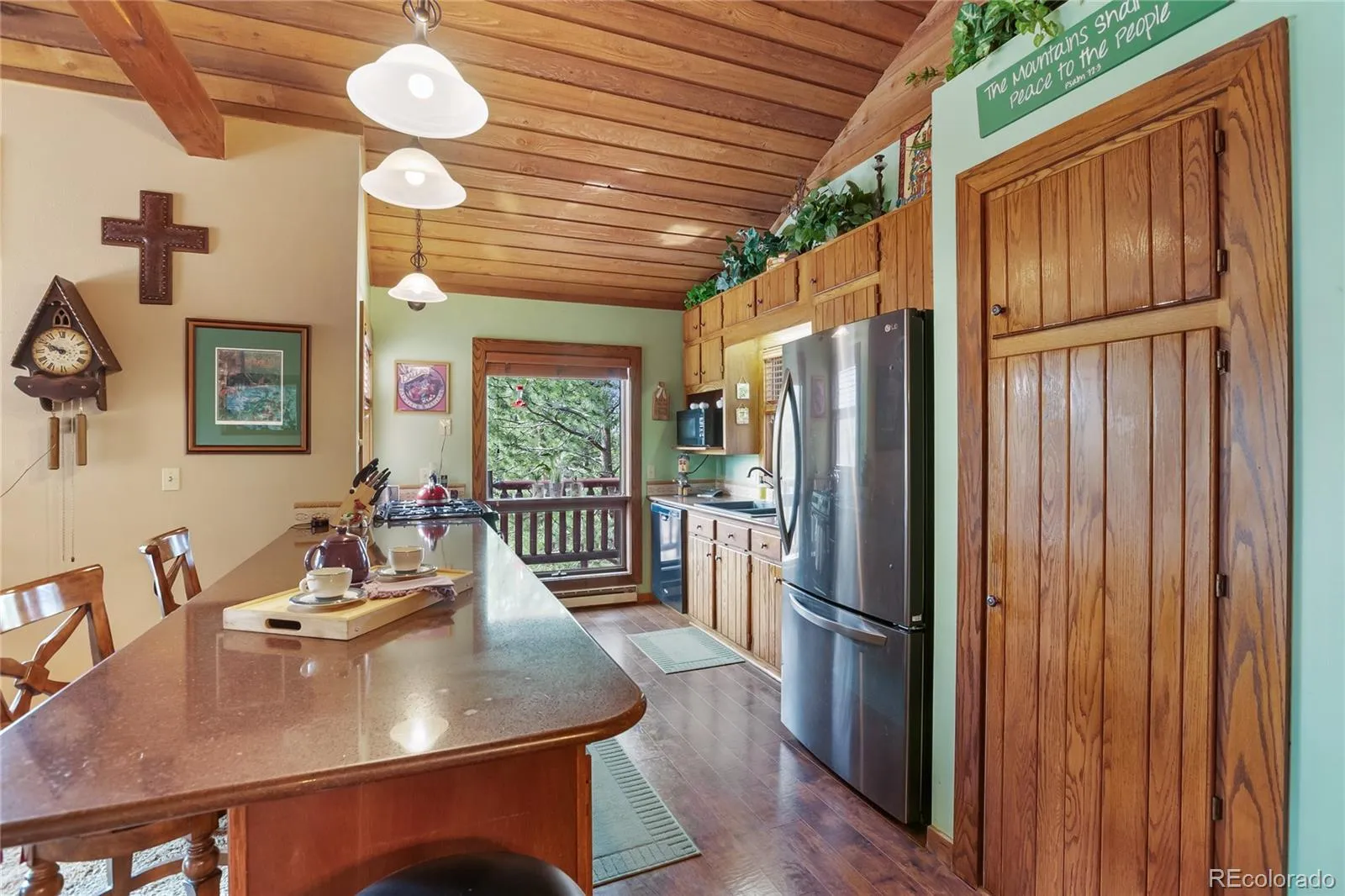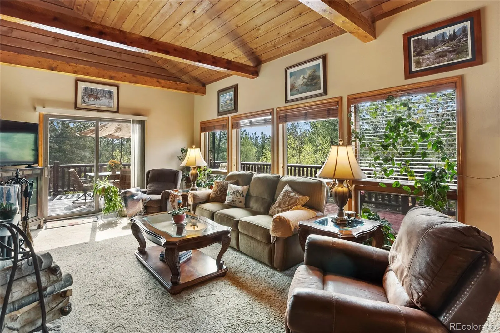 Stunning home nestled on a serene 5.49-acre lot with private, picturesque setting. Home offers 4 spacious bedrooms, 2 baths, and a sleek galley kitchen with quartz countertops, newer appliances (refrigerator, gas range/oven, dishwasher, disposal, microwave), rich oak cabinets, wood flooring, and charming tongue-and-groove ceilings on the main level. Spacious living room with a moss rock fireplace and wood insert, plus large windows for ample light and passive solar. Main-level master suite with full bath and his-and-hers closets. Upper level includes an office or fourth bedroom. The lower level offers a 23×14 family room with a wood stove, storage, two additional bedrooms, a 3/4 bath, and walkout access to the front yard and side patio. Laundry room includes washer, dryer, extra refrigerator, and freezer. Detached two-car oversized garage with workshop and attic storage. Includes log splitter, Polaris ATV, power washer, and firewood. Well and septic system. Large fenced backyard with flowerbeds, Ponderosa pines, and aspens. Low-maintenance stucco siding and metal roof. Discover your Colorado paradise! Fully Furnished! RV Parking!!!!