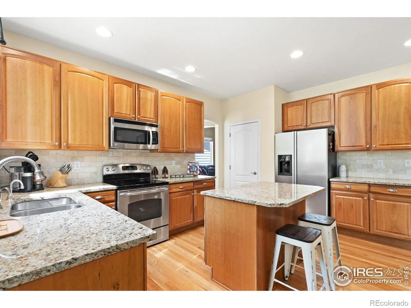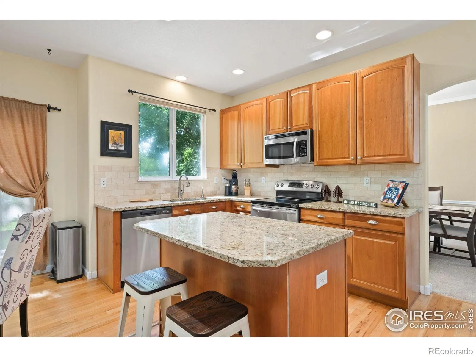 Welcome home to 8119 Lighthouse Lane! This 3590 sq ft, 4 bed, 4 bath (plus office) home is located just minutes from everything in the highly desirable neighborhood of Highland Meadows. As you enter the main level you immediately notice the natural light that floods the office and two story great room, drawing you into the home. The main floor with living room, kitchen, formal dining room, breakfast nook and hearth room/family room, strikes the perfect balance of open concept while still feeling warm and inviting. Tied together with walls of windows and natural light, fresh carpet and real hardwood floors, you can’t help but notice how the living areas feel like home right away. Upstairs you will find the large primary suite, complete with five-piece bathroom, soaking tub, walk-in closet and double vanity. Rounding out the upstairs are bedrooms 2 and 3 which share a large full bath, and a loft area perfectly sized for a kid’s study area or second office space. Downstairs we have our fourth bedroom, fourth bathroom and a fantastic rec room complete with wet bar, game space, and a huge set up perfect for a movie night or watching the game. Finally, and not to be outdone, the backyard might just be your favorite part of your new home. With a fully fenced backyard (with no rear neighbors) and a custom patio that invites you to the best of Colorado outdoor living, you are sure to spend countless hours and evenings back here. An available optional community pool membership, parks within walking distance, and trails winding throughout the neighborhood, make 8119 Lighthouse Lane one of the best values in all of Northern Colorado.