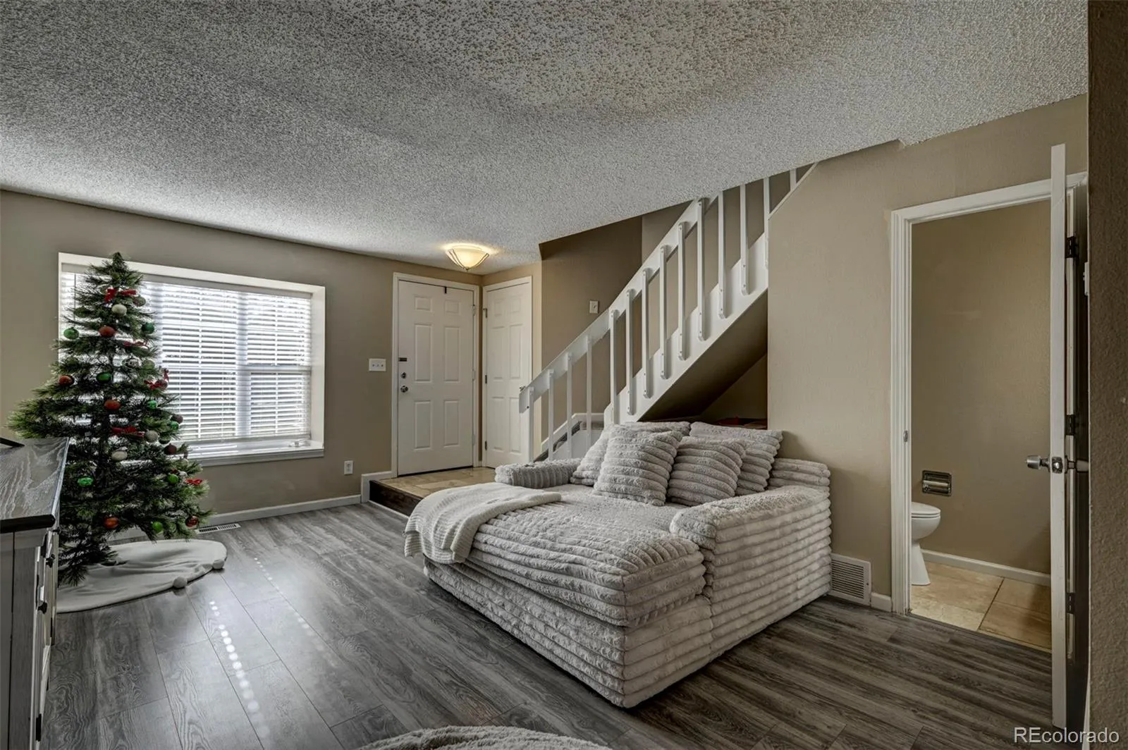 Inviting 2-Bedroom, 2-Bath end-unit townhome located in the quiet, southeast community of Crestline Village. Beautifully maintained 2-story home with 977 sf of well-designed living space. Central air and heat for year round comfort. The main level showcases a tiled Entry and beautiful luxury vinyl plank flooring for a modern look that’s easy to maintain. Upstairs, plush neutral carpeting adds comfort to the two generously sized bedrooms with oversized double closets. Vaulted ceilings flood the rooms with natural light, creating an airy, open atmosphere. The Primary Bedroom has a private entrance to the Full Bathroom with vanity, mirror, and an enclosed tub/shower. The main floor offers a thoughtfully designed layout with a light and bright Living Room with front yard views that flows seamlessly into the Dining Area and Kitchen. The Kitchen boasts wood cabinets with granite countertops and tiled backsplash. Stainless steel appliances includes a dishwasher, smooth top range oven, built-in microwave oven, and side by side refrigerator. Enjoy meals in the spacious Dining Area that has a slider out to a spacious wood deck for outdoor dining and relaxation. The Laundry Room is located off the Kitchen and includes built-in shelves and a washer and dryer. There is a convenient Powder Bathroom for guests. Reserved parking and ample guest spaces are steps from your front door. The backyard provides a quiet retreat surrounded by mature trees and partial mountain views. This delightful home offers unbeatable convenience. It is located just minutes from schools parks, and trails, including Wildflower Park. Easy access to I-25, downtown Colorado Springs, Peterson Space Force Base, the airport, and Powers Corridor for shopping, dining, and entertainment. Don’t wait! This MOVE-IN READY townhome is ready for you to make it your own!