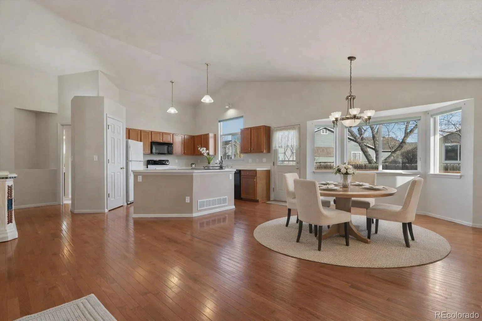 Welcome to 548 Badger Creek Drive, a beautifully maintained ranch-style home in Brighton, Colorado offering true one-floor living, abundant storage, and exceptional indoor–outdoor space. With strong curb appeal and thoughtful design throughout, this home is ideal for buyers seeking comfort, space, functionality, and future potential. Step inside to an open floor plan with vaulted ceilings and oak hardwood flooring throughout, creating a warm, spacious feel. The large, well-appointed kitchen features ample cabinetry, generous counter space, and an eat-at bar, perfect for casual dining and entertaining. The kitchen flows seamlessly into the main living area, ideal for gatherings and everyday living. At the front of the home, a third bedroom or private home office provides flexibility for remote work or guests. The primary suite is a true retreat, complete with a walk-in closet and a spacious primary bathroom featuring a makeup vanity and abundant storage. Additional main-level highlights include a large laundry and mudroom and direct access to the three-car garage, which offers workspace, storage, and a convenient door to the backyard. Outside, enjoy a huge back deck overlooking a professionally landscaped yard, perfect for relaxing, entertaining, or outdoor dining. The unfinished basement provides incredible expansion potential, already stubbed for a bathroom, with room for additional bedrooms, recreation space, or a home gym. An extra storage crawl space adds even more practical value. Located in a desirable Brighton neighborhood, this home combines single-level living, future growth opportunity, and everyday livability—making it a standout choice in the Brighton, CO real estate market. This home is move-in ready with room to grow—schedule your showing today!
