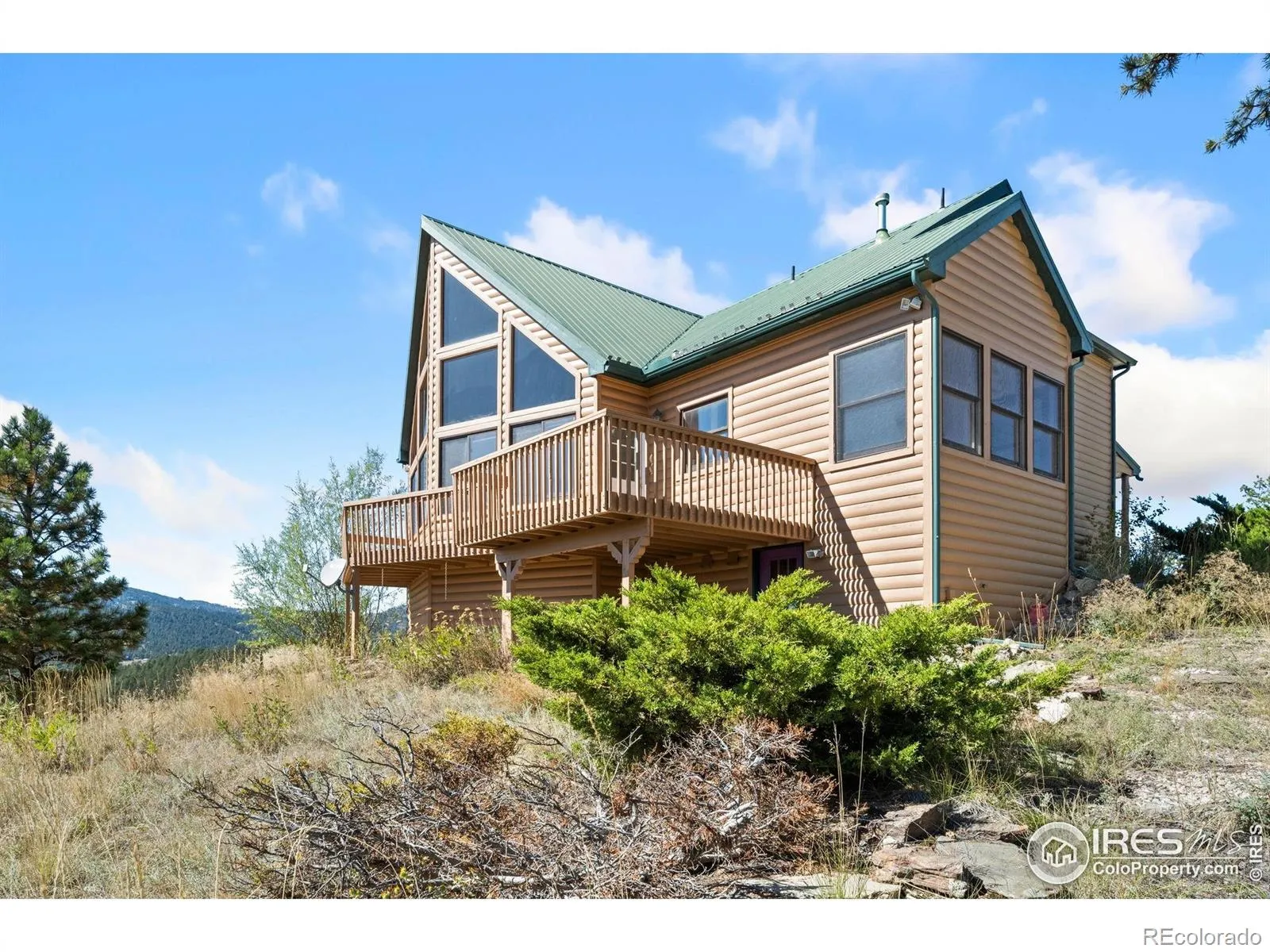 Ready to own your slice of beautiful Colorado? Welcome to 965 Stone Mountain Ranch Rd, a private mountaintop retreat perched on over 48 acres with sweeping views of Pinewood Reservoir and the Front Range. This beautifully crafted cabin blends rustic charm with modern comfort, featuring a durable metal roof, floor-to-ceiling windows, a wraparound deck, and endless serenity. Enjoy main floor living with two bedrooms, a spacious kitchen, and a bright, airy living area. The spacious loft can easily convert to a third bedroom with an ensuite. Just steps away from the home, a massive 1,900+ sq ft outbuilding provides space for cars, campers, and all your mountain toys. Step outside to newly fire-mitigated grounds, a water feature, and multiple sitting areas where wildlife and breathtaking sunsets are your neighbors. Just minutes from hiking, boating, and camping, yet still a convenient drive to town, this home offers the perfect balance of adventure and everyday life. It is truly Colorado living at its finest. Schedule your showing today! Please note, the property is on a private road, please do not drive by without an appointment.