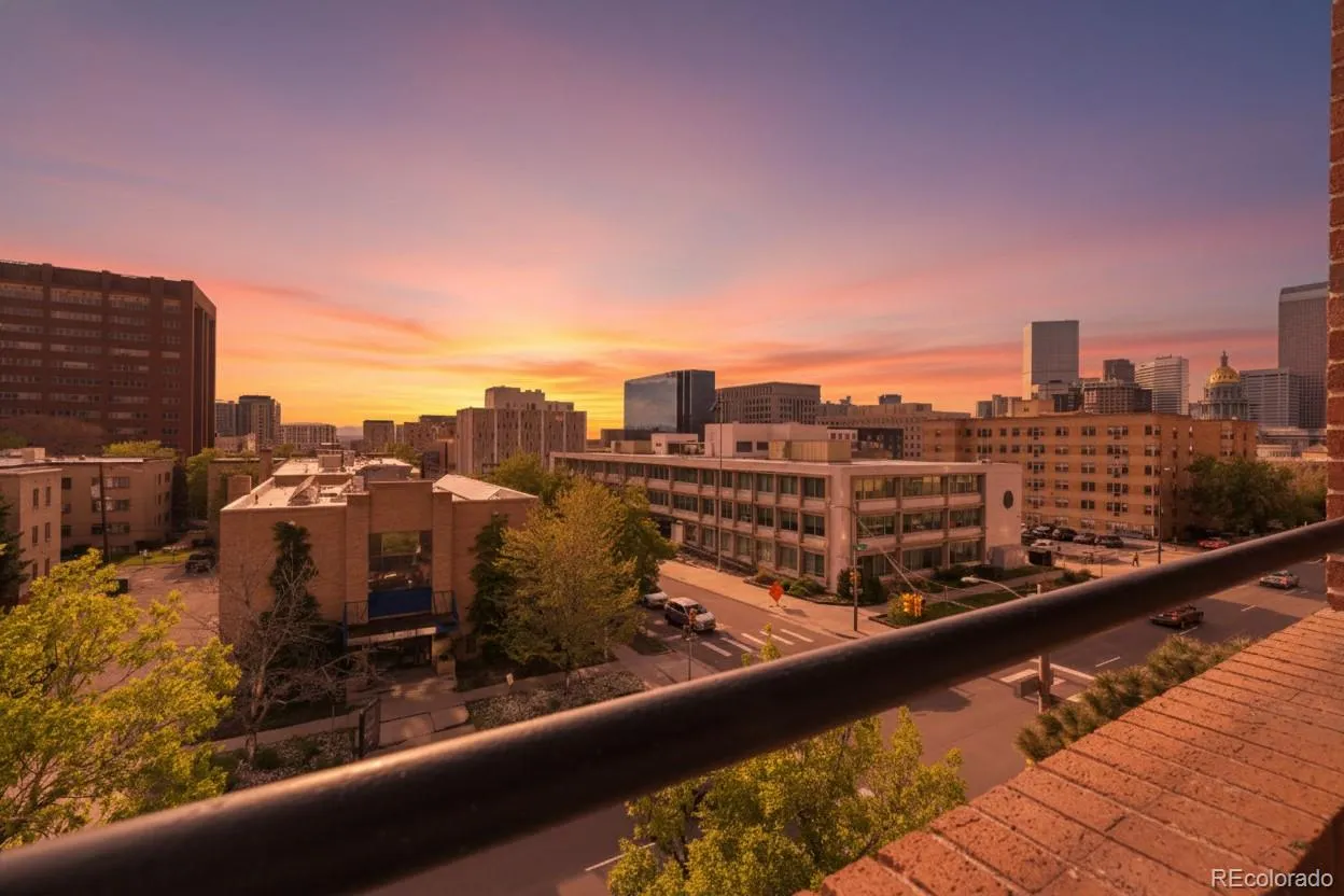 Prepare to be captivated by this stunning one-bedroom sanctuary at Gotham City Condos, where breathtaking mountain and city vistas meet the ultimate in Capitol Hill convenience! As one of the largest floor plans in the building, this residence offers an expansive, light-filled layout defined by large panoramic windows that perfectly frame the Rocky Mountain skyline. The most distinguished feature of this home is the rare, private covered balcony—one of only six in the entire building—providing a perfect front-row seat for spectacular Colorado sunsets. This property delivers incredible value with its own deeded parking space and additional deeded storage in the basement, offering rare assets in such a vibrant location. Inside, the home shines with fresh paint throughout and a kitchen designed for efficiency, complete with a gas stove, ample cabinetry, and a dedicated dining area. The bedroom serves as a comfortable retreat with plush carpeting and mirrored closet doors, while the updated bathroom is centrally located for easy access from both the living and sleeping areas. Financial ease is a cornerstone of life here, as the comprehensive HOA dues offer a true “lock-and-leave” lifestyle with all utilities included: electricity, gas for cooking, water, sewer, and trash. Residents also enjoy free laundry facilities and an array of amenities, including a fitness center, elevator access, secured fob entry, and a peaceful community patio garden. The building fosters an active and engaging atmosphere, hosting regular community-sponsored events and gatherings for residents to connect throughout the year. Perfectly situated just blocks from the Colorado State Capitol and Civic Center Park, the home offers exceptional proximity to major employment and education hubs MSU and CU Denver. Enjoy effortless access to neighborhood favorites like Trader Joe’s and City O’ City. This home is the perfect blend of historic character, modern ease, and the rare outdoor space.