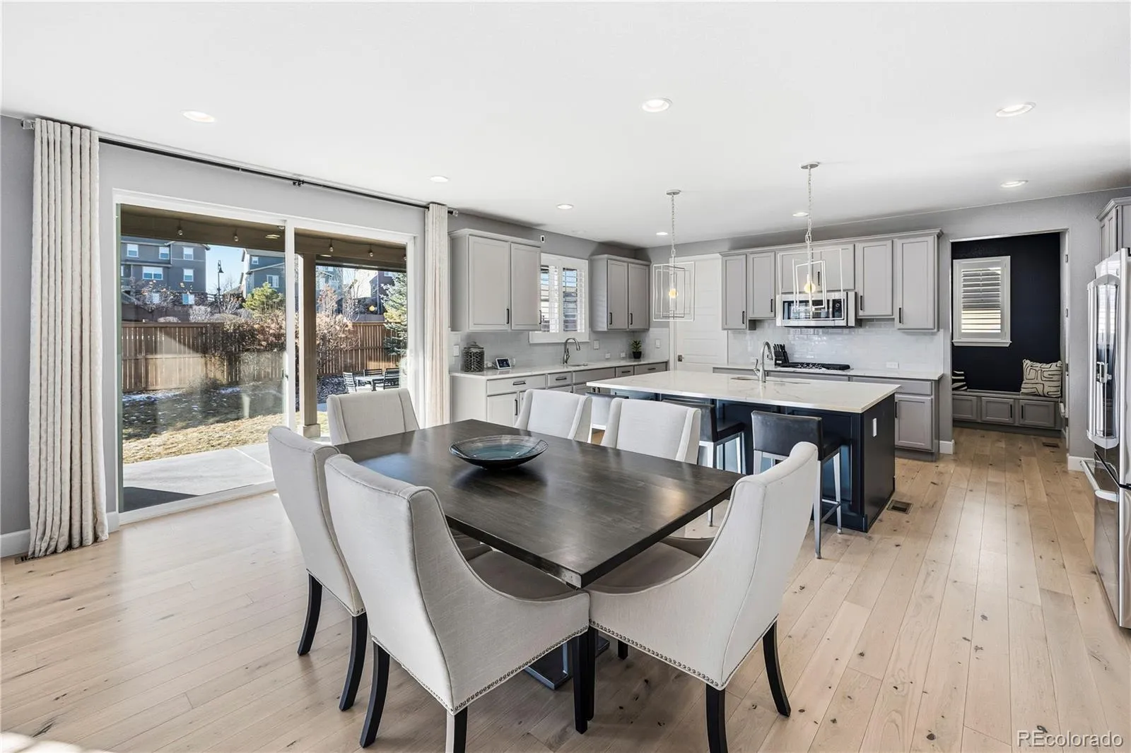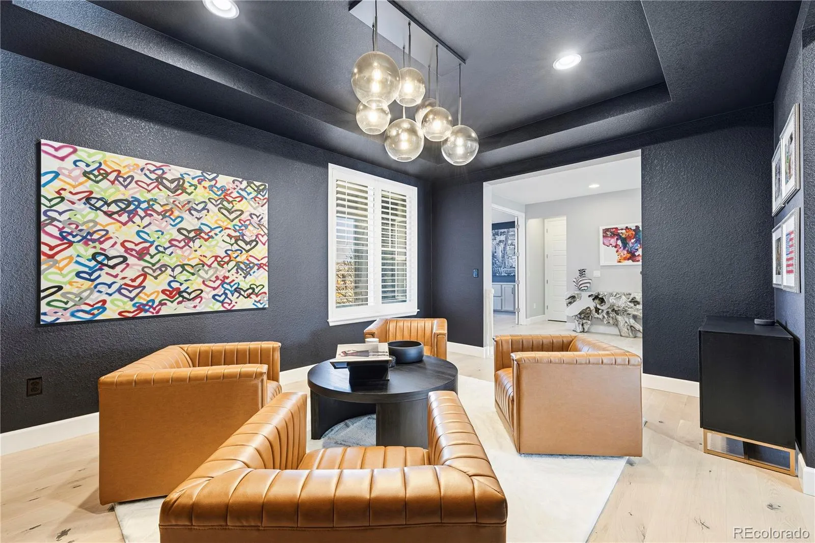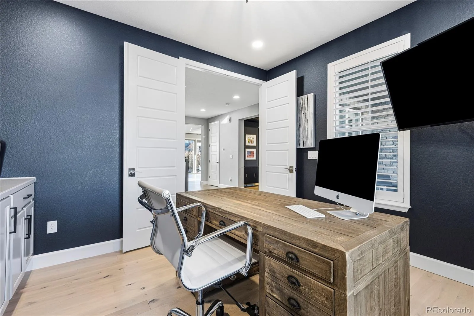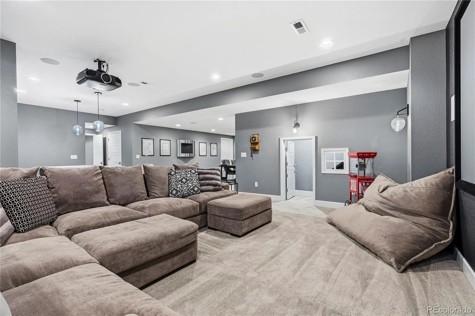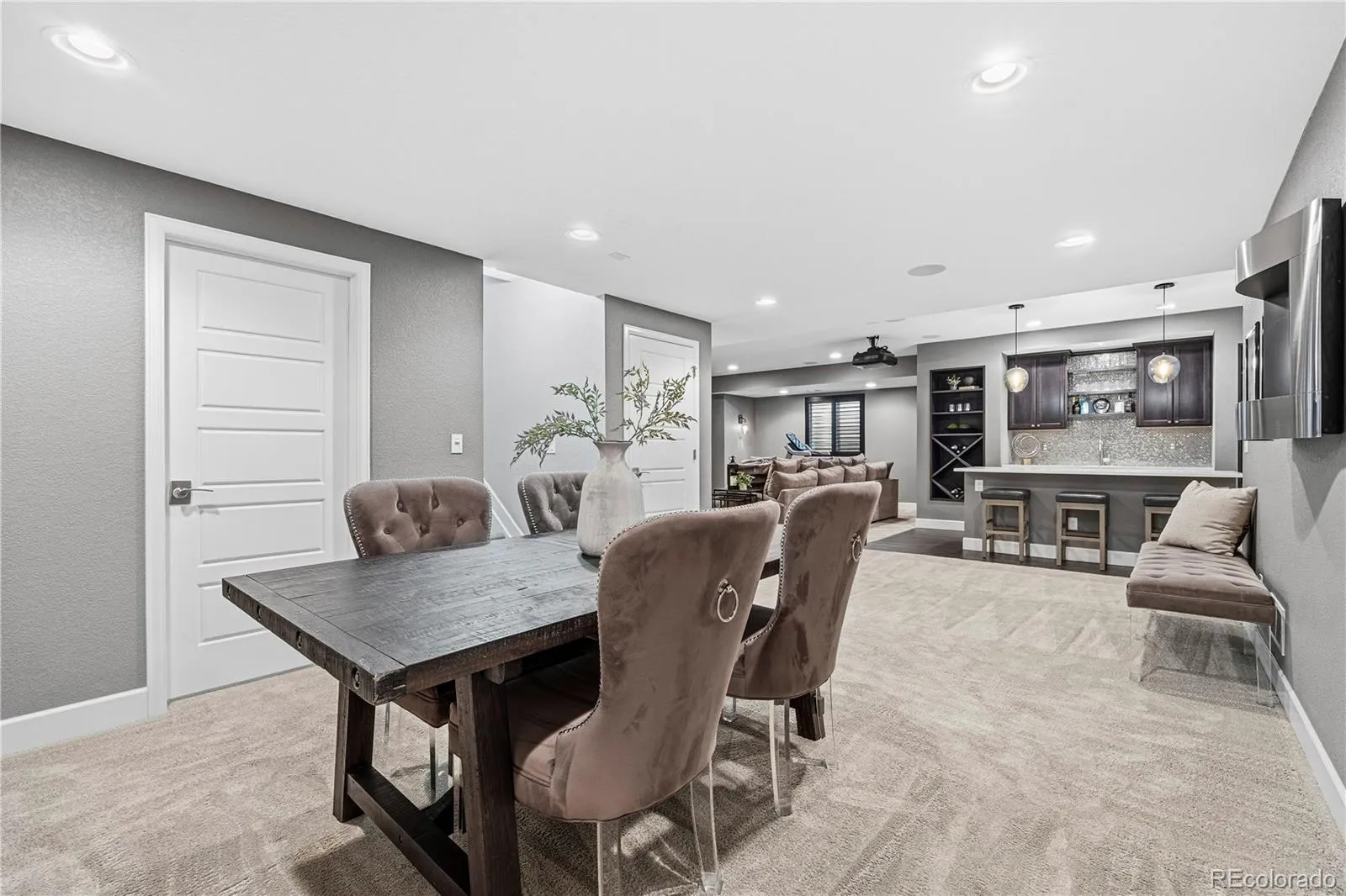 Tucked into the heart of Whispering Pines, where neighborhood trails and Cherry Creek schools are part of daily life, this beautifully crafted Shea home offers comfort, space, and timeless design. The open main level welcomes you with sun-filled living areas, a private office, and a kitchen made for gathering, featuring a generous quartz island, upgraded appliances, and a custom pantry. The formal dining room is set up as a conversation room perfect for evenings with friends. A mudroom connects to the three-car tandem garage. Upstairs, a spacious loft and well-appointed bedrooms provide room to grow, while the primary suite feels like a quiet retreat with a spa-inspired bath and oversized walk-in closet. Each of the upstairs bedrooms offer private baths offering privacy for everyone including overnight guests. The finished lower level adds flexibility with a family room that offers a home theater, cozy clubhouse under the stairs, along with an entertainment bar/kitchenette area. The fifth bedroom also has an en-suite bath perfect for guests. Plus extra storage that doubles as a workout space. Outside, enjoy a covered patio and seating area surrounded by mature landscaping—an inviting spot to slow down and savor Colorado evenings. All set on a quiet cul-de-sac close to shopping, dining, and everyday conveniences.
