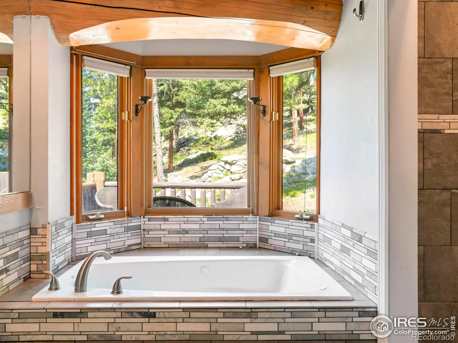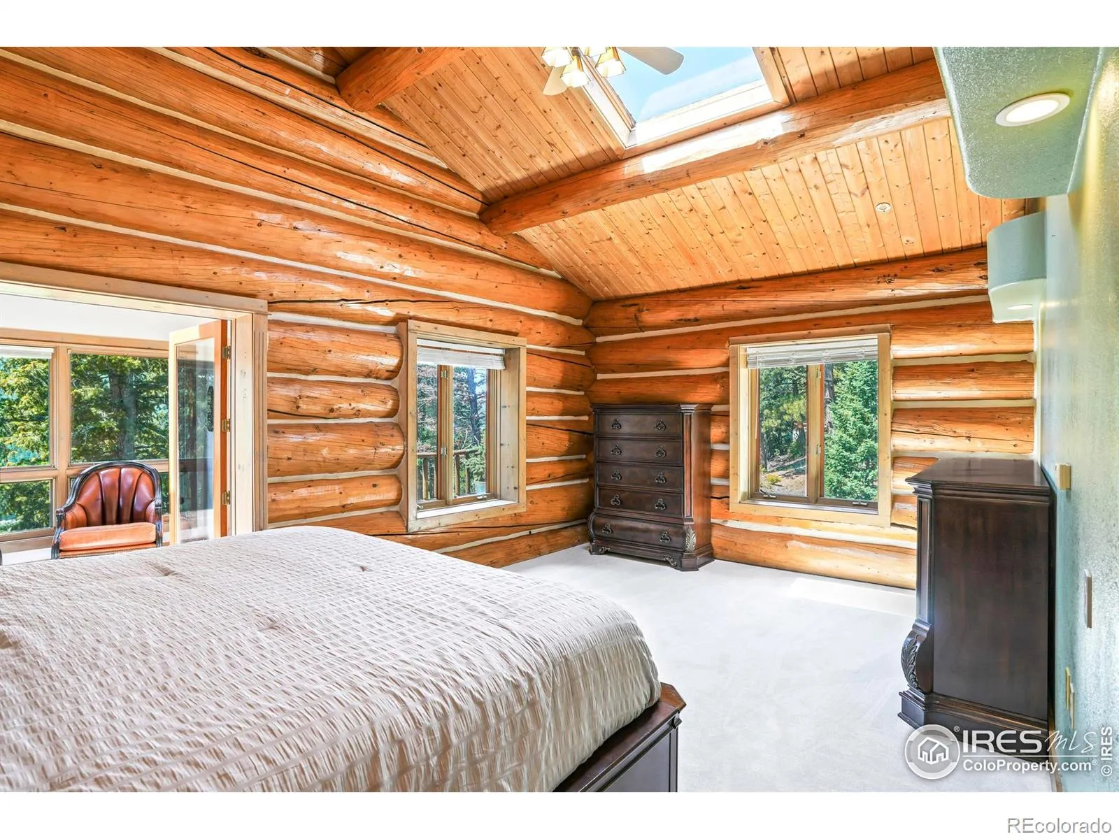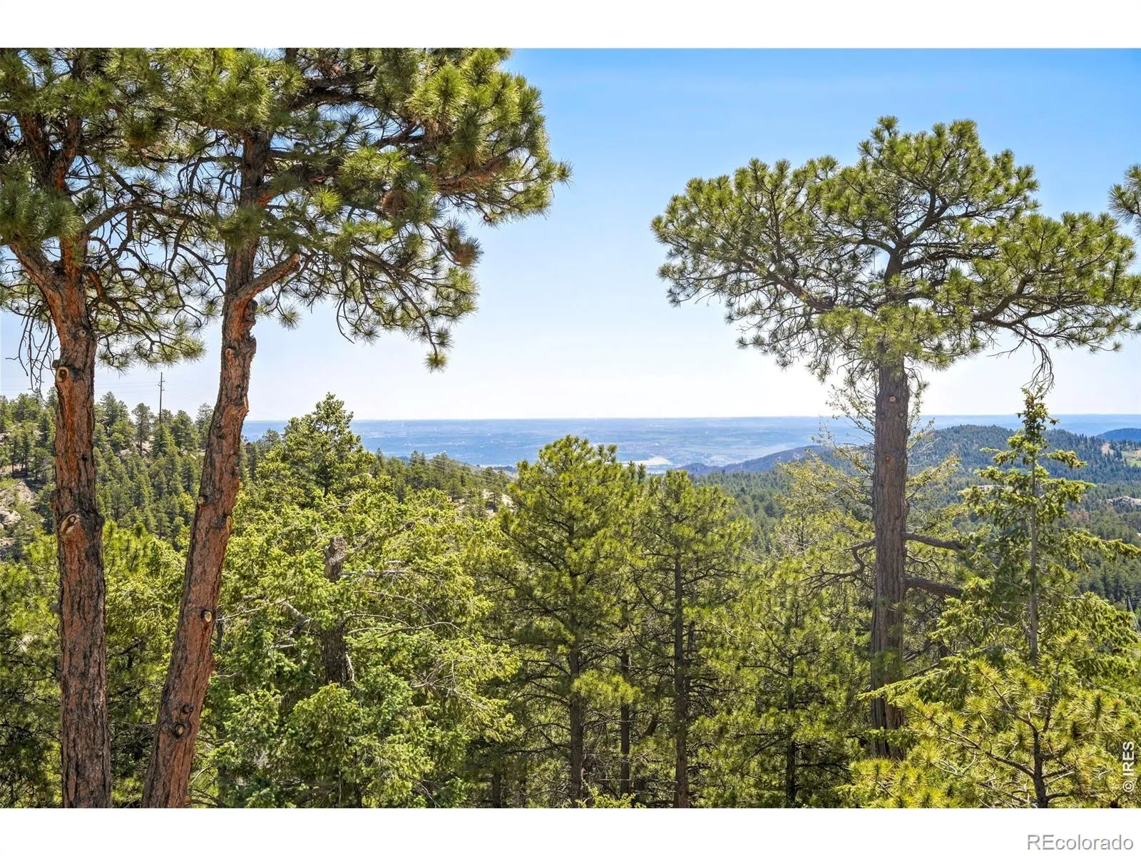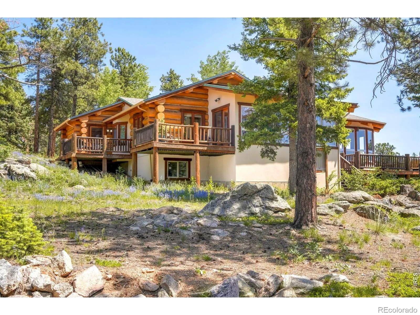 A rare blend of seclusion, craftsmanship and panoramic beauty, this custom British Columbian log home offers captivating views from every angle. On top of the mountain perched on 10.88 forested acres of pine, aspen and dramatic rock outcroppings, this residence showcases sweeping vistas of both the City and surrounding mountains. Designed for connection to nature and timeless comfort, the interior features cathedral ceilings, expansive south-facing windows and warm wood-look tile flooring. A spacious main-level primary suite boasts a remodeled bath, jetted tub, walk-in shower and direct access to a private sunroom and deck. The kitchen highlighted by a large pantry flows seamlessly into a cozy den with a river rock wall and a wood stove insert, ideal for entertaining. Additional highlights include two fireplaces, a versatile office, laundry room and a lower-level retreat. Bordered by Meyer Ranch and Denver Mountain Parks open space, this home sits just moments from Hwy 285 and the town of Aspen Park, Conifer + Morrison