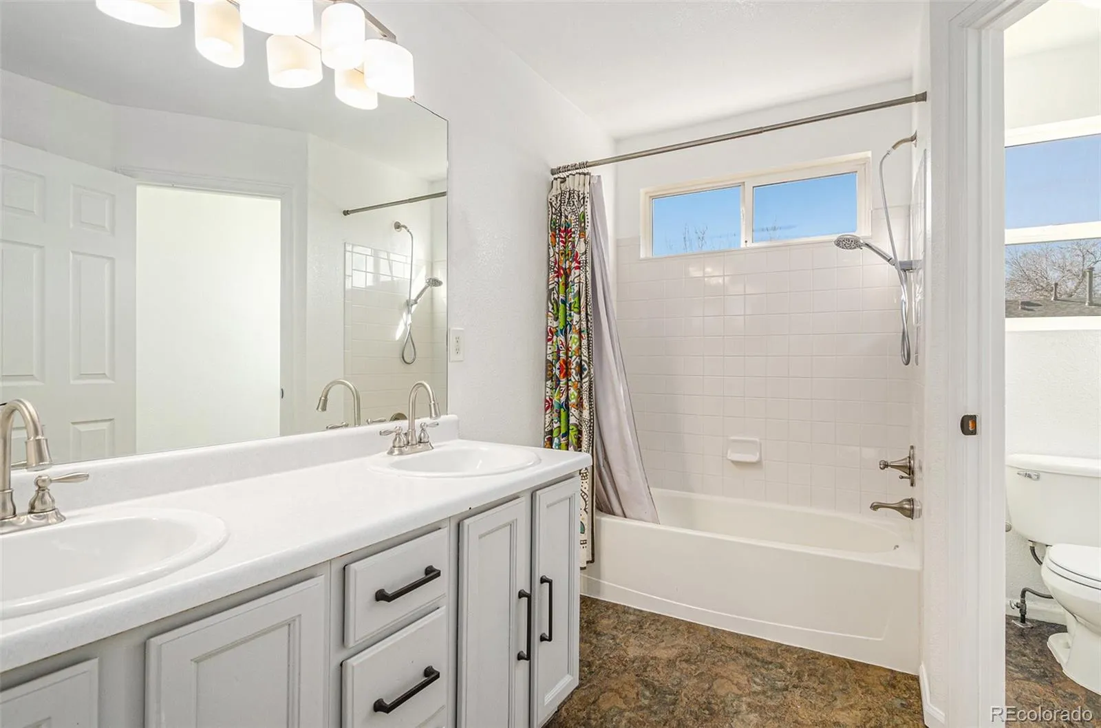 Welcome to this bright and inviting Denver home offering a comfortable layout and plenty of natural light. The spacious living room features large windows and a unique corner fireplace that serves as a stunning focal point. The modern kitchen flows seamlessly into both the living and dining areas, creating an open and connected space ideal for everyday living or entertaining. The primary bedroom includes an ensuite bath with dual sinks and a walk-in closet, while two additional main-level bedrooms provide great flexibility for guests, hobbies, or work.