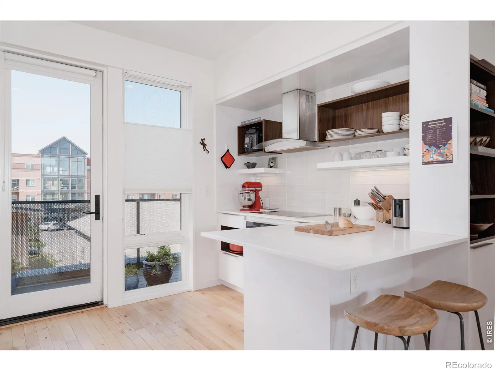 Welcome to 401 Linden St, Unit 3-336, a light-filled, contemporary 2-bedroom, 2-bath condo in the heart of the highly sought-after Confluence neighborhood-where modern design meets the energy of Old Town living. Built in 2019, this desirable end unit offers 1,292 sq ft of thoughtfully designed space, enhanced by extra windows that flood the home with natural light throughout the day. The open floor plan feels both warm and refined, creating an ideal setting whether you’re entertaining friends or enjoying a quiet evening at home. The kitchen is a standout, featuring quartz countertops, stainless steel appliances, an induction cooktop, and clean modern lines that anchor the space beautifully. Hardwood floors extend through the main living areas, adding warmth and sophistication. Step out onto your private south facing balcony-the perfect spot to unwind with a morning coffee or evening drink. Upstairs, you’ll find two spacious bedrooms designed for flexibility and comfort. The primary suite offers a serene retreat with high ceilings, large windows, and a spa-inspired 3/4 bath complete with dual vanities and quartz countertops. The second bedroom is brilliantly versatile, functioning as a guest room or home office thanks to its built-in workstation and Murphy bed. Beyond the unit itself, the community amenities elevate everyday living. The rooftop deck is truly a showstopper-complete with a kitchenette and BBQ grill-offering sweeping views of the city and foothills and an unforgettable space to entertain and gather with friends. Additional amenities include outdoor seating areas, secure bike storage, a private storage locker, and a dog wash station. All of this is just steps from Old Town’s vibrant mix of restaurants, breweries, trails, and shops. This is more than a condo-it’s a lifestyle defined by convenience, design, and connection. Homes like this don’t linger. Schedule your private showing and experience it for yourself.