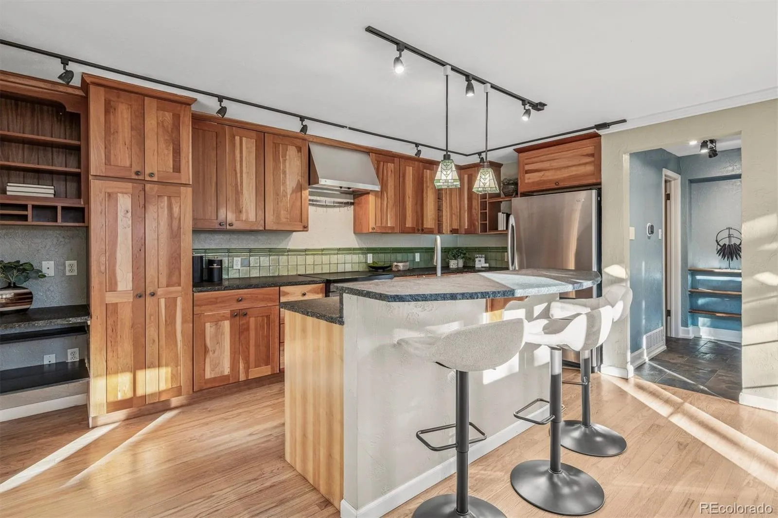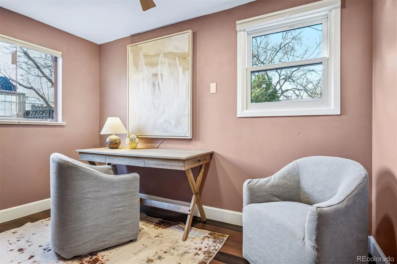 Stunning South Park Hill ranch home blending timeless Spanish-style charm with thoughtful modern updates. From the classic tile roof to the graceful architecture and unique interior, this home is truly one of a kind. Enter through the refurbished arched doorway into a welcoming living room and dining room with views to the back gardens and patio. The updated kitchen opens to a bright sunroom that radiates year-round warmth. 3 sets of French doors extend the experience outdoors to a beautifully landscaped backyard with a tranquil patio and garden, perfect for dining, relaxing, and gathering. The main floor also features a primary bedroom suite, second bedroom suite, and a cozy office. The nearly 1,000 SqFt basement provides even more versatility with space for a non-conforming bedroom, additional living room, or flex area, plus an unfinished workshop for storage or hobby projects. Paid-off solar panels and a new furnace and A/C help keep energy costs low. All of this in an unbeatable Park Hill location: just off picturesque Montview Blvd; steps from neighborhood favorites at 23rd & Dexter (Honey Hill Cafe, Cherry Tomato, Spinelli’s Market); less than a mile to the shops and restaurants at 23rd & Kearney (Bistro Vendome, Lucina Eatery & Bar, Cake Crumbs, Neighbors Wine Bar, Oblio’s); minutes from City Park, the Denver Zoo, and the Museum of Nature & Science; and only a quick 12-minute drive to downtown Denver. This is a rare opportunity to own a home that offers character, convenience, and incredible livability in one of Denver’s most beloved neighborhoods.