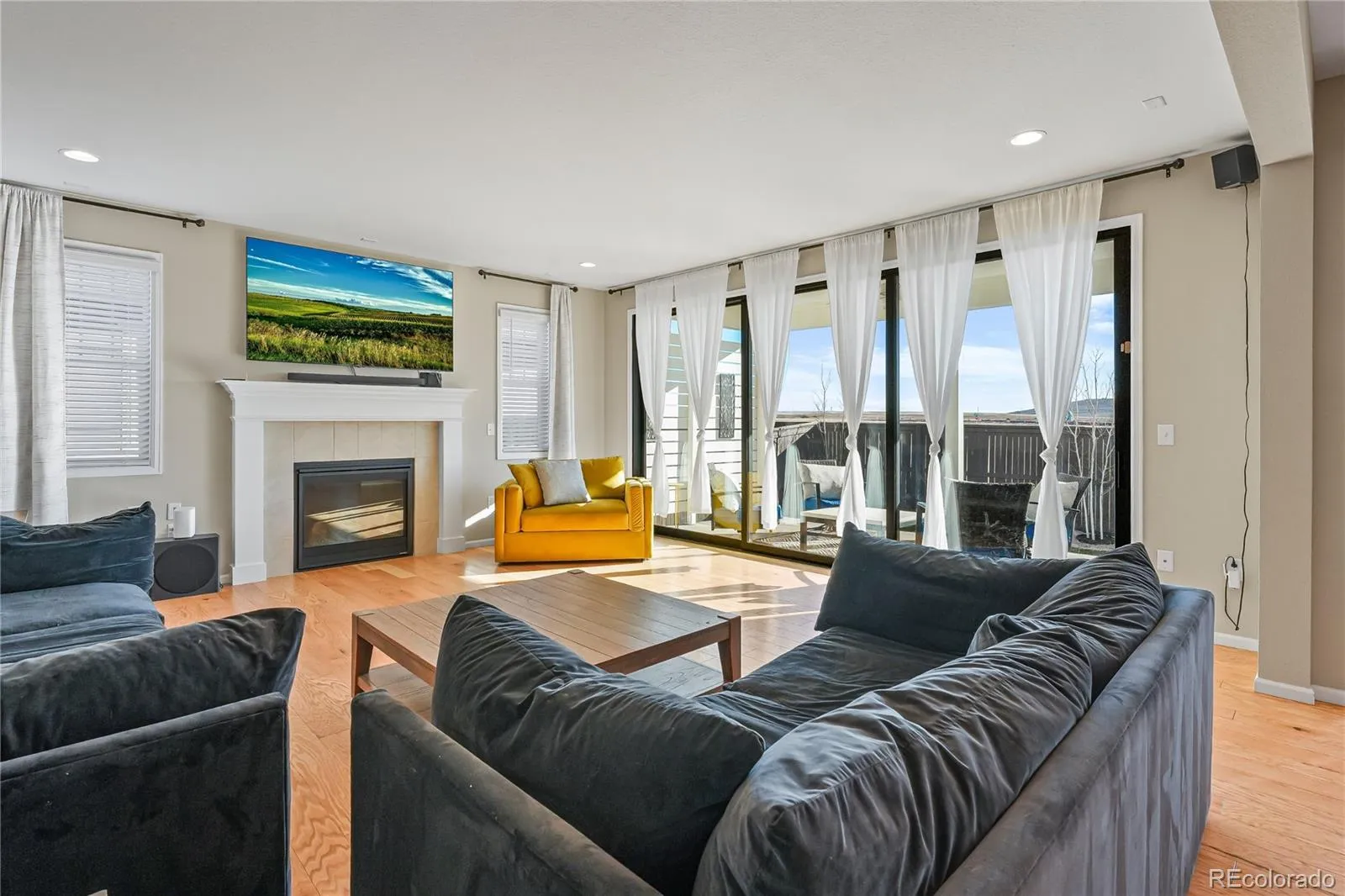 Additional highlights include wide-plank engineered hardwood floors, custom and extensive recessed lighting, modern cable-style stair railing, designer tile in all bathrooms, structured wiring with in-wall TV conduit, dual-zone air conditioning, gas lines for range, dryer, and outdoor BBQ, a fireplace with designer tile surround, and a 3-car garage with an upgraded 8-foot door. Beyond the builder upgrades, the home is further enhanced with a whole-house water filtration and conditioning system, fresh-air intake system integrated into the furnace, copper plumbing throughout, radon mitigation system, and a high-efficiency water heater. The property also includes a full sprinkler system in both front and back yards, along with a fully fenced yard.