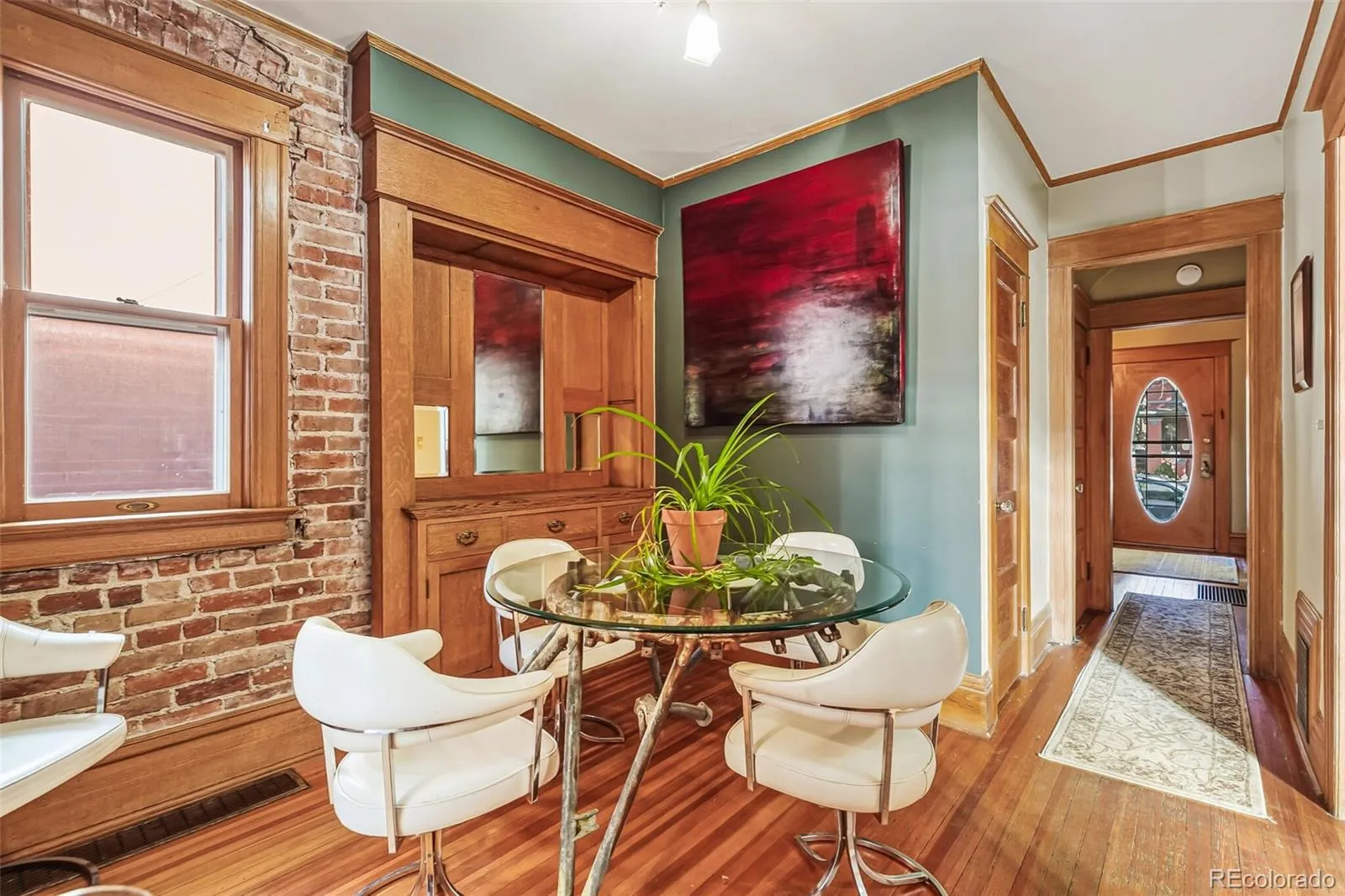 This charming Mission style brick Victorian boasts original stained glass, bay window, oak floors, exposed brick, built-ins and architectural detail. There’s a modern new kitchen with a large pantry, skylight and entry closet, that compliments the vintage aesthetic of this special home perfectly. For entertaining, the glass double doors in the kitchen open out to a large deck and private, low-maintenance yard with garden beds. The main level opens from the foyer to a parlor with the original fireplace and pocket doors, living room with bay window, dining room with built in buffet, exposed brick and a convenient half bath. Upstairs are 3 bedrooms, 2 roof top balconies, and a spacious 5 piece bath with double sinks, walk in shower, footed tub and a skylight. There’s plenty of room for storage and/or workshop in the unfinished basement and a detached 2 car garage with newer door and opener. Quiet mid-block location has great access to all the main streets. Walkable location near Congress Park, Botanical Gardens, several shops and restaurants.