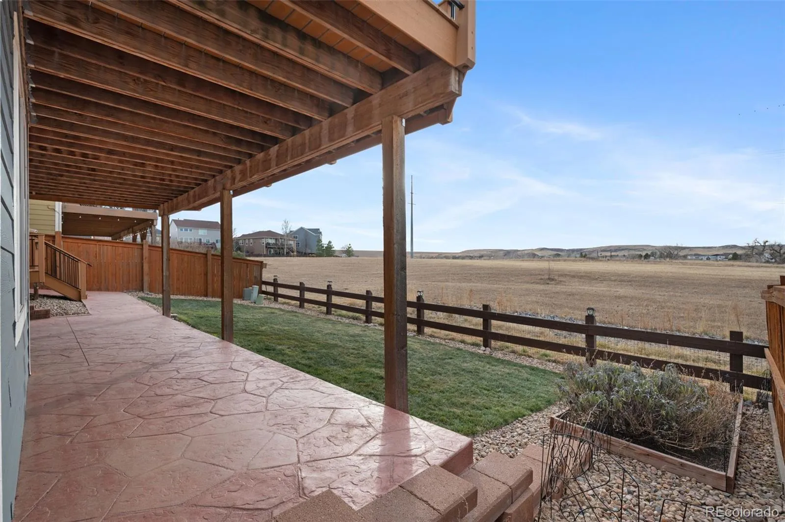 Welcome to an exceptional multigenerational living opportunity in Newlin Gulch! This meticulously maintained home features newer interior and exterior paint, gleaming wood floors, oversized windows, extended back deck, and a fully finished basement apartment. The bright living room includes a gas fireplace with a custom copper surround by artist Keith Chew. This fantastic mural carries into gourmet kitchen, showcasing cherry cabinetry, leathered slab granite countertops, oversized pantry, and a hammered copper farmhouse sink. High-end appliances comprise Viking double ovens, Bosch refrigerator, Asko dishwasher, and a convenient microwave drawer. The center island offers bar seating, while the breakfast nook opens through French doors to a deck with a pergola—perfect for outdoor dining. Upstairs, a Brazilian Cherry wood staircase with wrought iron balusters leads to a versatile loft space, ideal for a media room, playroom or workspace. The primary suite features vaulted ceilings, a walk-in closet with custom built-ins, and a luxurious five-piece bath with a soaking tub. Two additional bedrooms, a three-quarter bath, and a true laundry room with built-in cabinetry complete this level. The finished walk-out basement expands living space with a spacious great room, new wood flooring, and a full kitchen with stainless steel appliances, including a range, dishwasher, and full-size refrigerator. It also includes a conforming bedroom, a roomy three-quarter bath, and a second laundry closet with a stackable washer and dryer, making it perfect for guests. The three-car garage boasting built-in storage, and the well-designed outdoor areas enhance the home’s appeal. Privacy fencing creates a secluded feel, while a split-rail fence at the rear preserves sweeping views of open space and nearby trails. Recent system upgrades include new HVAC (2024), a whole house fan (2024), fully paid solar panels (2024), a new sump pump (2023), and a roof with impact-resistant shingles (2019).