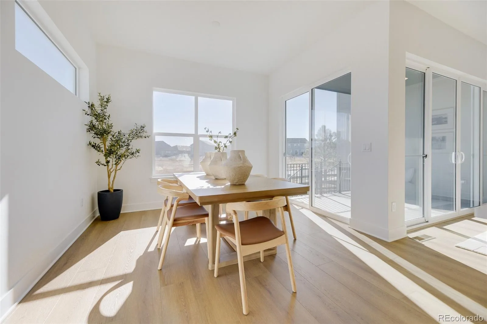 This home features 10’ ceilings, a fireplace with a stained wood mantel, and a spacious kitchen with MasterCraft cabinets, KitchenAid appliances, and a large island. The primary bath includes a dual-head shower and contemporary finishes. Front and backyard landscaping included. Conveniently located near Cherry Creek Trail with pickleball courts and full snow removal through the HOA. Special financing and rate buydown options available now!
