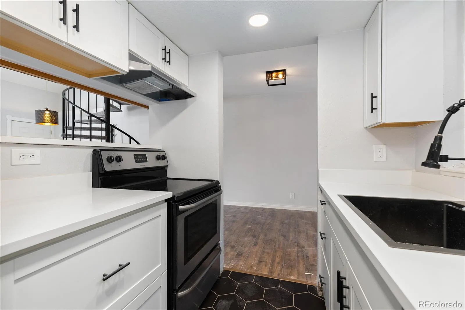 Back on the market!! Buyers got cold feet. Sellers have just installed a new heat pump and AC. This bright, south-facing condo blends comfort, style, and unbeatable convenience in a highly desirable location. The inviting interior features wood-look laminate flooring, vaulted ceilings, and a cozy wood-burning fireplace with built-in shelving that anchors the living space. Updated light fixtures add a modern touch, while a dedicated dining area makes everyday meals and entertaining effortless. The remodeled kitchen is both stylish and functional, showcasing quartz countertops, stainless steel appliances, a convenient serving window, and new flooring. A main-level laundry area and half bath enhance day-to-day ease. Upstairs, a charming spiral staircase leads to a spacious open loft-style bedroom complete with an en-suite bath—an ideal private retreat. Step outside to a welcoming front patio, and enjoy the added convenience of a nearby carport. The location truly sets this home apart. Adjacent to Big Dry Creek Trail, you’ll have immediate access to miles of walking and biking paths leading to scenic Cornerstone Park less than half a mile away. Grocery stores including Sprouts and King Soopers are within a mile, and you’re just minutes from Historic Downtown Littleton and the vibrant South Broadway corridor.A wonderful opportunity to enjoy low-maintenance living in an exceptional setting—this condo is a standout find.