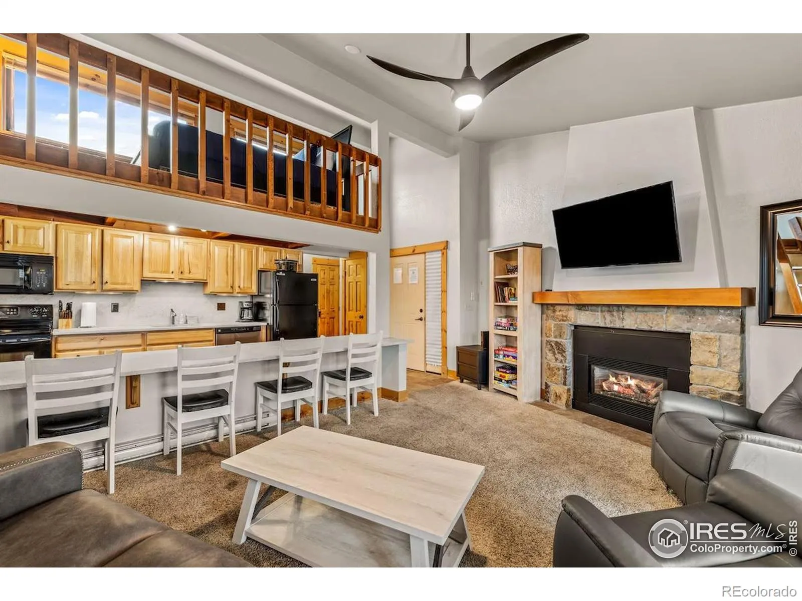 Top-floor mountain-area condo with year-round valley views and a clean, updated feel-offered fully furnished and ready to enjoy. This 2-bedroom + loft layout features an open great room with a gas fireplace, generous seating, and a private covered balcony that captures the view in every season. The kitchen is designed for gathering with a large quartz island, ample seating, and plenty of cabinet space. Bedrooms are comfortable and well-sized, and the loft provides flexible additional sleeping space. Recent improvements include all-new furnishings (2025), a new water heater (2025), and interior paint (2024)-making this a low-hassle option for a second home, investment, or weekend basecamp. Enjoy on-site amenities including a shared hot tub, sauna, and steam room, plus shared laundry room and convenient ski locker. Less than a mile to Gondola Square with easy access to shops, dining, and the free bus transit. Square footage is professionally measured at 928 sq ft (including loft); measurement available. Currently operated as a licensed short-term rental; buyer to apply for STR license per City requirements. Located in the Yellow Zone. Strong rental history. Rental history available upon request. HOA includes Wi-Fi, amenities, snow removal, and exterior maintenance.