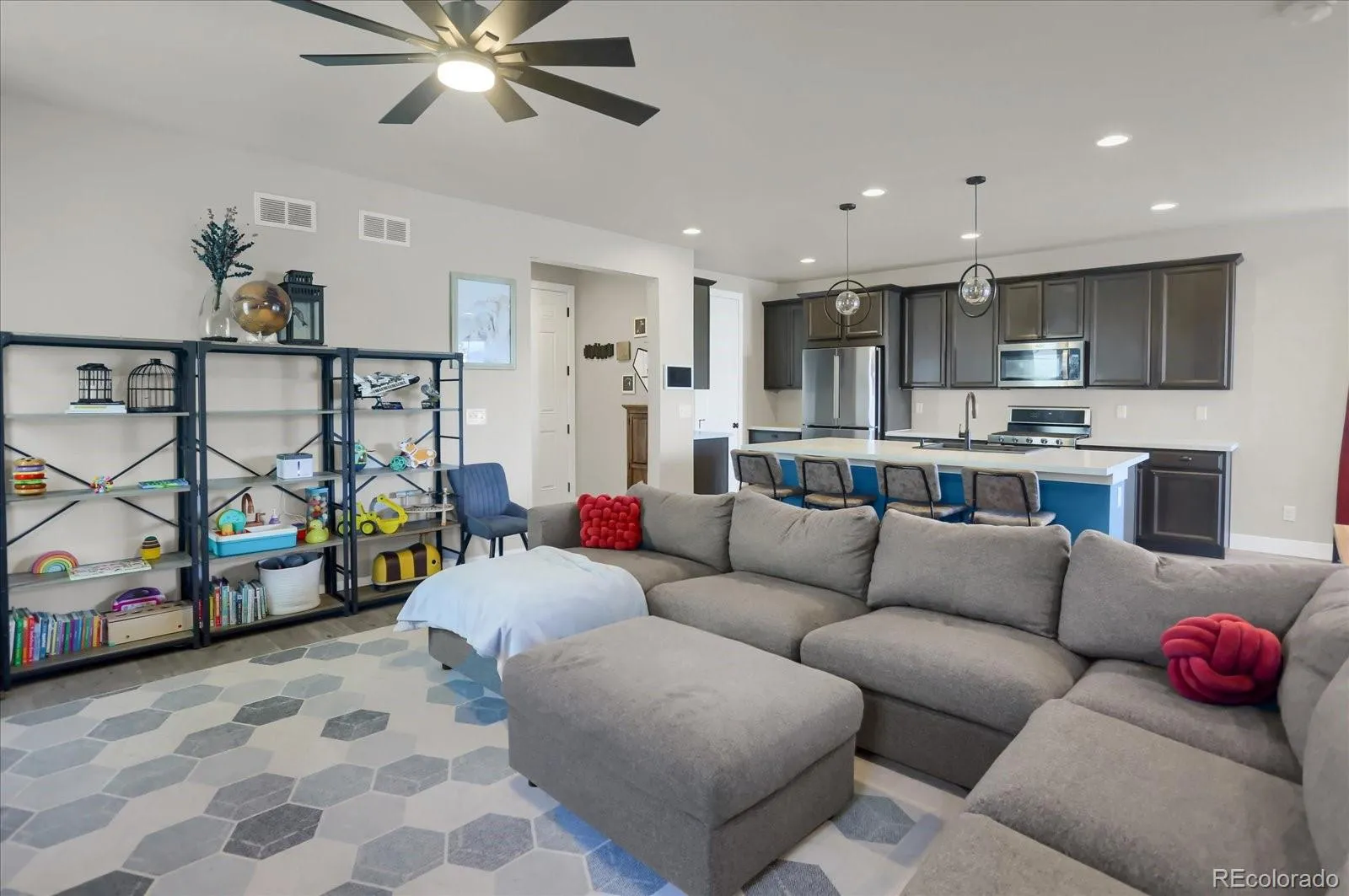 Experience the perfect blend of modern efficiency and thoughtful design in this stunning 3-bedroom, 3-bathroom home located in the vibrant Sterling Ranch community. The highly desirable floor plan is designed for the way you live, featuring a dedicated main-floor office for remote work and a gourmet kitchen anchored by an expansive oversized island—the ultimate centerpiece for entertaining. Luxury meets convenience on the upper level, where the laundry room is smartly attached directly to the primary suite’s walk-in closet. Upstairs you will also find a loft space that can be used as a secondary office.