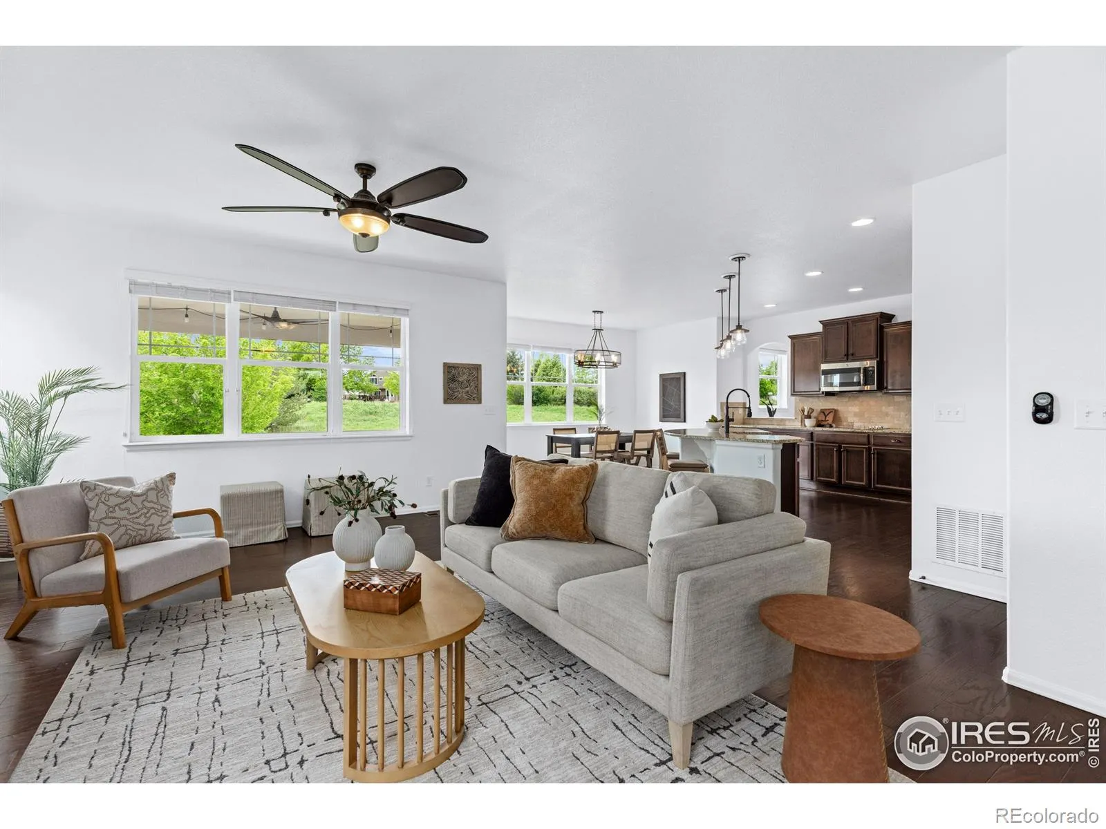 A well-located five-bedroom home with personality, flexibility, and a few unexpected perks. It offers a spacious three-car garage and a basement you don’t usually find in suburban Longmont. Professionally finished and sound-engineered for music, it’s equally suited for a home theater, rec room, or an easygoing bonus space if recording isn’t your thing. The layout gives you options, not limits. Upstairs are four true bedrooms plus the laundry room, right where you want it. The primary suite includes a walk-in closet built to share and a five-piece bath with a deep soaking tub made for real downtime. There’s also a main-level guest room, tucked away just right. The kitchen delivers on space and style with stainless appliances, granite countertops, and a large island anchoring the open layout. Light fills the home through thoughtfully placed windows, and the gas fireplace with its custom brick surround and rustic wood mantel adds warmth without overdoing it. Contemporary lighting updates tie everything together. Fresh interior paint and brand-new carpet keep it feeling clean and move-in ready. Out back, the south-facing yard brings great light for gardening or lounging, with raised planter beds and a covered porch made for unwinding. Rough & Ready Park is just around the corner, and you’re close to schools, groceries, and everything that makes northeast Longmont such a solid place to land. This one lives bigger, brighter, and better than most. Come take a look.