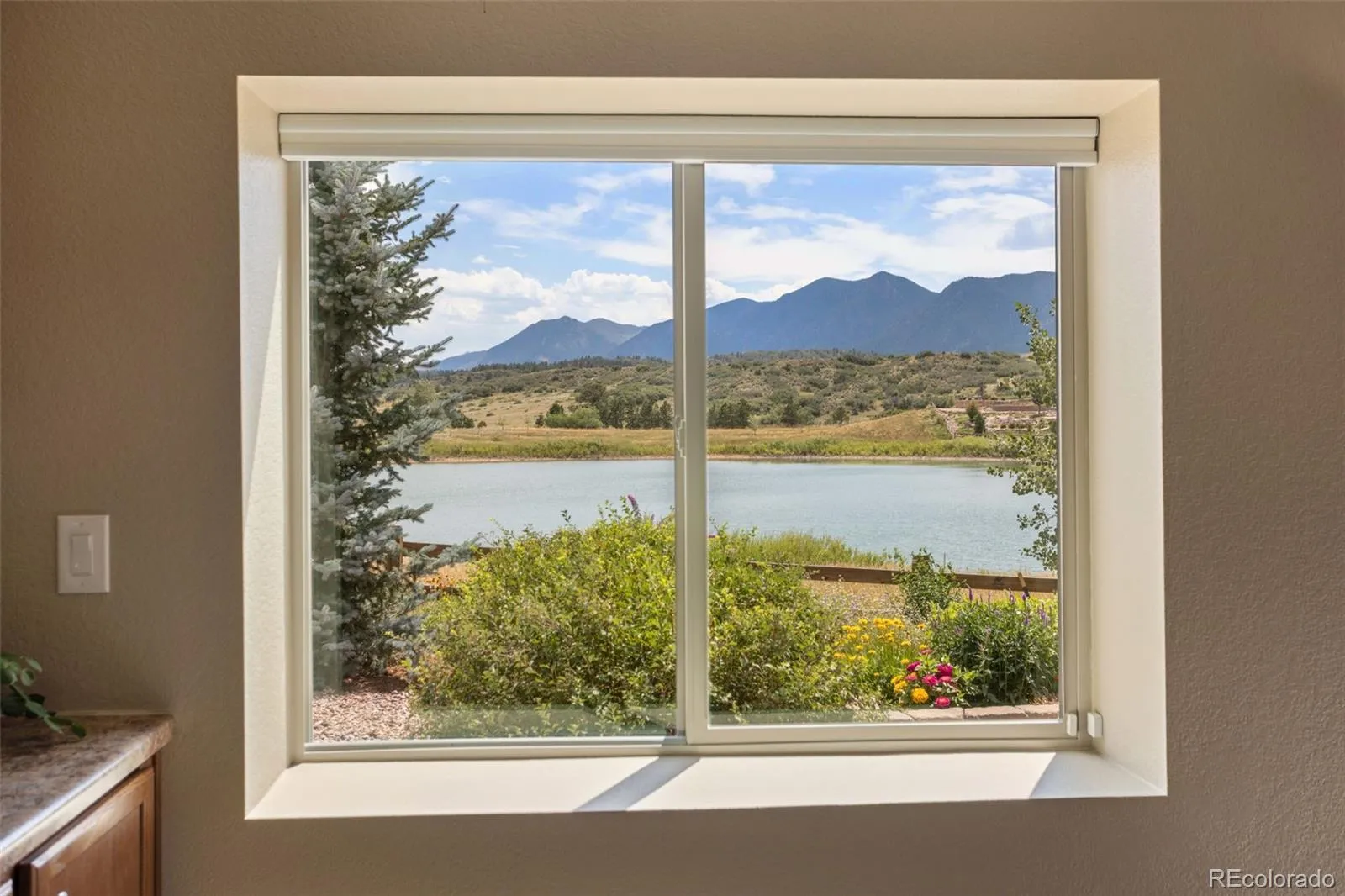 Imagine a place where you wake up every day looking across a lake to the beauty of the mountains, every room is bathed in natural light, and every moment spent brings a sense of contentment. This exquisite smoke-free, pet-free home offers the sanctuary that you’ve been dreaming of, surrounded by amenities that enrich your life. Come on in, and immediately your eyes are drawn to the lake and mountain view framed perfectly in the great room window. Notice the natural elements around you like the warm wood-tone floors and the stone on the fireplace. This open-concept floor plan allows the living, dining, and kitchen spaces to flow seamlessly, offering flexibility for hosting get-togethers or enjoying quiet evenings at home. The kitchen boasts granite countertops, gleaming stainless steel appliances, a spacious pantry, and large island perfect for meal prep or having a light lunch. The dining area opens to the covered composite deck where you can use the natural gas Weber grill to cook your favorite steak and dine al fresco overlooking the lake. The main level features two bedrooms and baths including the master retreat. Breakfast in bed is a must here, and you will want to linger over your coffee here all day soaking in the view. The lower level of the home offers more entertaining space in the family room with wet bar and walk-out to the expanded lower patio. Guests have plenty of privacy with two large guest rooms, each with walk-in closets, and another full bath. Storage? No problem! A 200+ square foot storage/mechanical room gives you plenty of space for storage. And let’s not forget the immaculate garage featuring insulated, textured, and painted interior walls and spotless garage floor coating. Other amenities of this lake-side paradise include central air, radon mitigation system, whole-house humidifier, hot tub pre-wire on the patio, main level laundry with utility sink, hiking/biking trails, recreational lake down the street, and easy I-25 access!