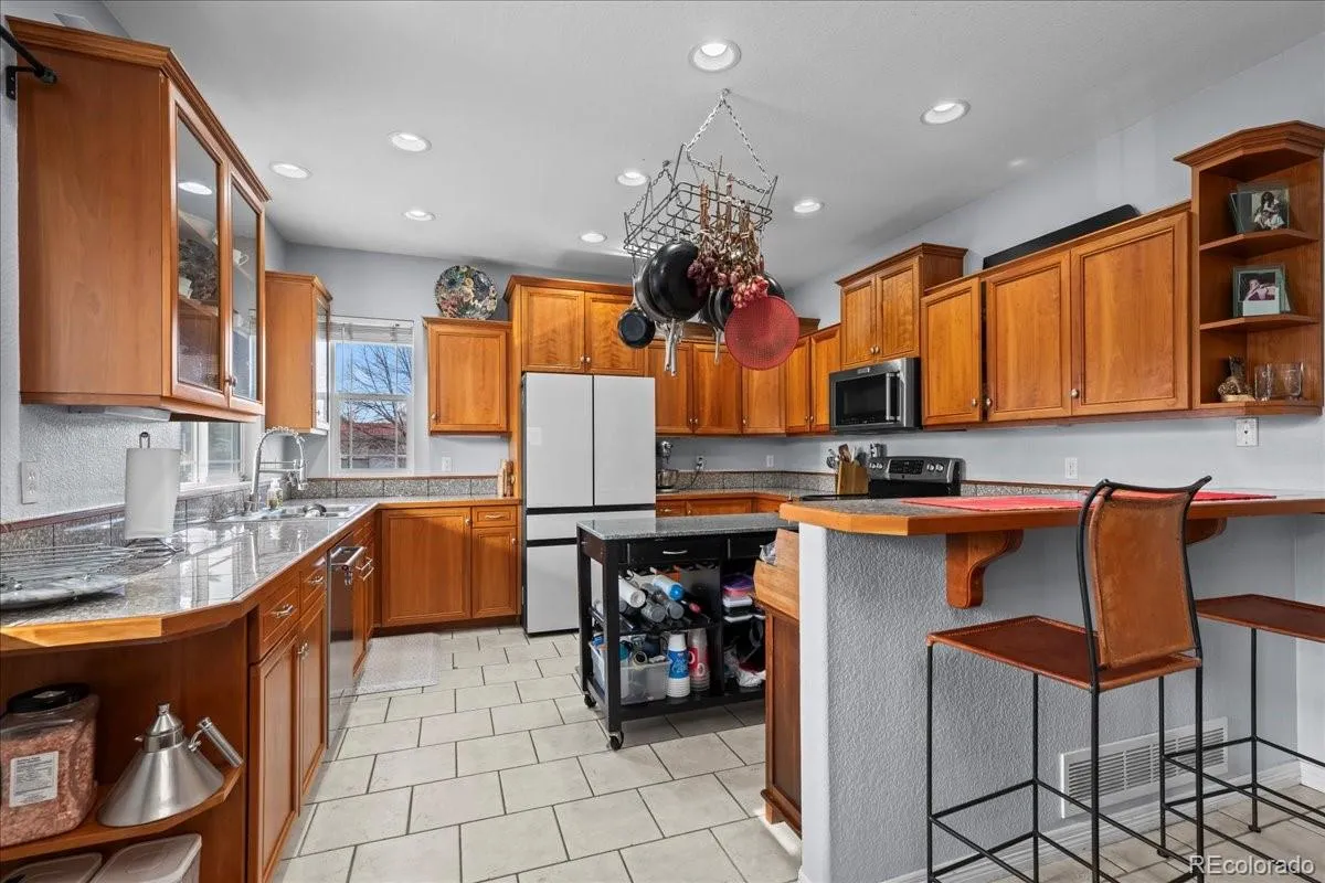 Largest floor plan in Quail Ridge with a rare main-floor primary suite. This expansive 4-bedroom, 4-bath home offers a highly functional layout designed for long-term flexibility, multi-generational living, and future expansion. The main level features a spacious family room with gas fireplace and a chef’s kitchen with newer appliances, eat-in dining, and a true dual-fuel range with both gas and electric hookups. The main-floor primary suite includes tray ceilings, a 5-piece bath, and walk-in closet, along with a dedicated laundry room and powder bath for everyday ease. Upstairs are three generously sized bedrooms—including one with a walk-in closet and private deck—plus an office, loft, and two full baths, offering excellent separation for work, guests, or hobbies. The huge unfinished basement is ready to unlock additional value with five egress windows and rough-in plumbing—ideal for future living space, rental potential, or a home gym/media suite. Major updates include a Class 4 hail-resistant roof (2022), newer furnace, and newer A/C (2022)—delivering durability and meaningful insurance savings. Conveniently located near shopping, dining, and daily amenities, and zoned on the highly sought-after Niwot High School, this is a rare opportunity to secure one of Quail Ridge’s most spacious and adaptable homes. Seller is open to offering a carpet concession.